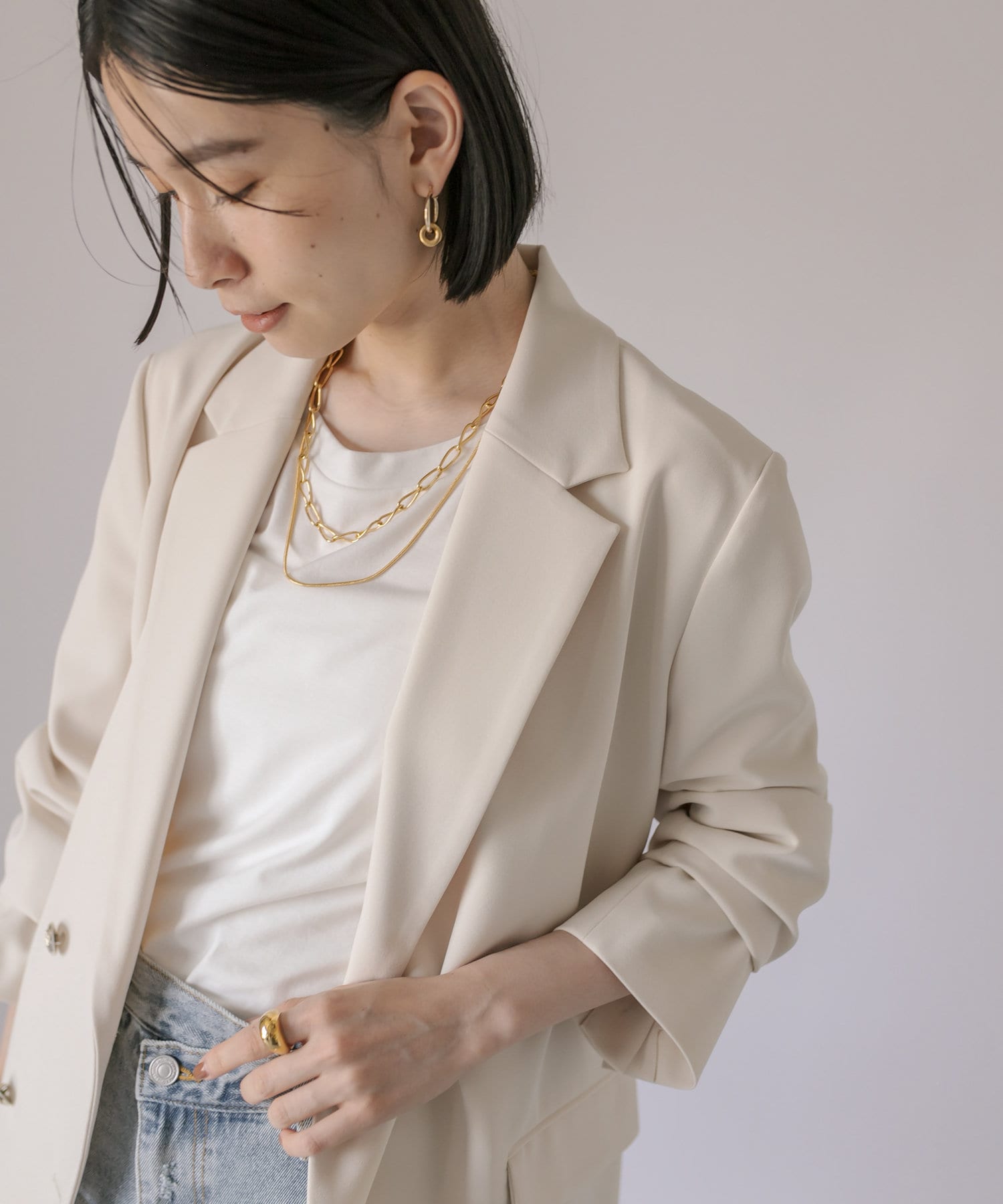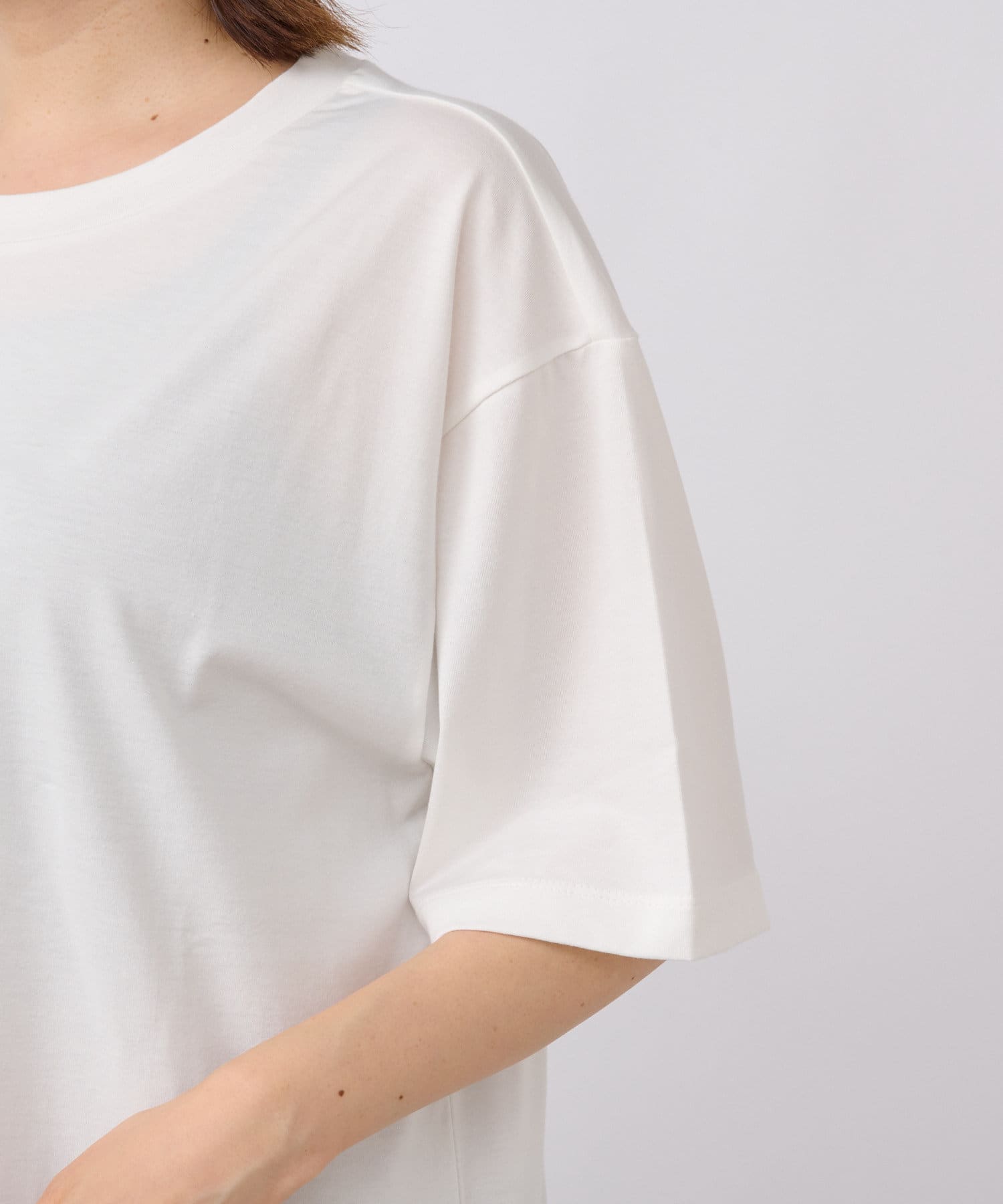 毛羽感がなく、カジュアルな印象になりすぎない生地を使用しているため、オーバーサイズでもほどよくきちんとした印象で着用いただけます。