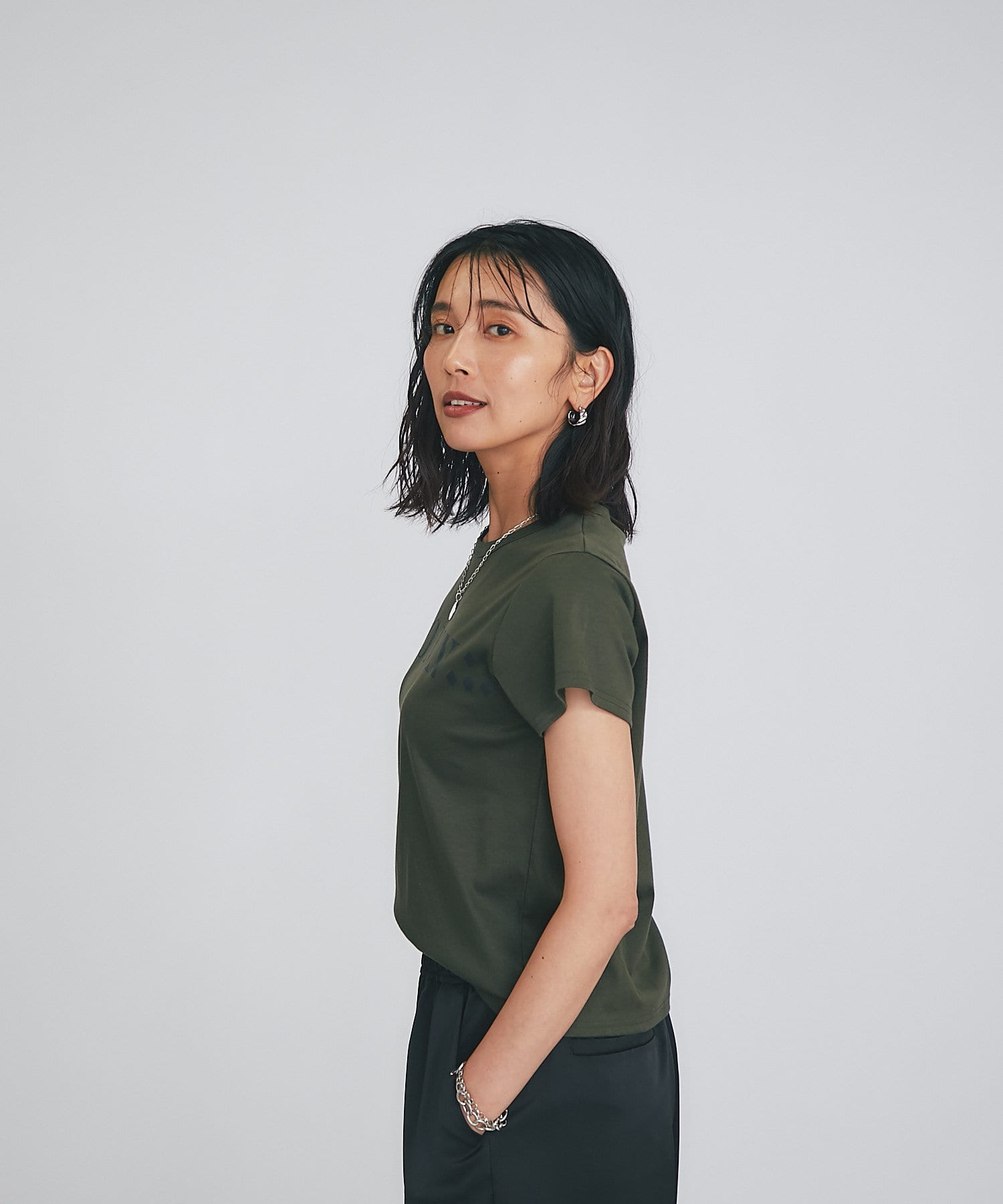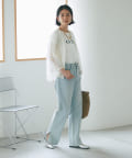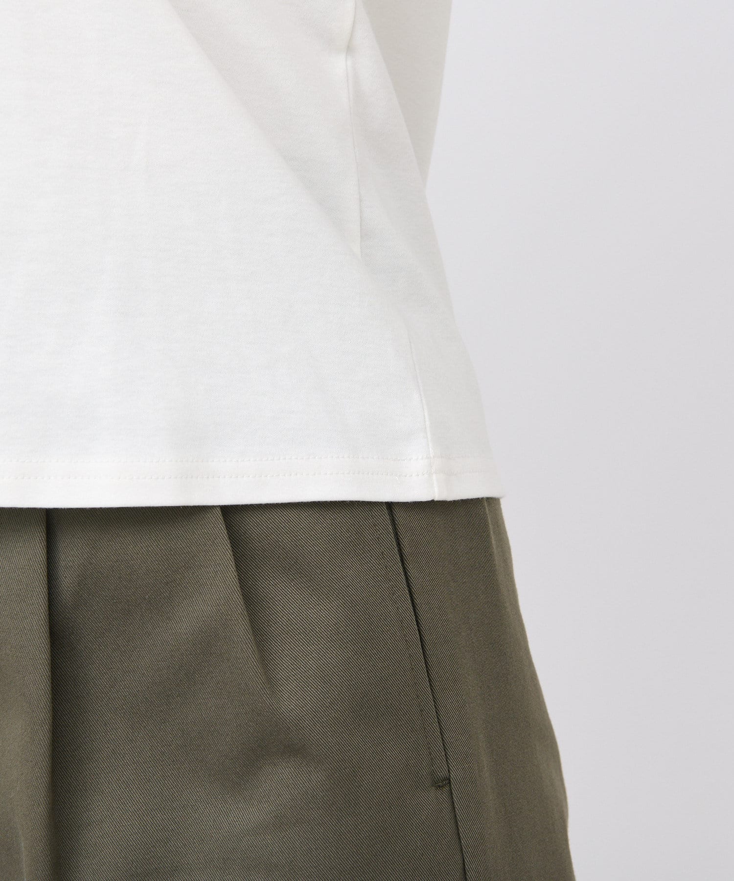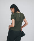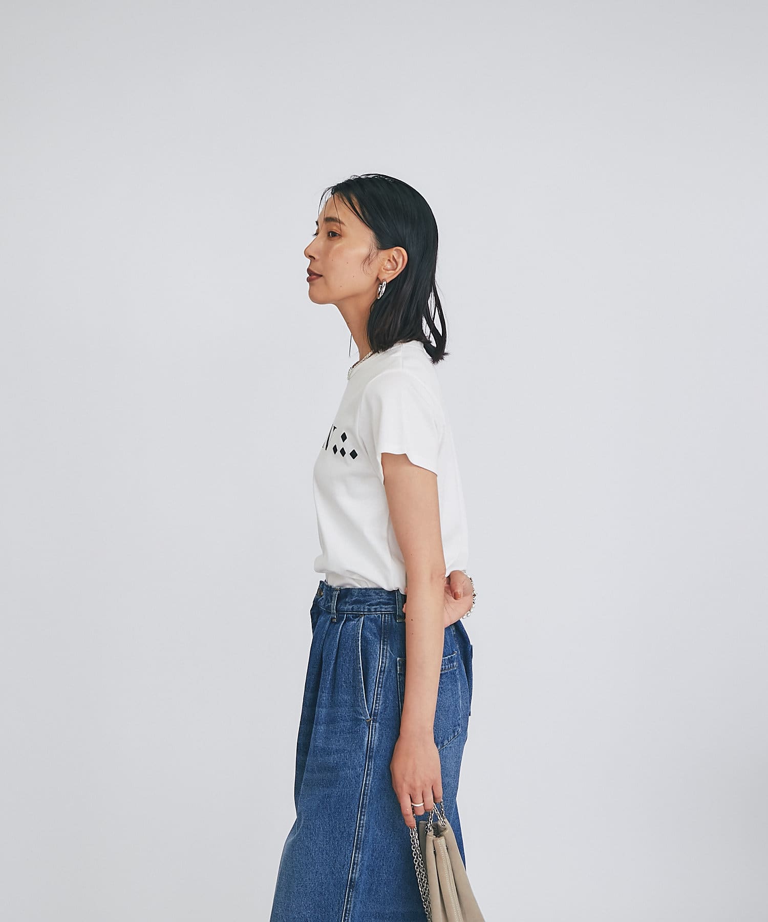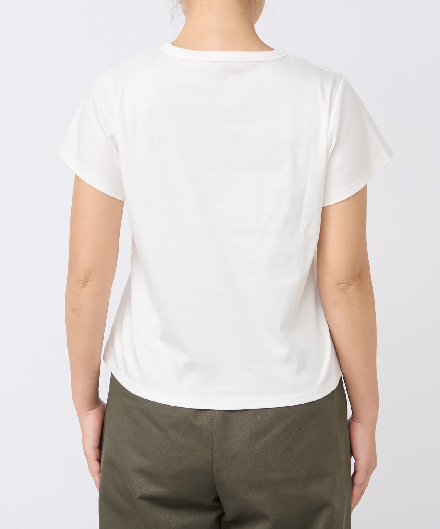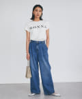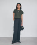 シンプルで華奢見えするシルエットなので、ボトムにワイドパンツやフレアスカートなどボリューム感のあるアイテムを合わせてもバランスがとりやすいTシャツ。