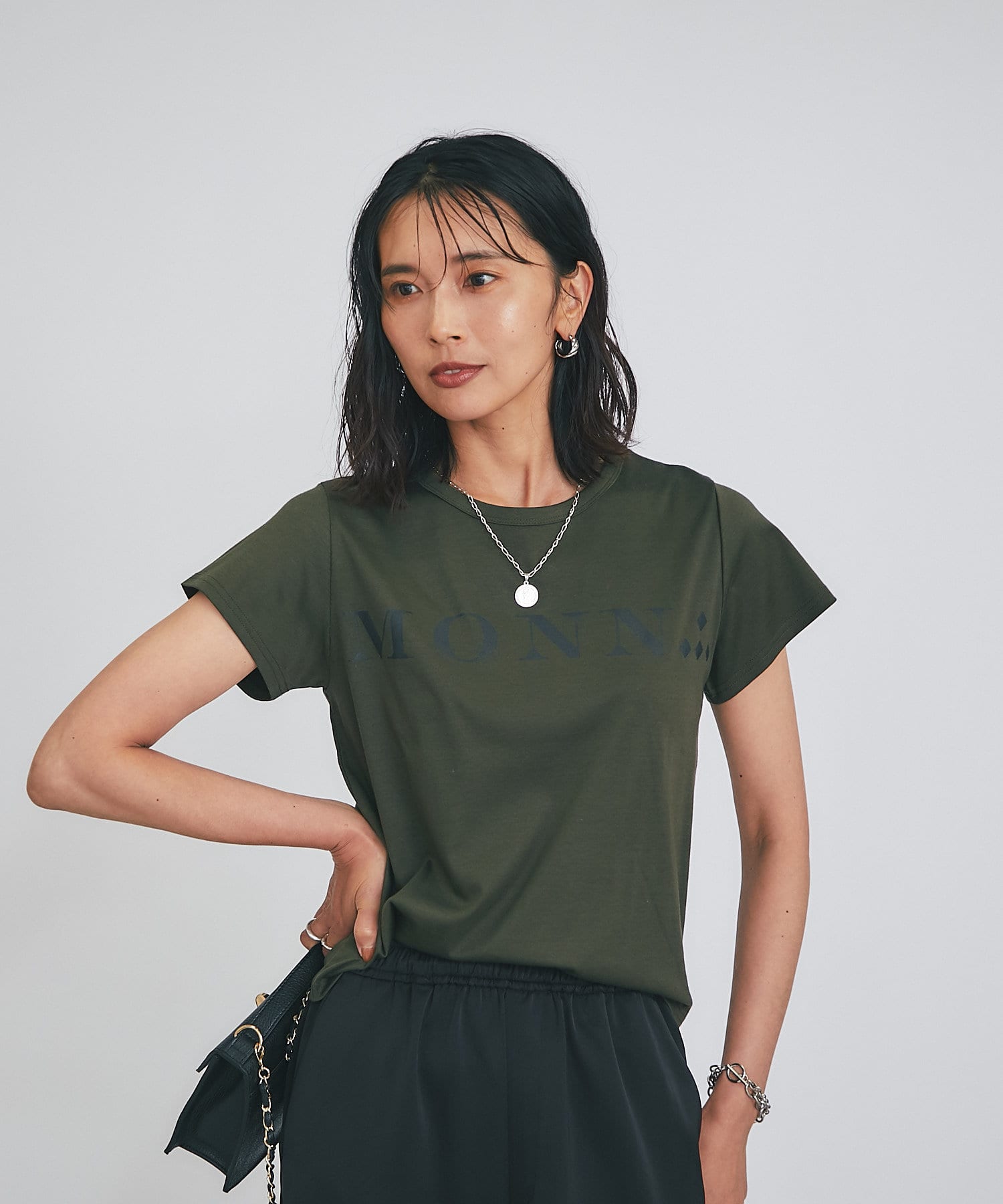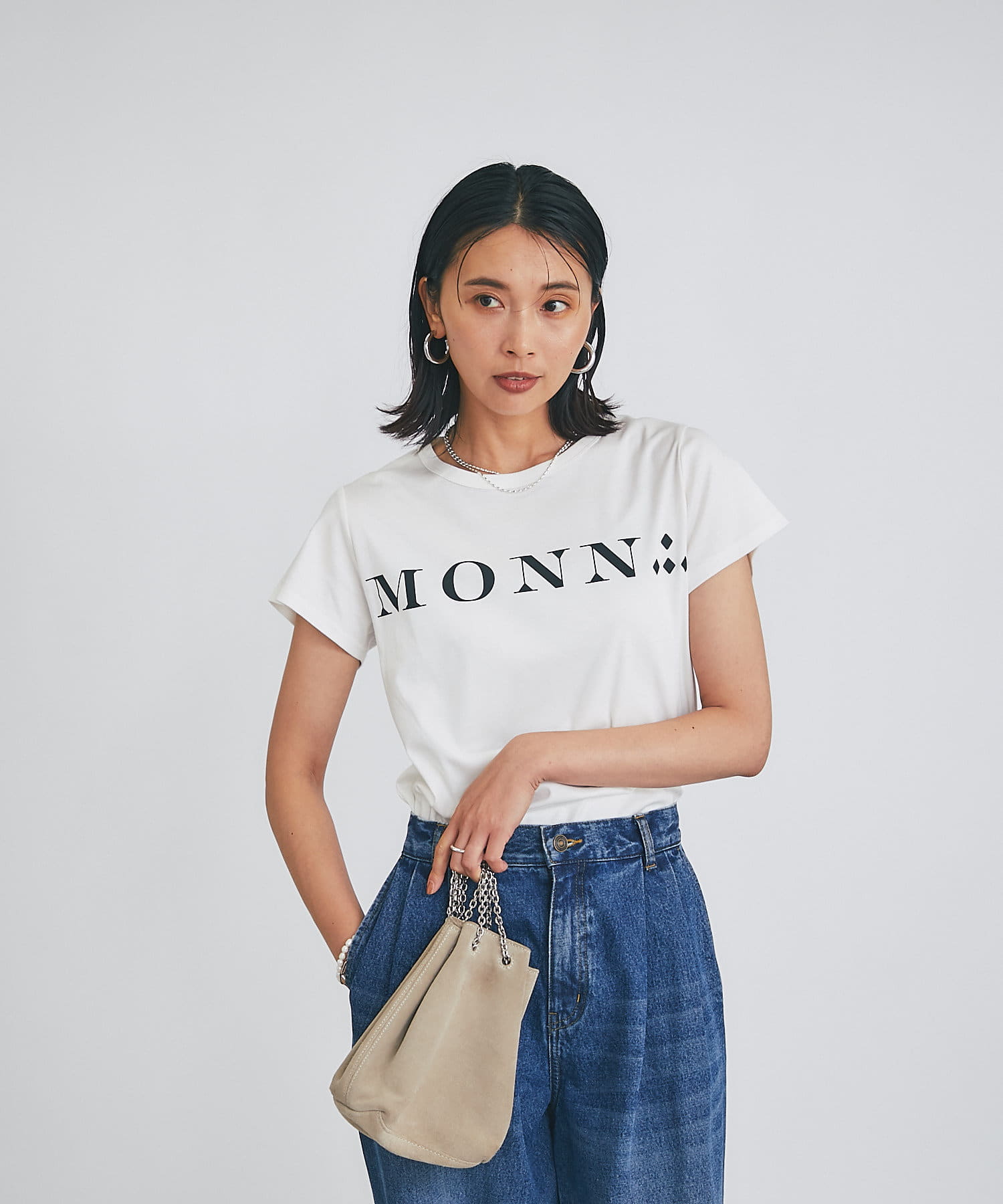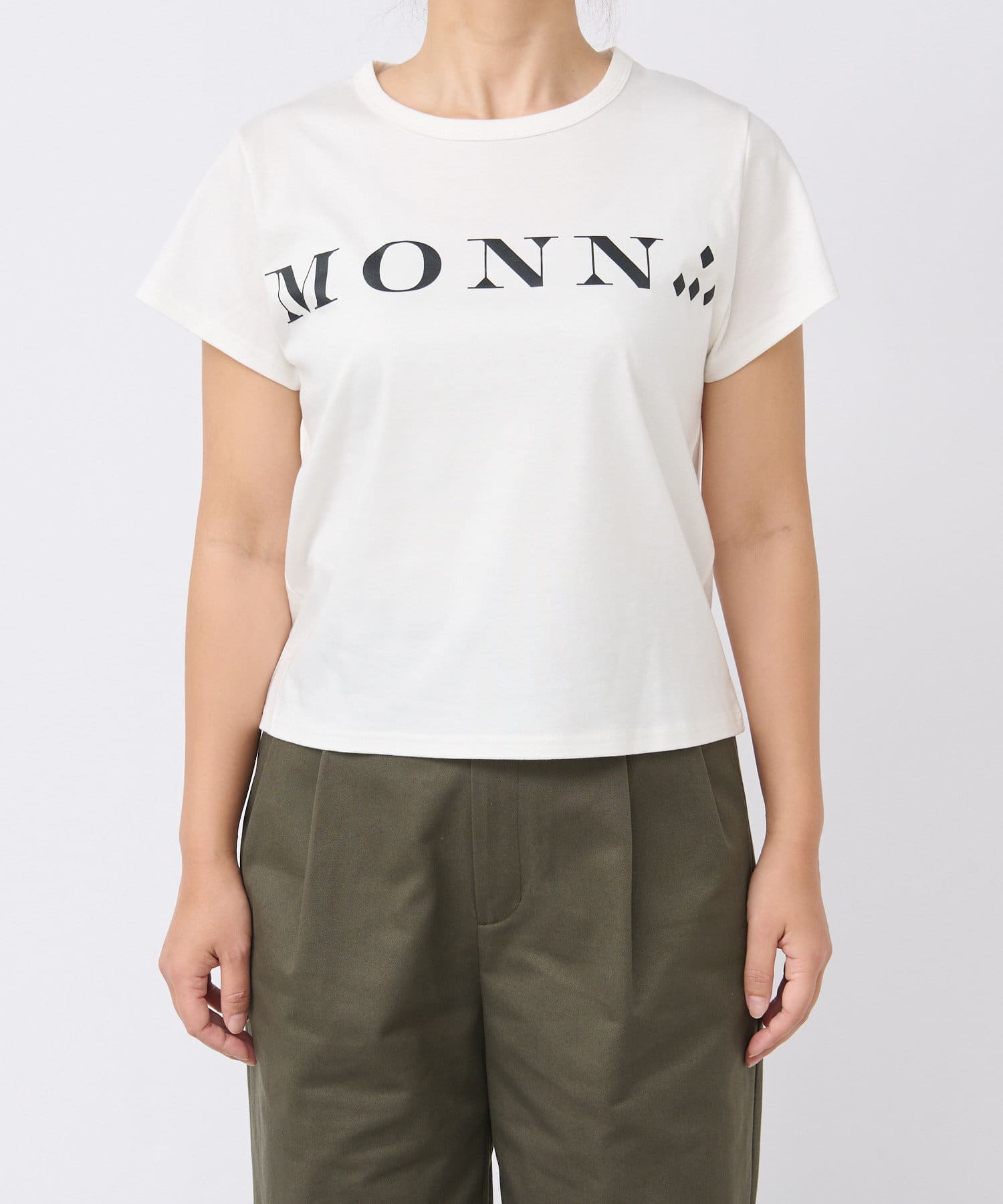 MONN.:.のロゴがプリントされたTシャツ。