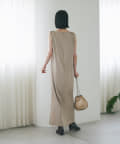 シンプルなIラインのシルエットなのでウエストをベルトでウエストマークするなどのアレンジもしやすいです。