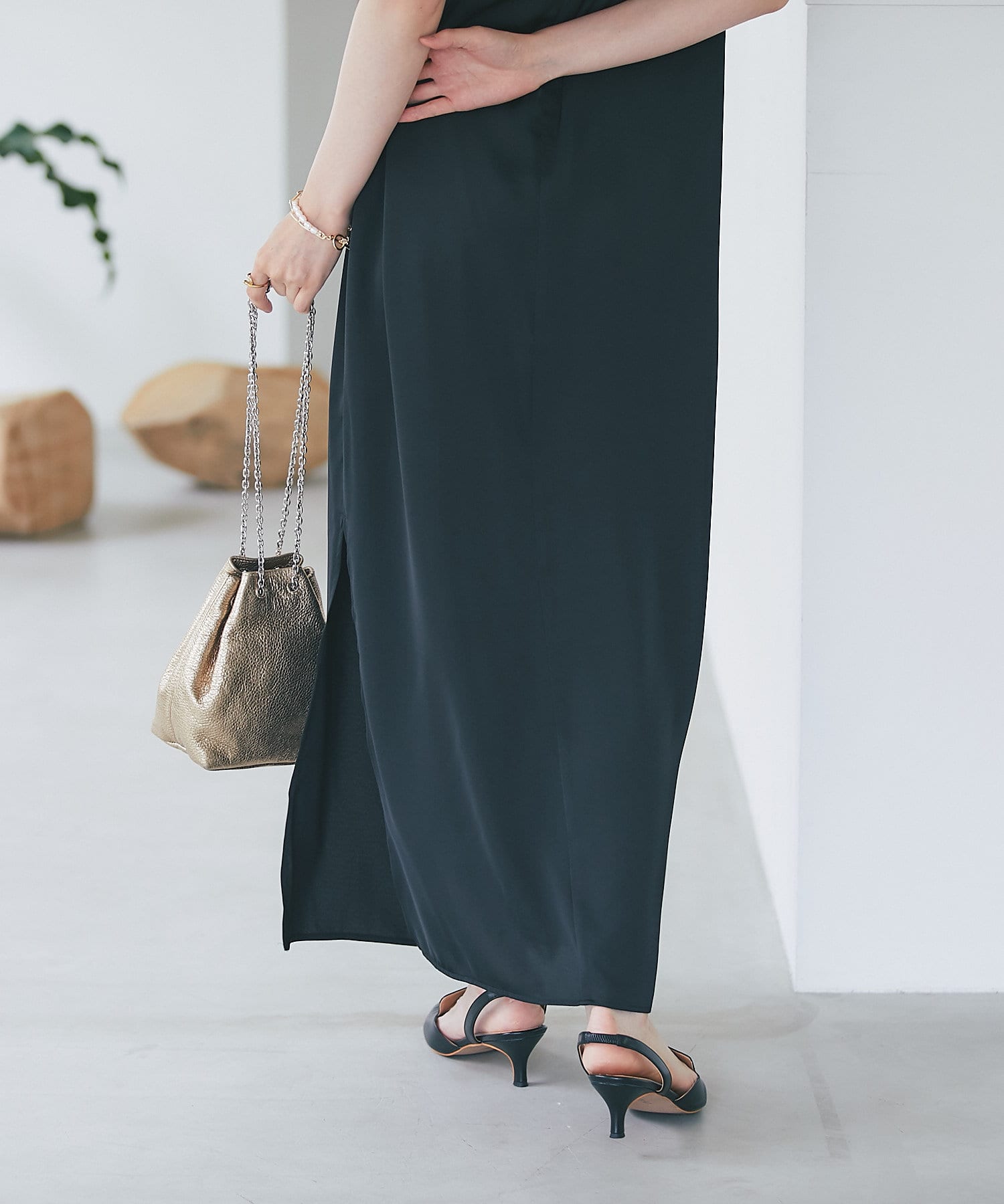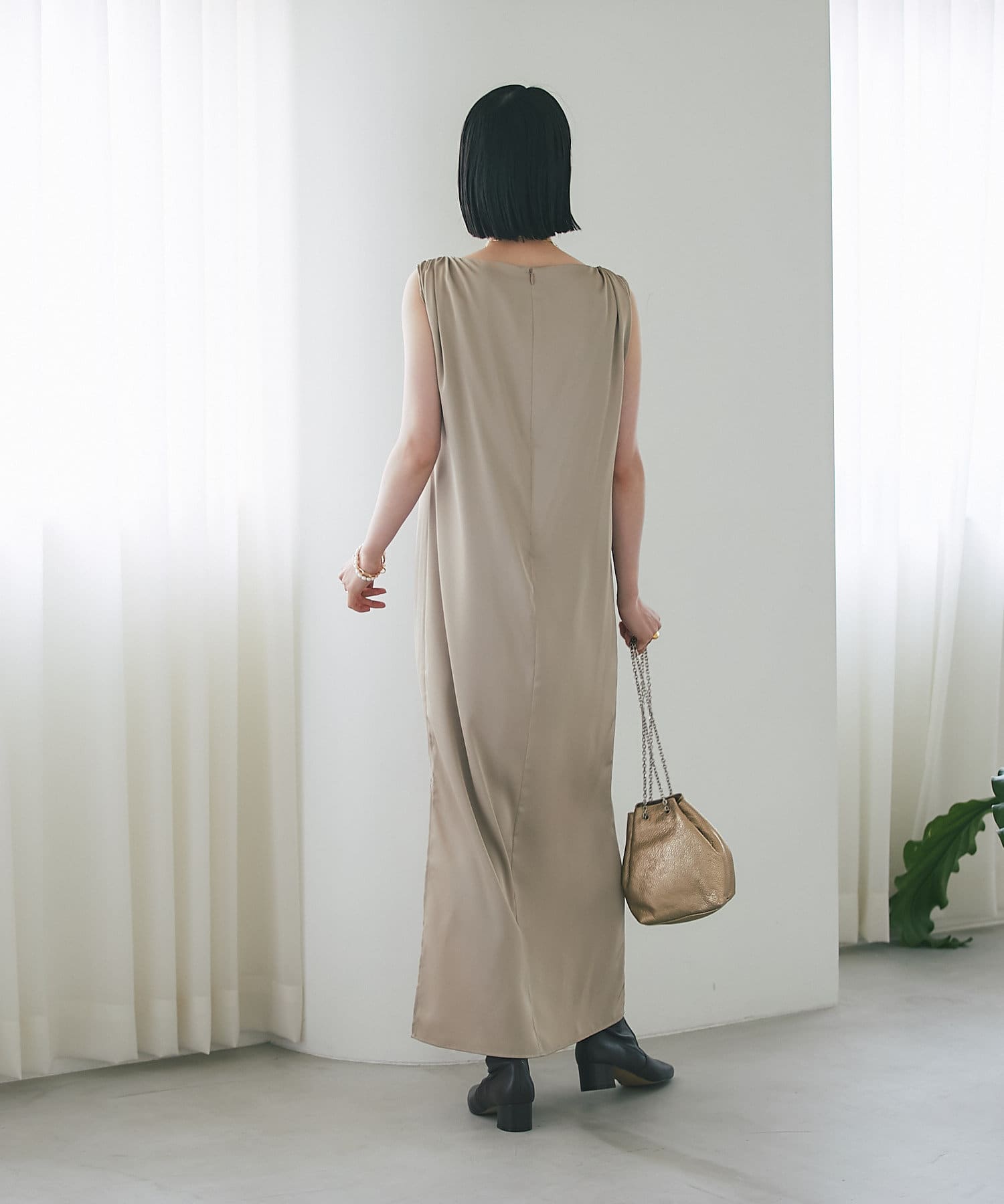 【DRESS by RIVE DROITE】サテンギャザーワンピース