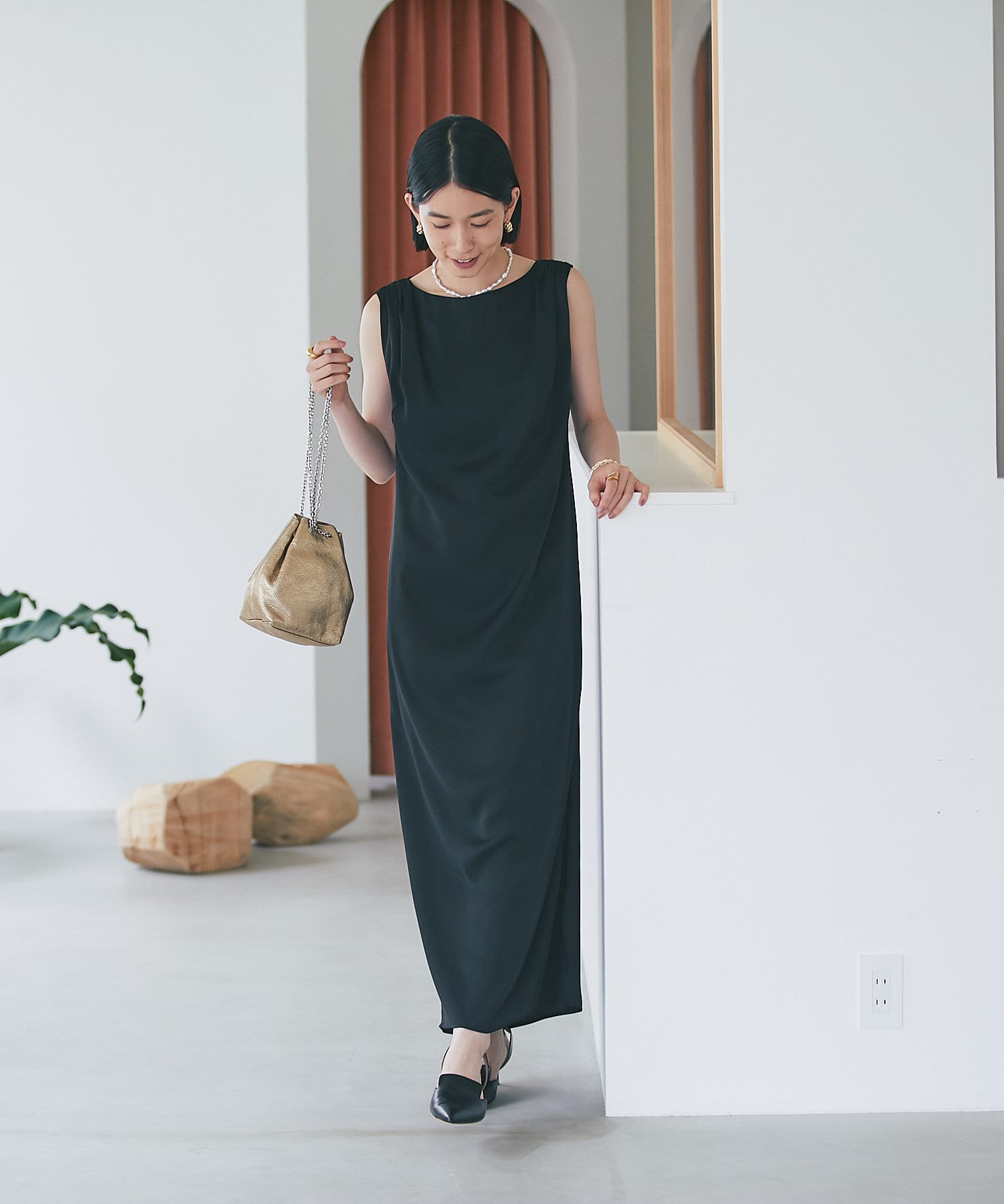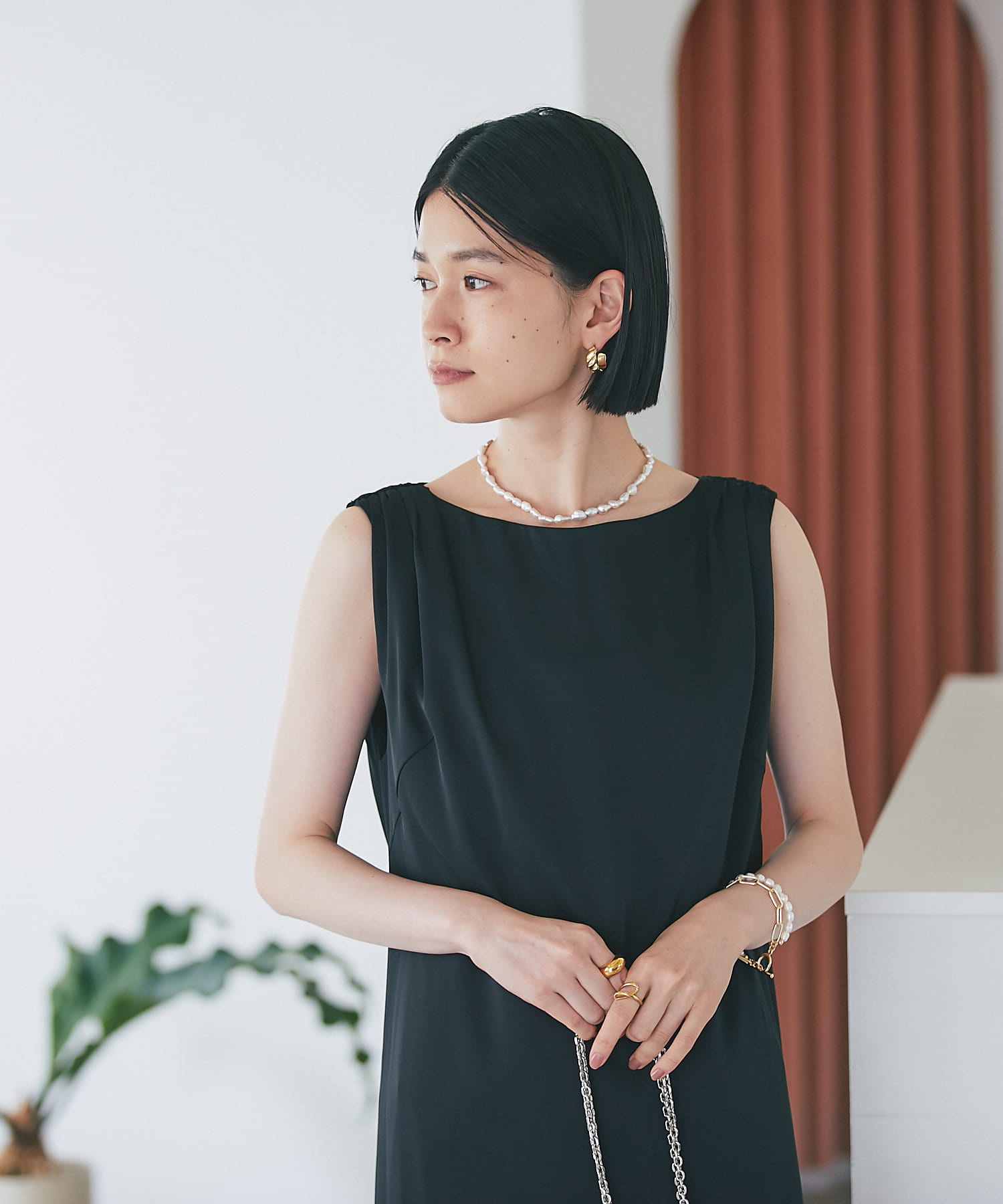 1枚で楽しむのもいいですし、ジャケットを合わせてハンサムなドレススタイルもおすすめです。