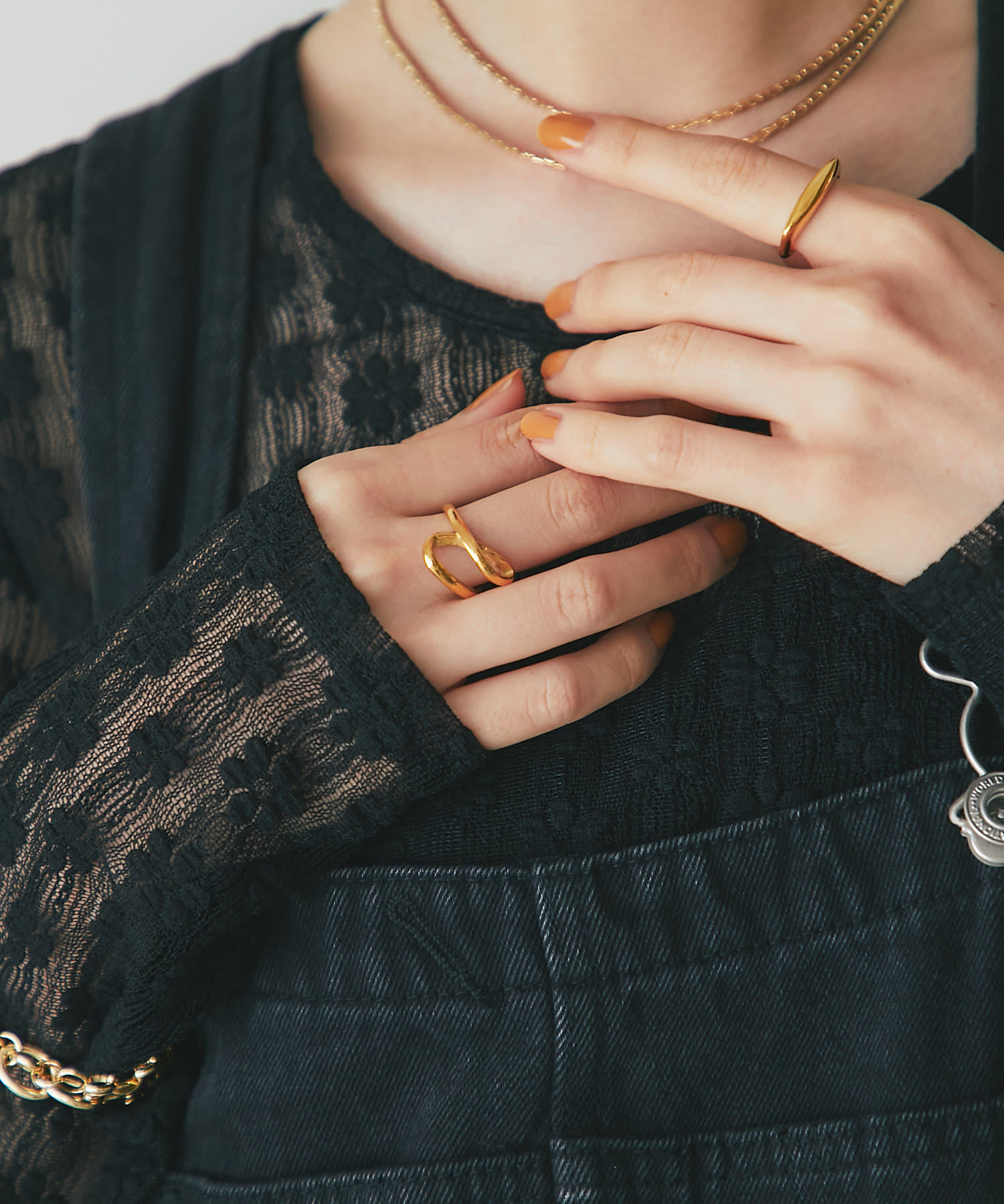 ゴールドのアイテムとはもちろん、シルバーのリングとの重ね付けも素敵です。