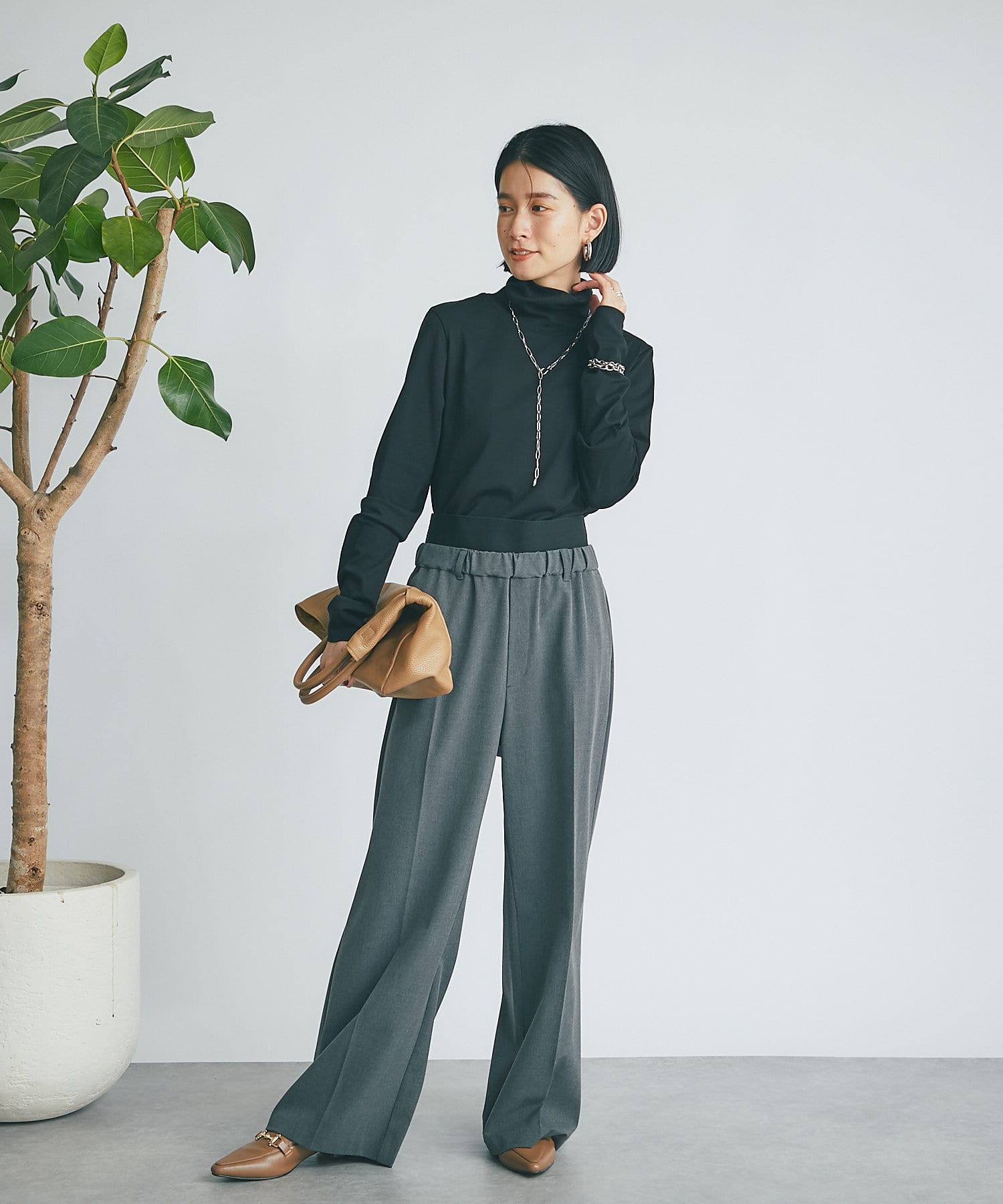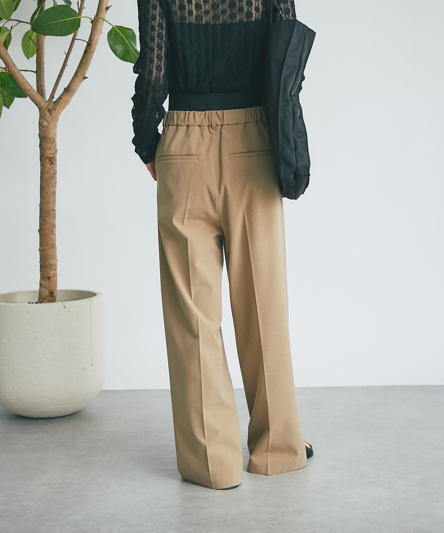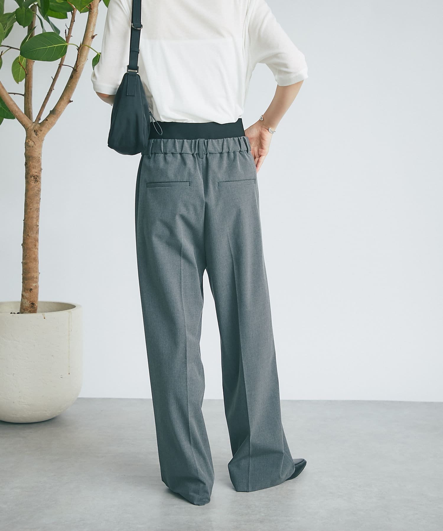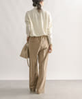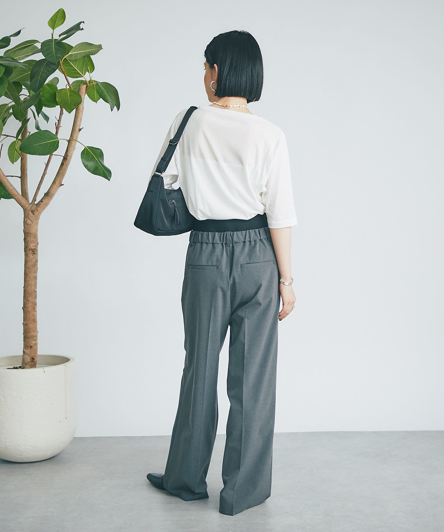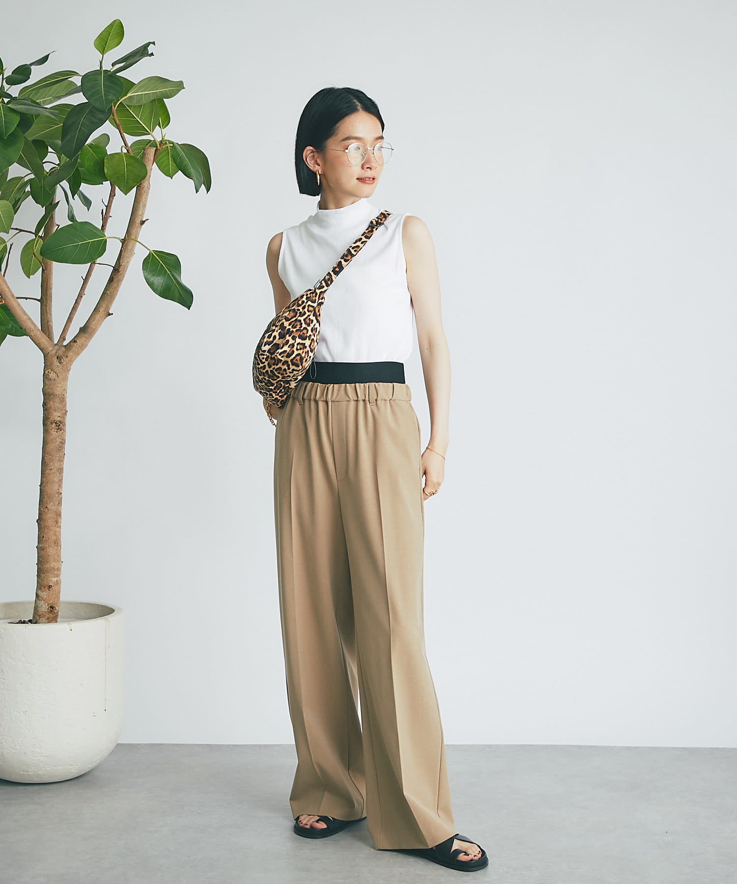 トップスをインするスタイリングもおすすめですが、ゆったりめのトップスを合わせてシンプルなスラックスとしても着用いただけます。