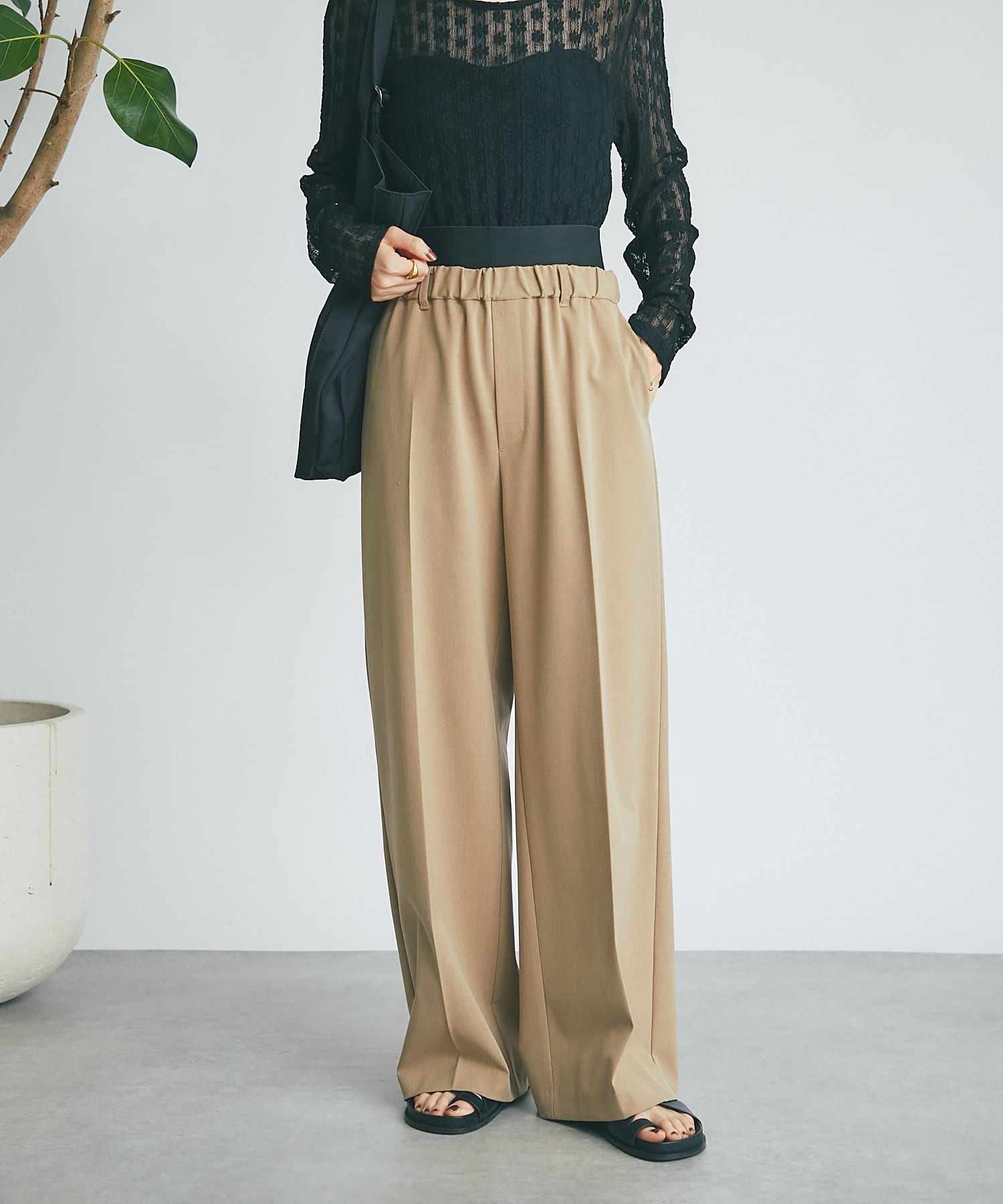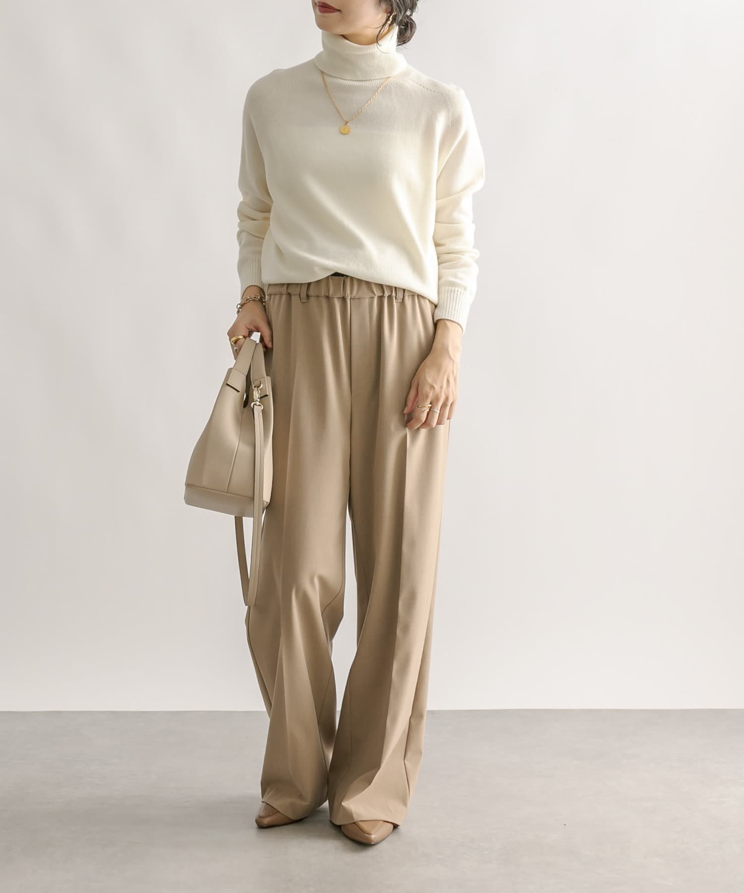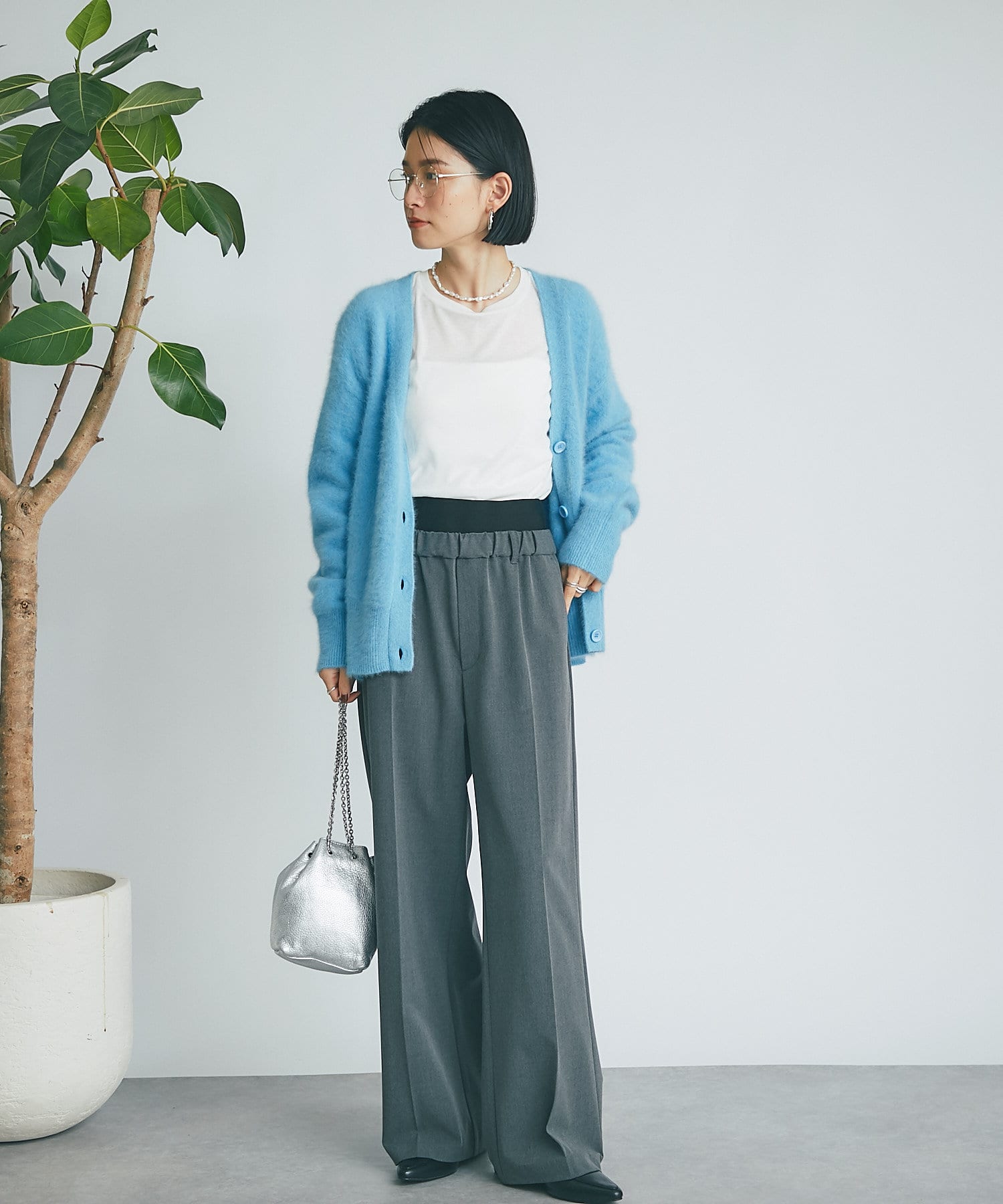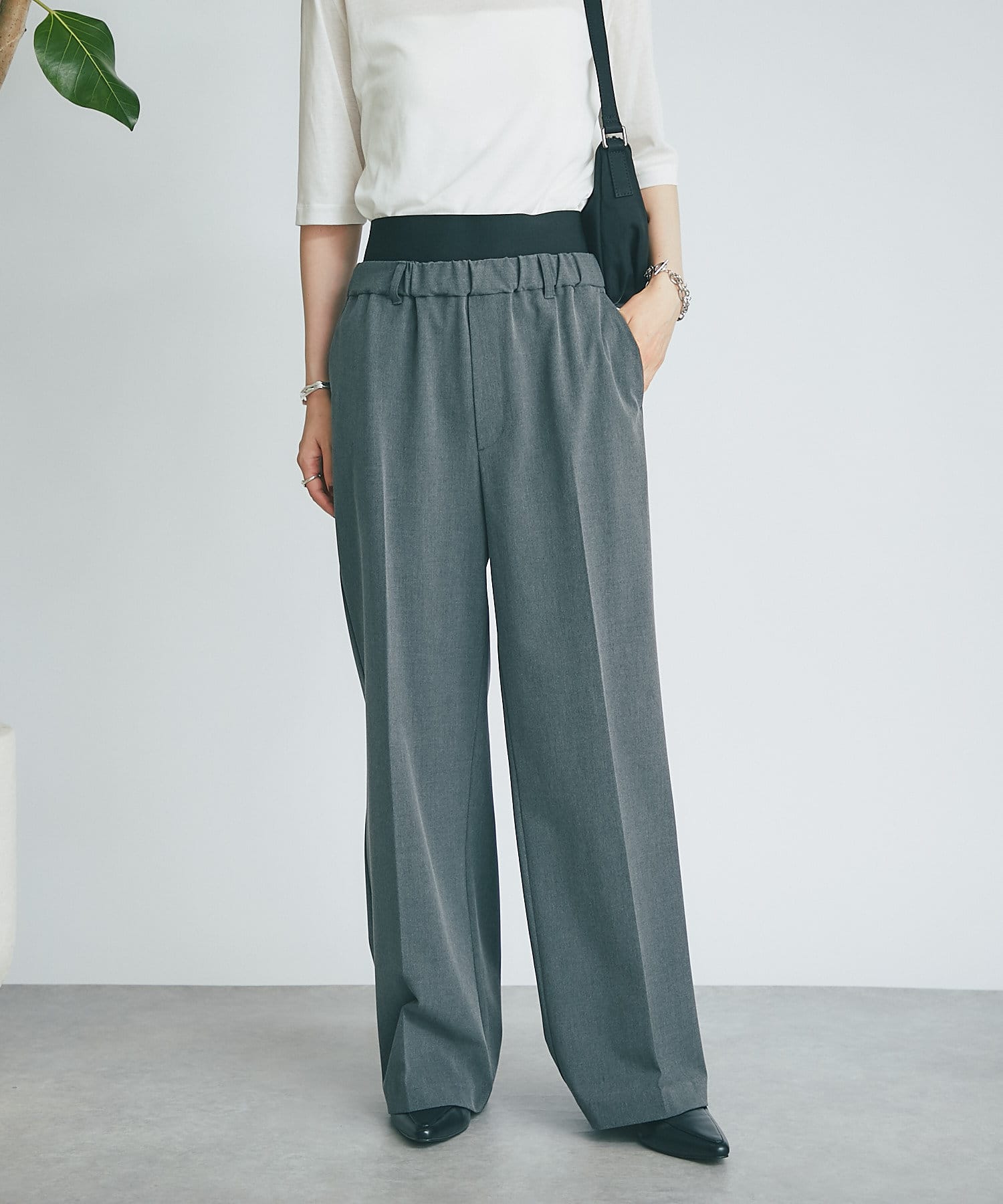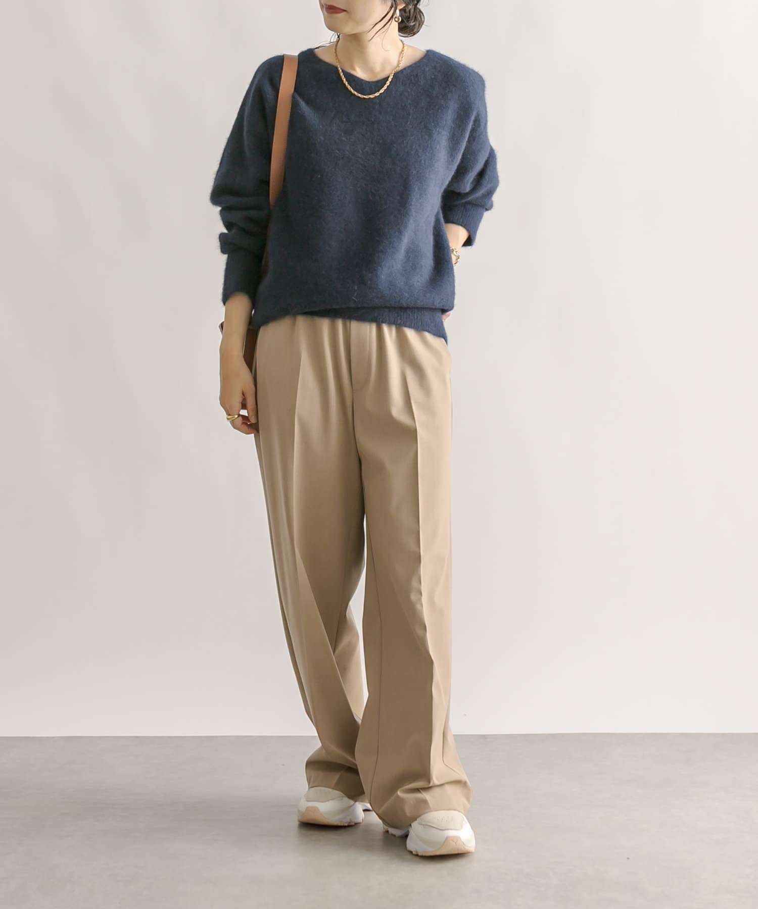 トップスをインするスタイリングもおすすめですが、ゆったりめのトップスを合わせてシンプルなスラックスとしても着用いただけます。