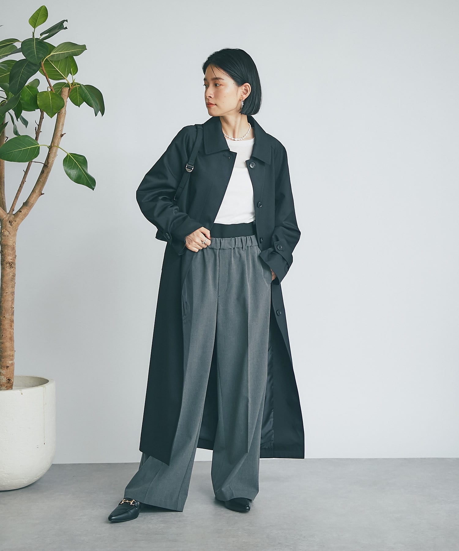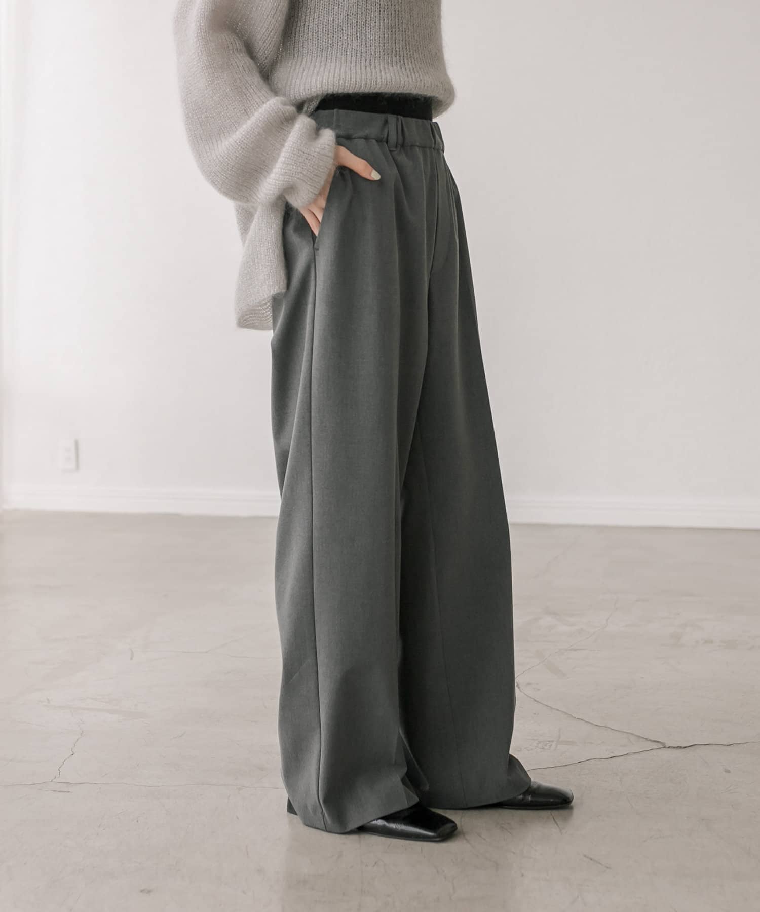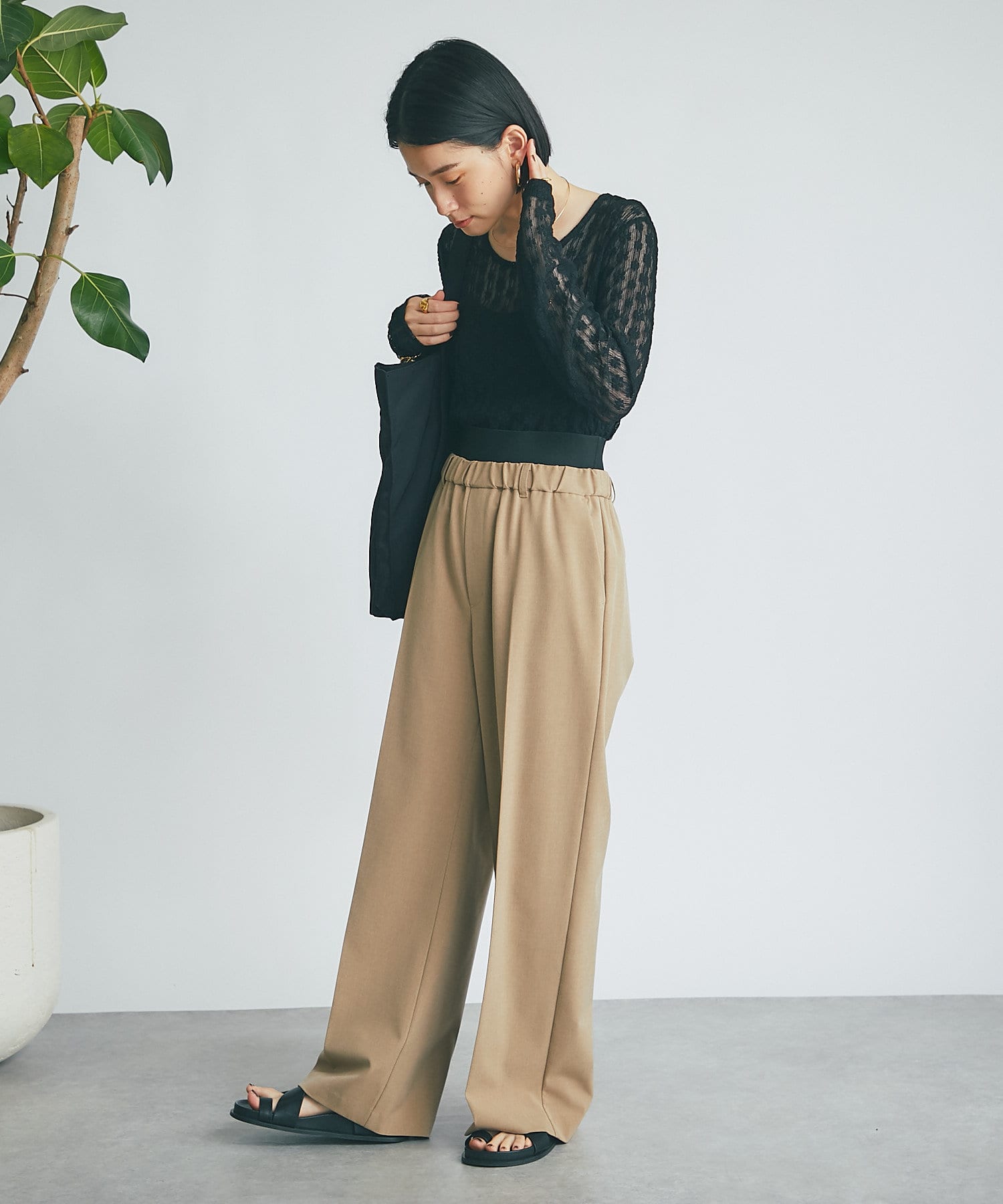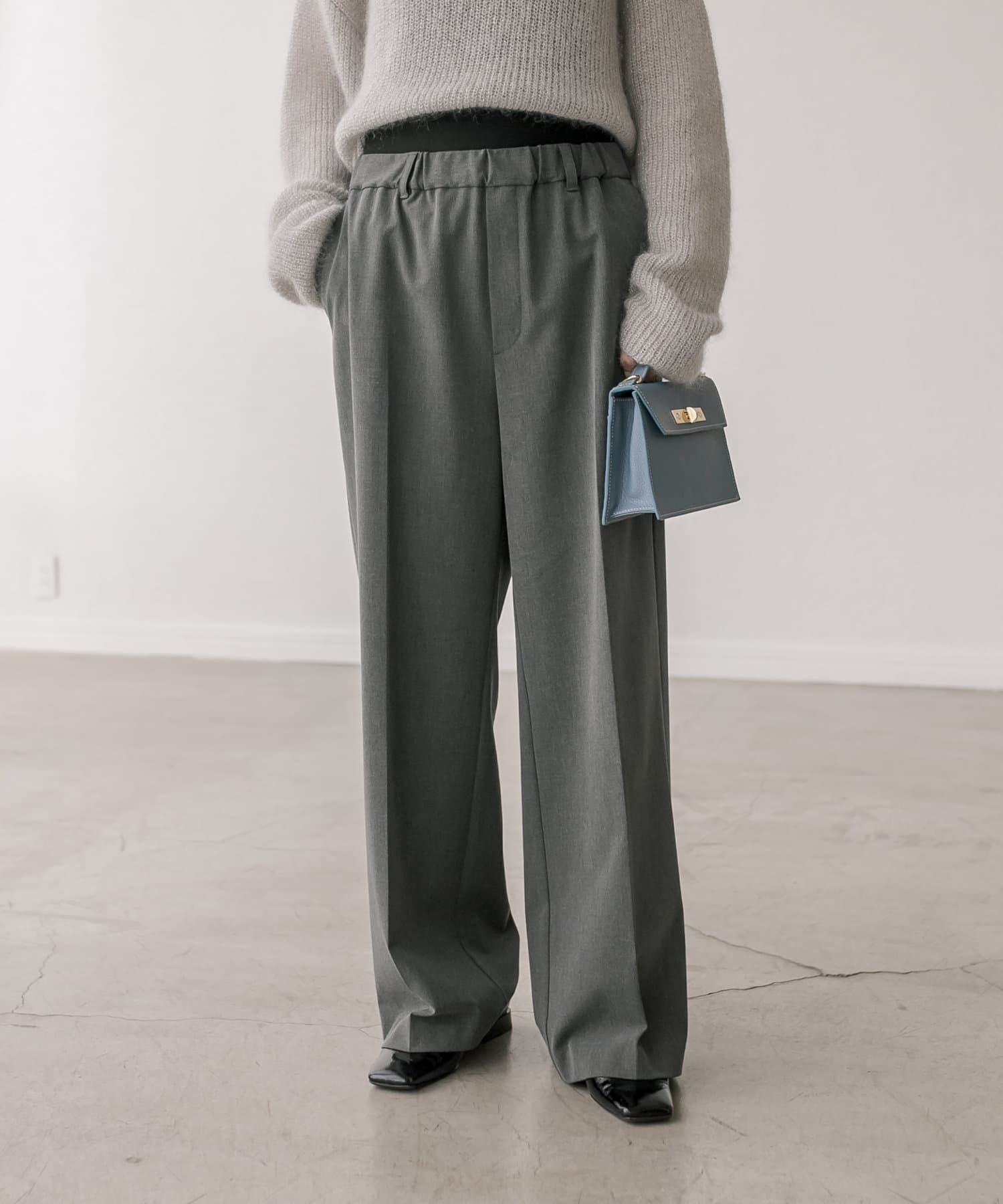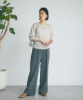 トップスをインするスタイリングもおすすめですが、ゆったりめのトップスを合わせてシンプルなスラックスとしても着用いただけます。