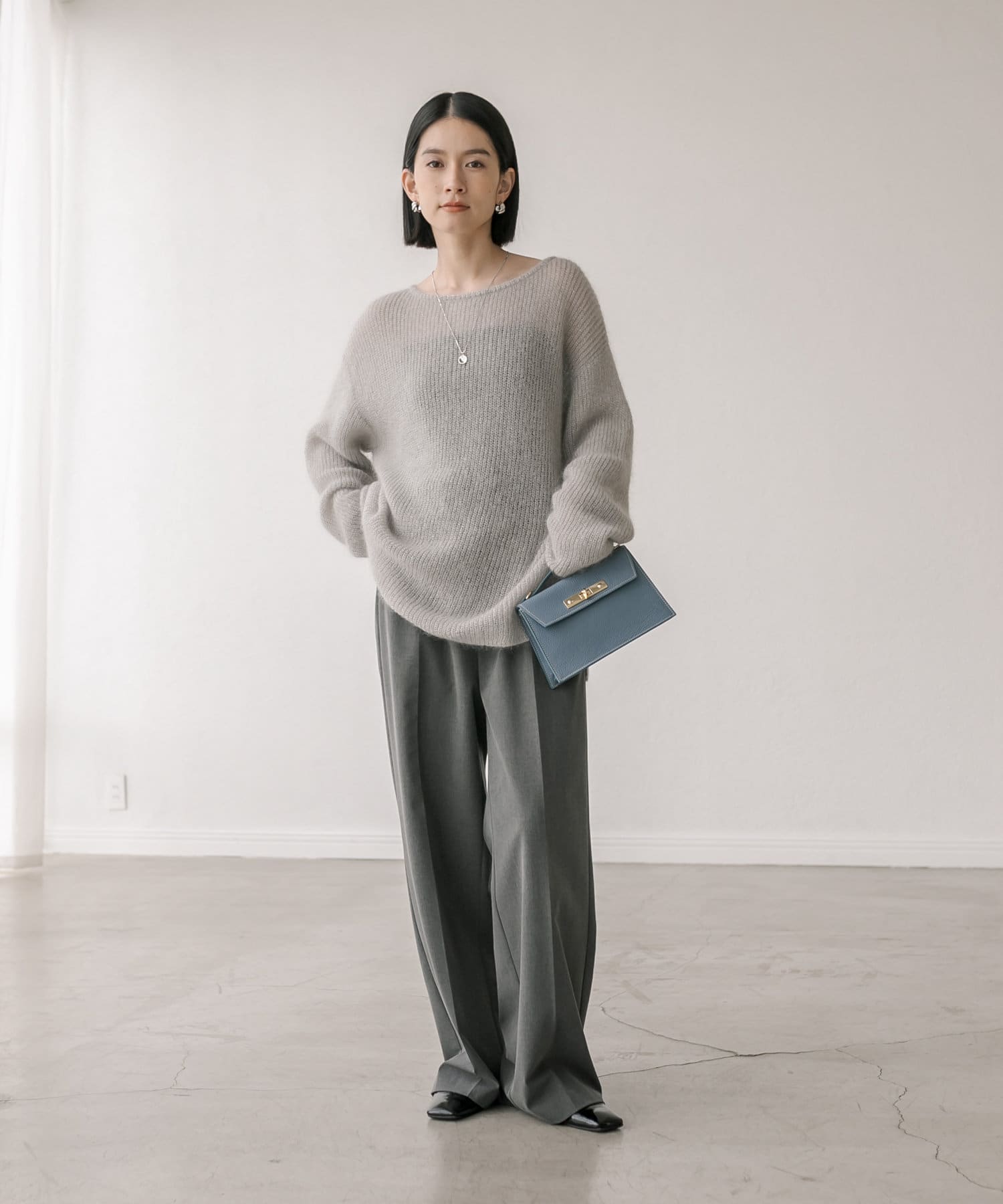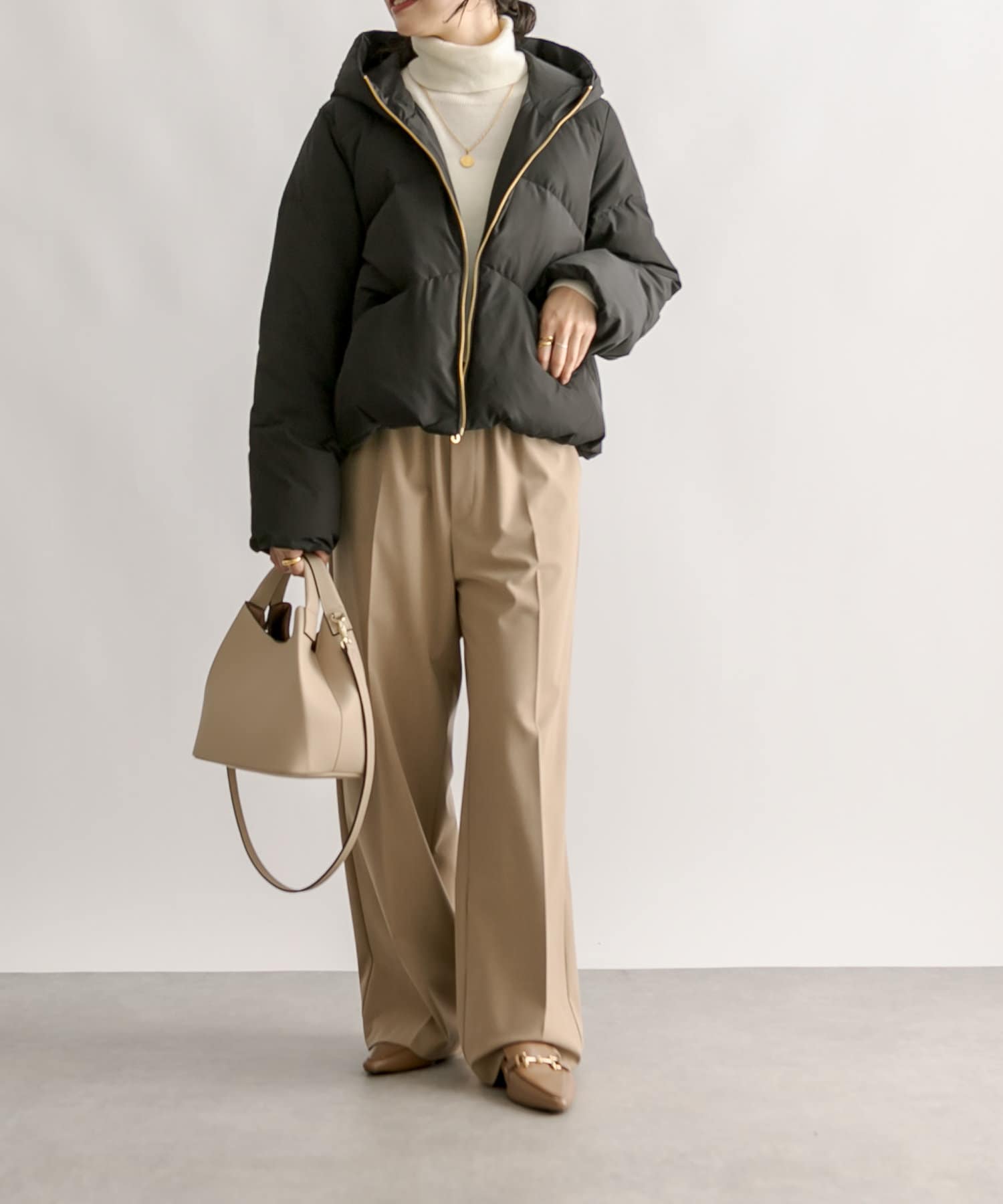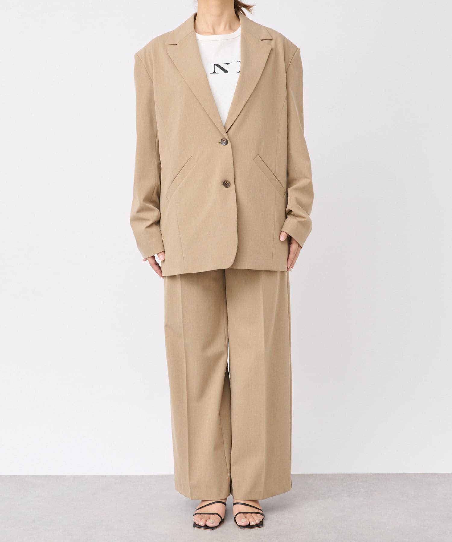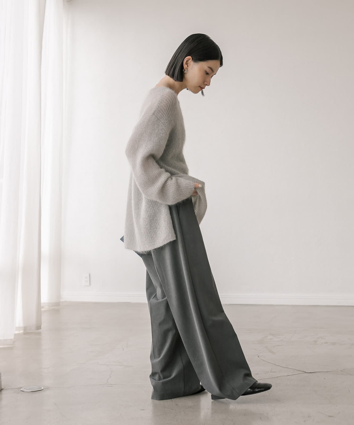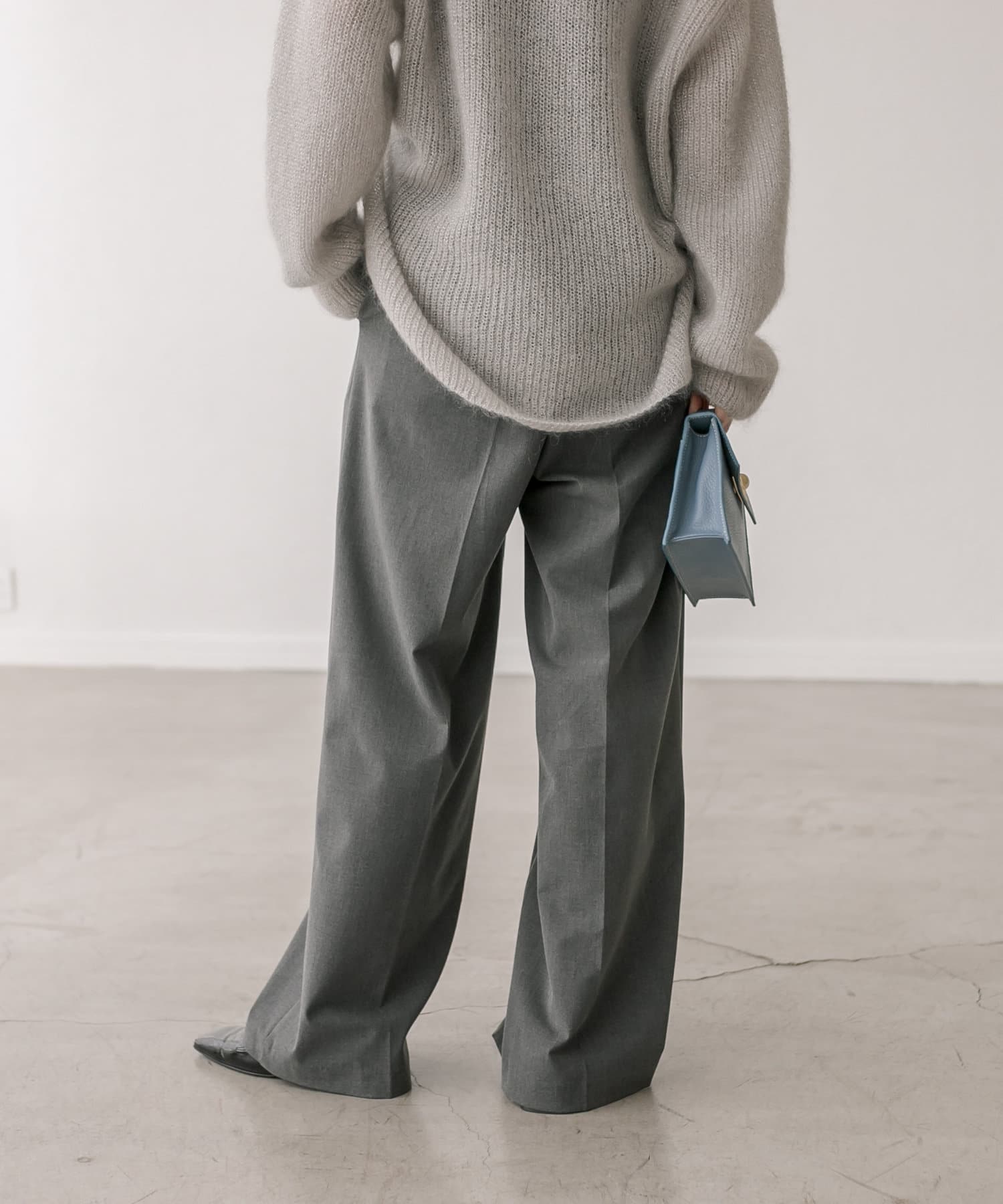 トップスをインするスタイリングもおすすめですが、ゆったりめのトップスを合わせてシンプルなスラックスとしても着用いただけます。