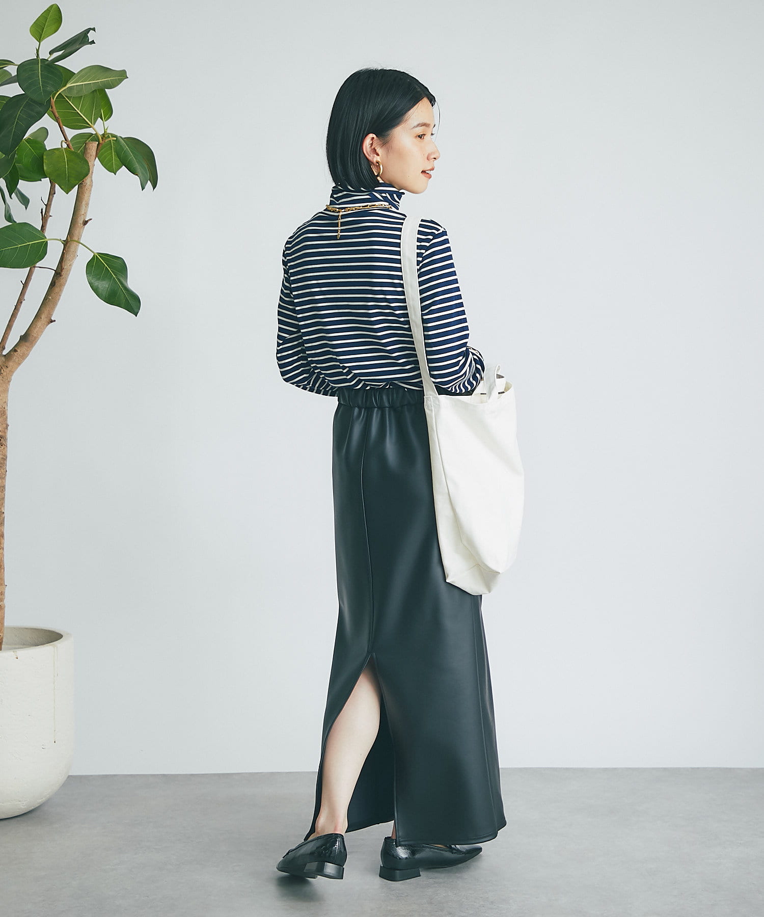 程よく身体が泳ぐサイズ感のタートルネックカットソー。