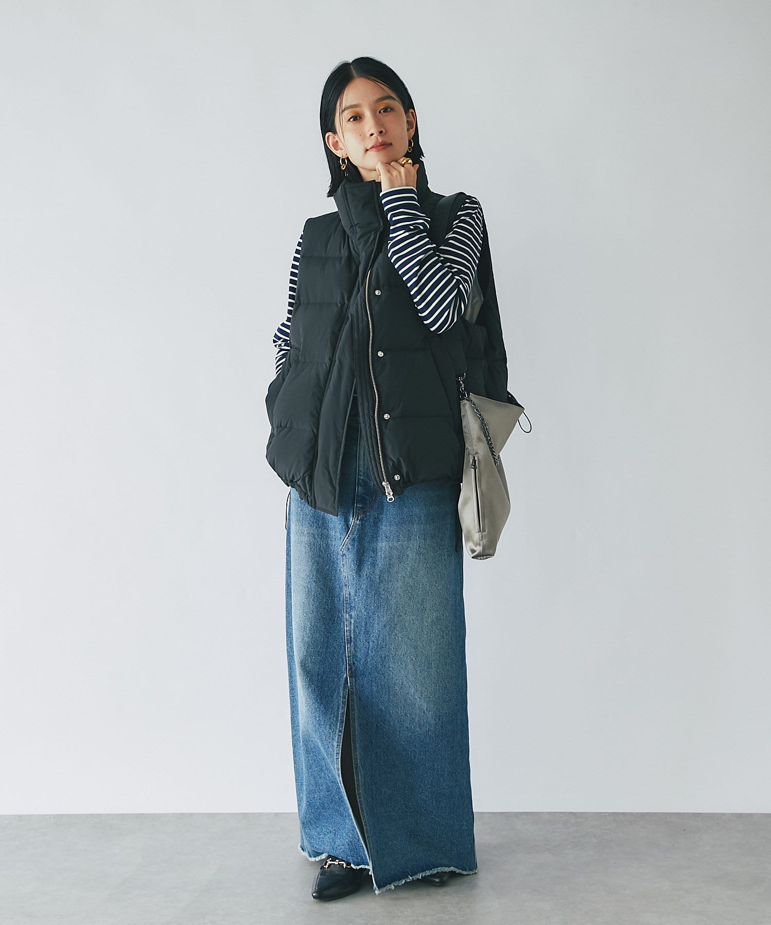 すっきりとしたサイズ感でカジュアルアイテムの引き締め役や、ワイドパンツなどのボリューム感のあるボトムと相性抜群のアイテム。