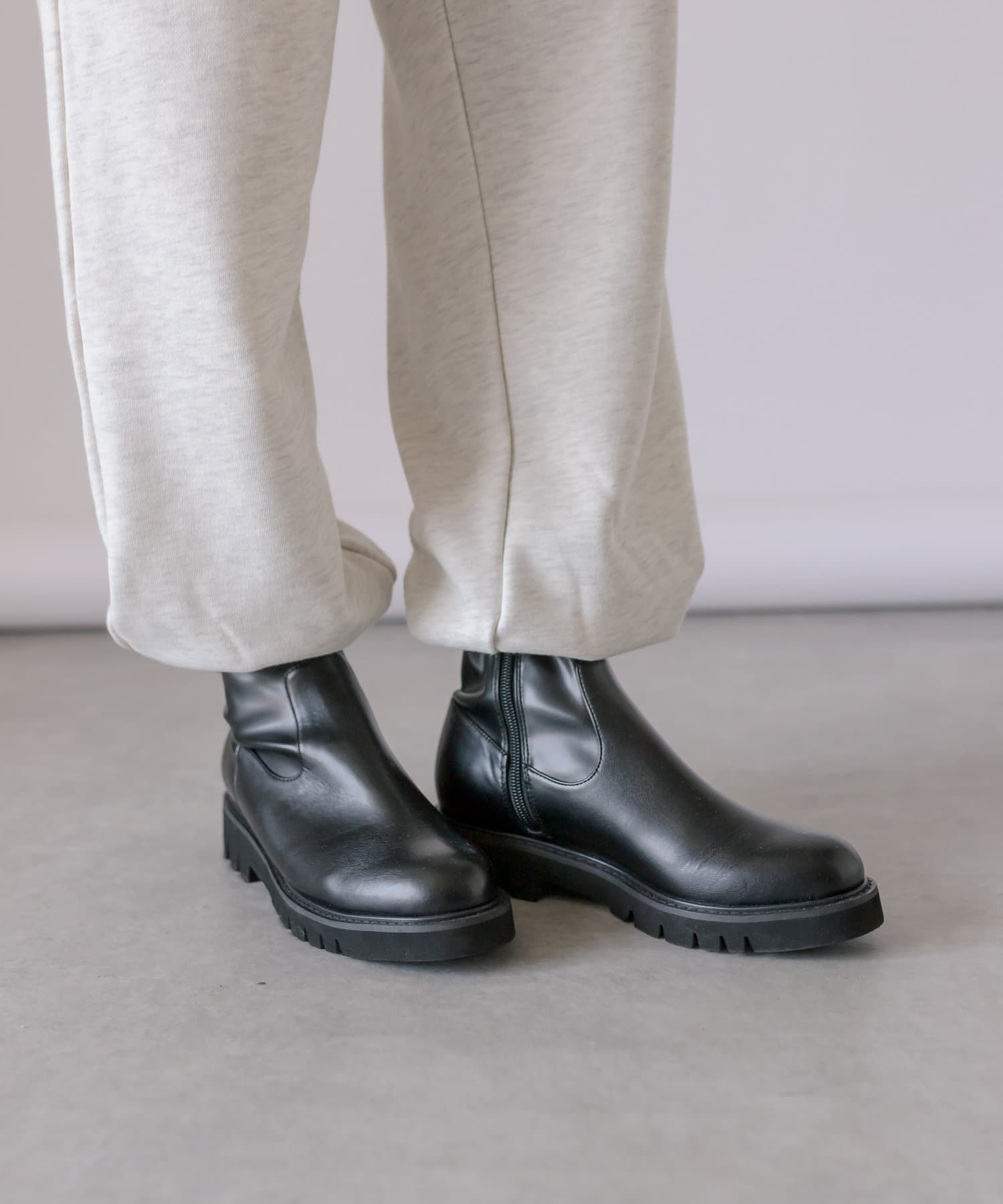 ボリュームもありながらすっきりとしたシルエットを楽しんでいただけるショートブーツです。