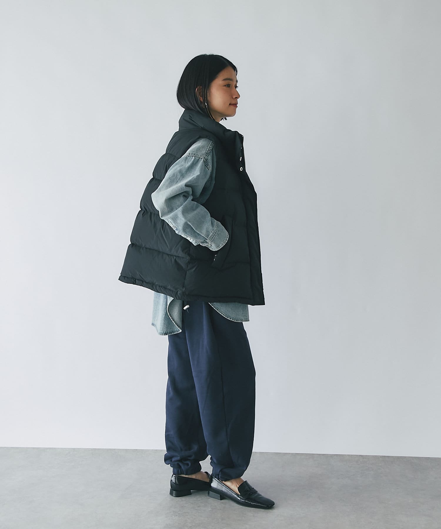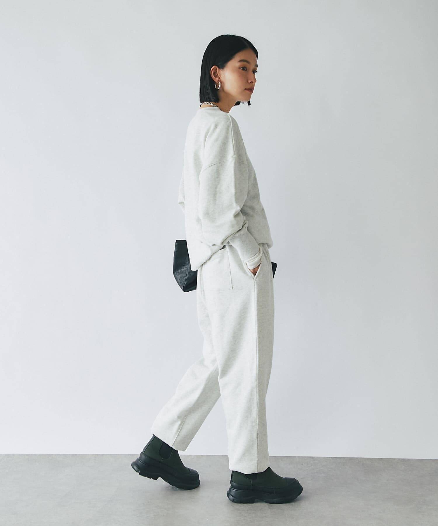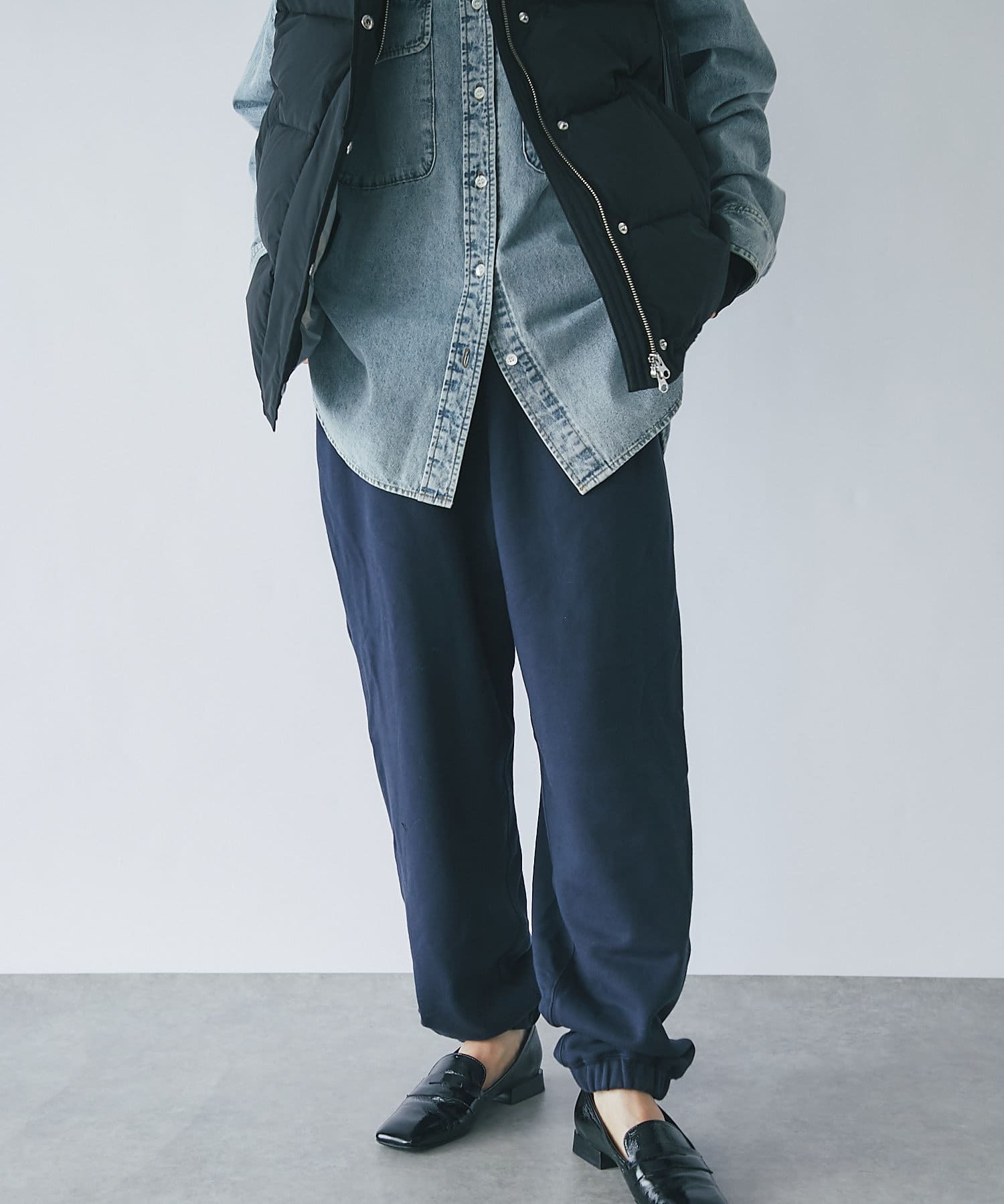 ゆったりとしたサイズ感に仕上げたことで、脚のラインを拾いづらく、リラックスしてお召しいただけます。