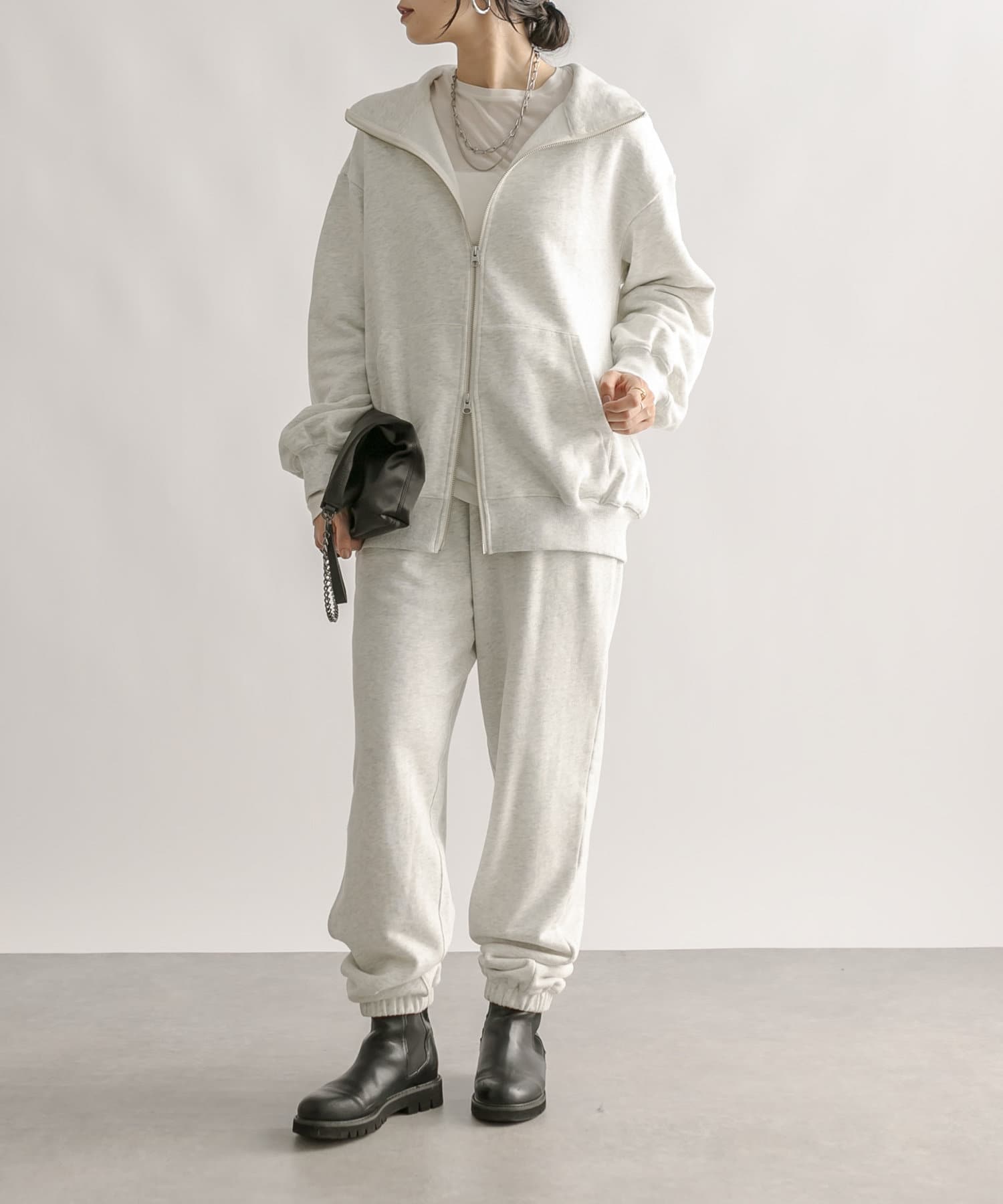 同素材でお作りした【MONN.:. (モン)】オーバースウェット(RDZ5032306A0002)を合わせたセットアップコーデが一押し。