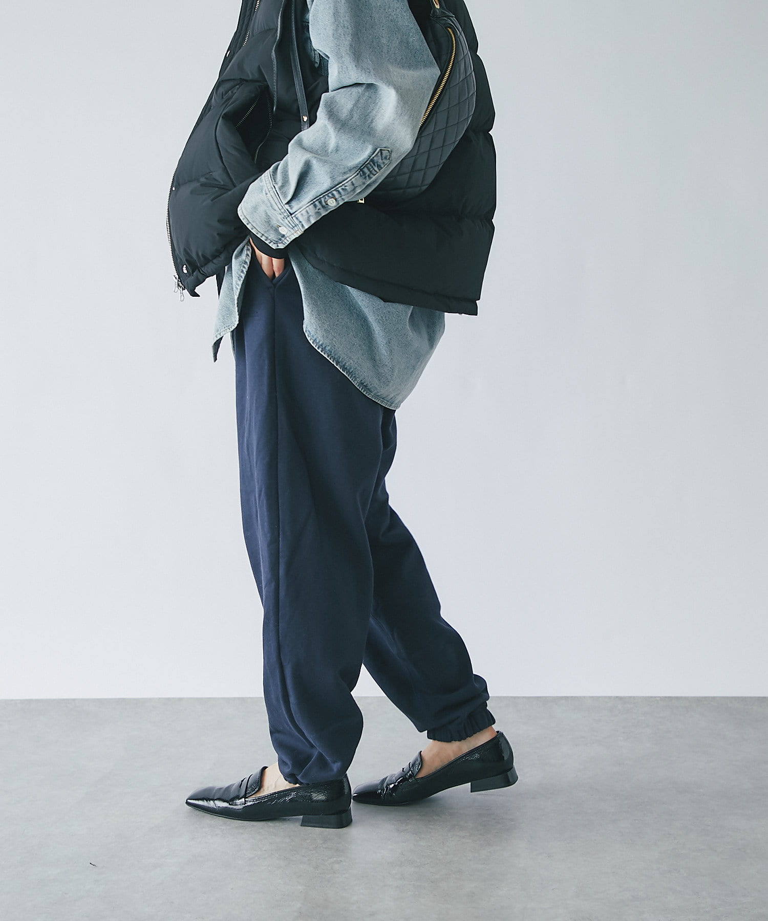 ゆったりとしたサイズ感に仕上げたことで、脚のラインを拾いづらく、リラックスしてお召しいただけます。