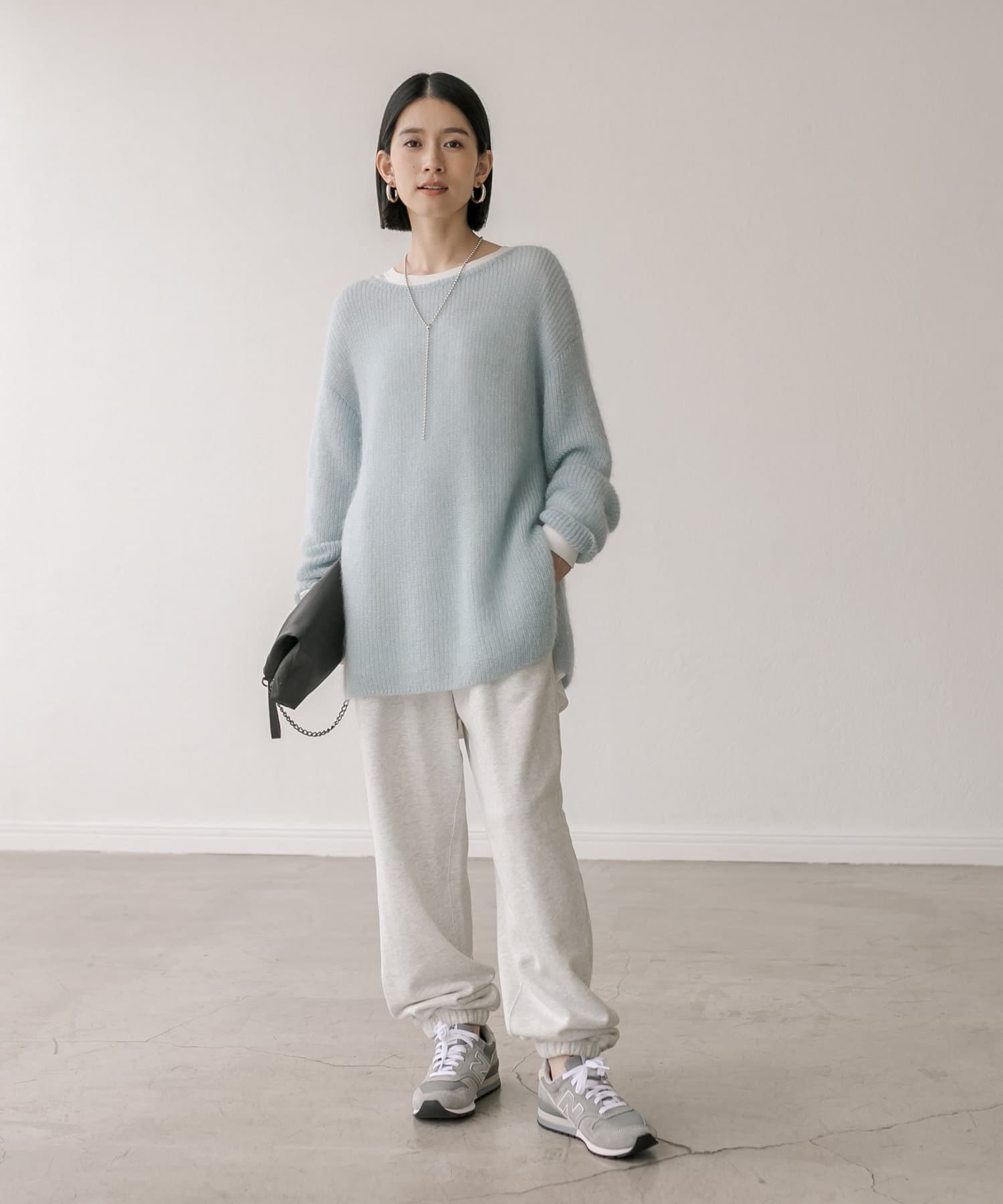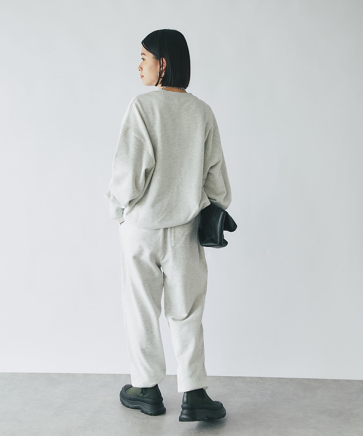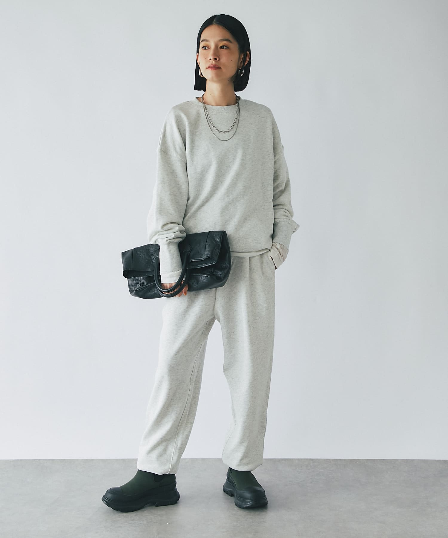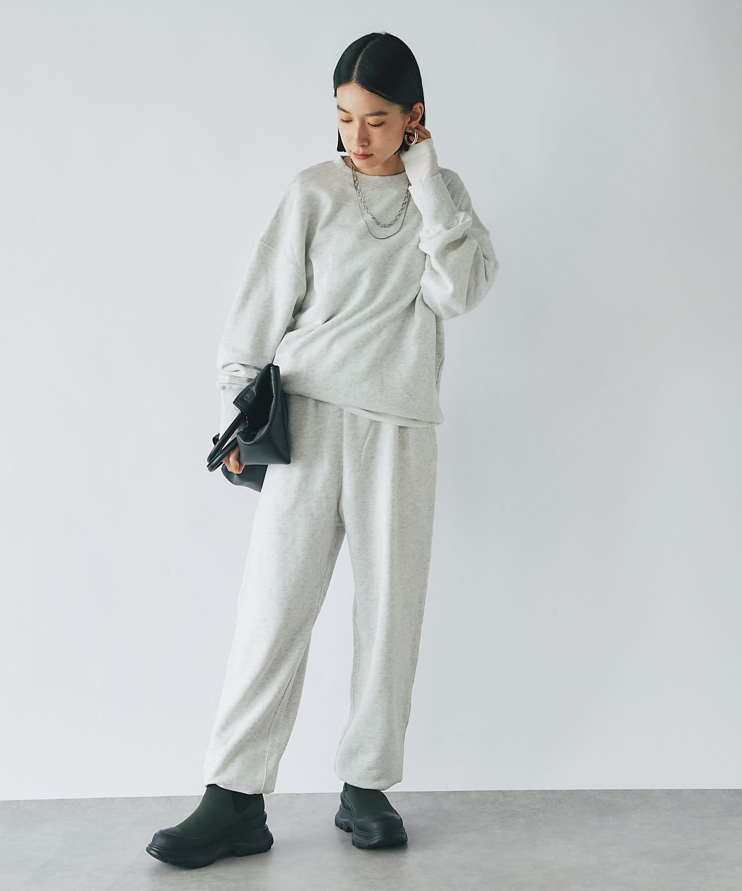 同素材でお作りした【MONN.:. (モン)】オーバースウェット(RDZ5032306A0002)を合わせたセットアップコーデが一押し。