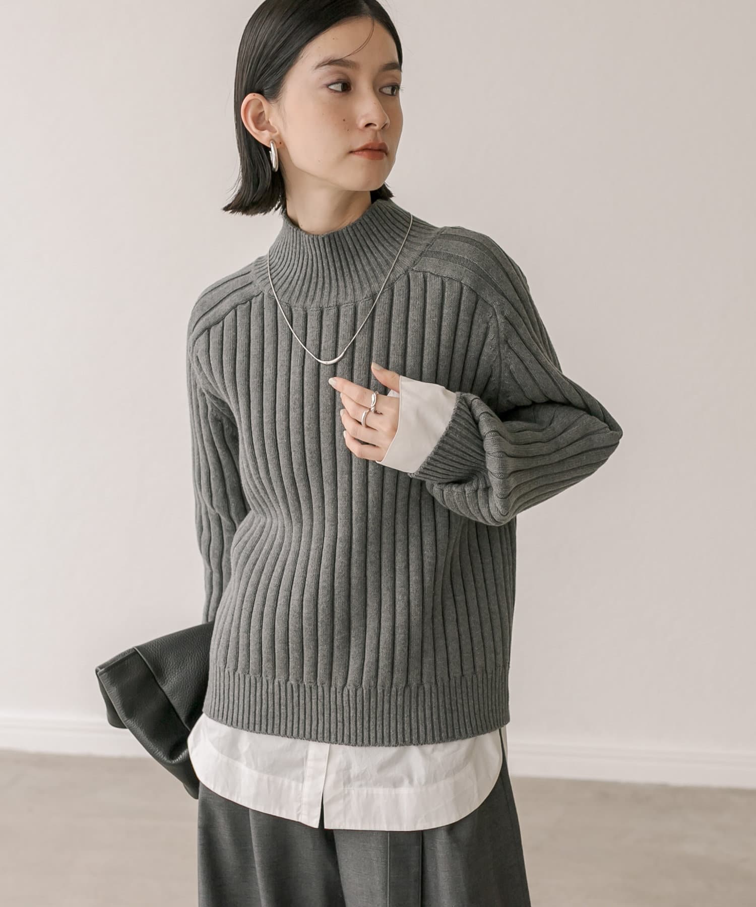 ざっくりとした太目のリブ編み仕様で、程よくラフな印象に。