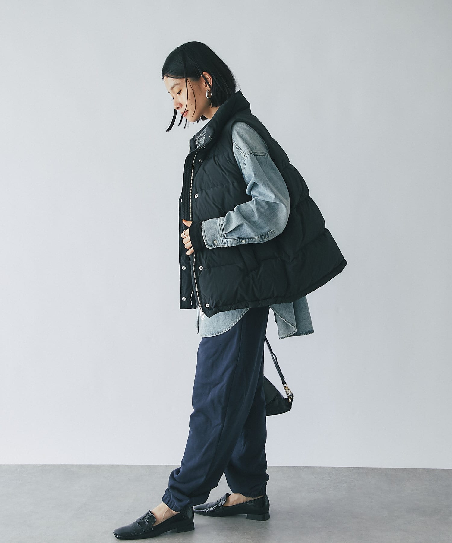 アームホールはゆったり目に仕上げたことで、インナーに厚手のニットやスウェットも合わせやすい仕様に。
