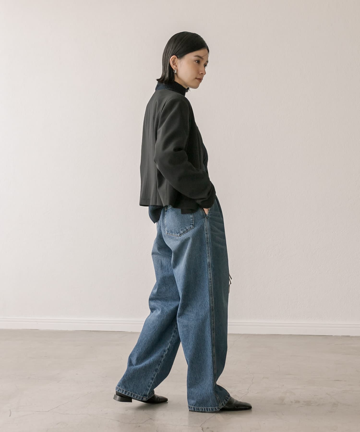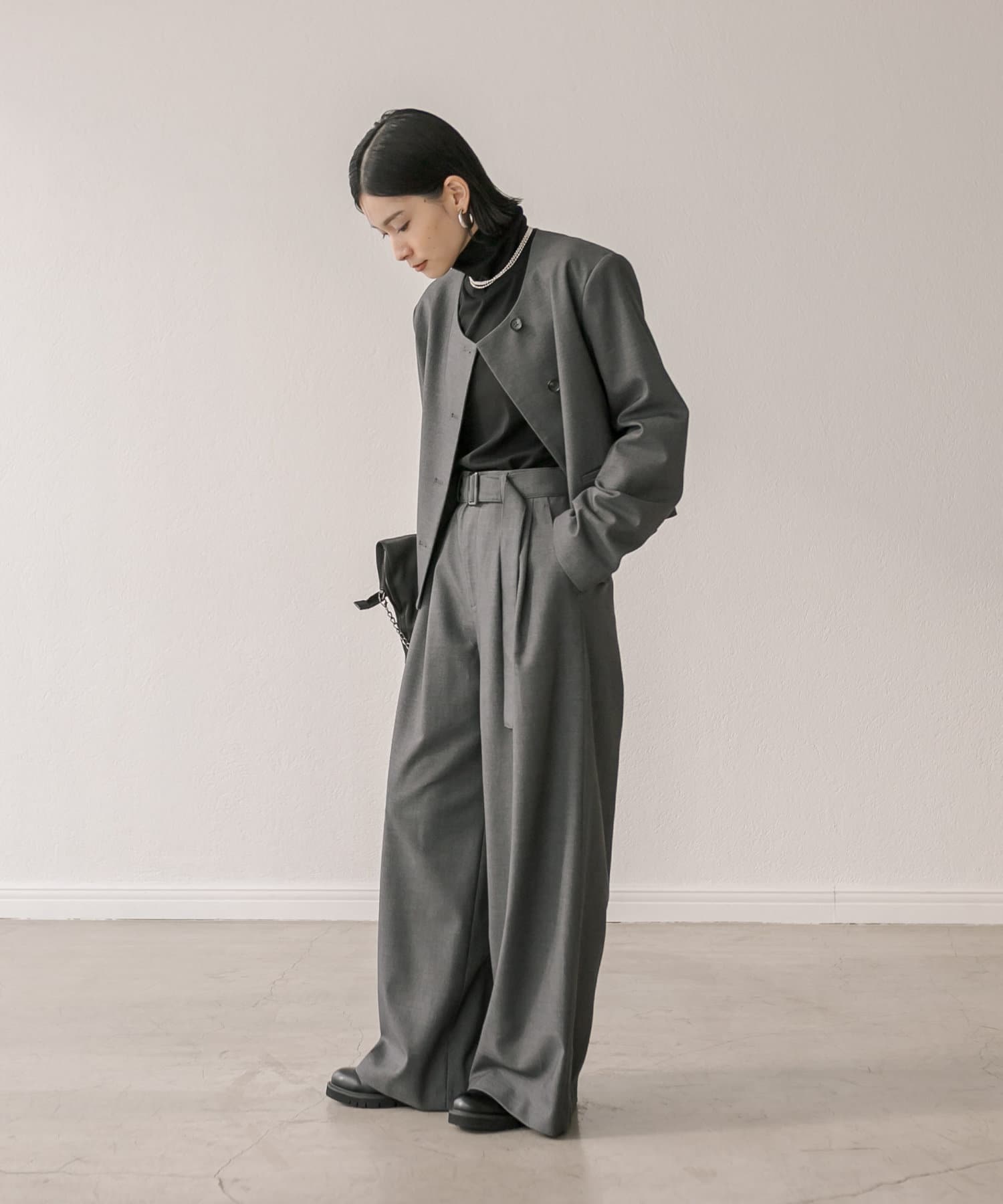 • 襟元はノーカラーなので、合わせるアイテムを選びません
