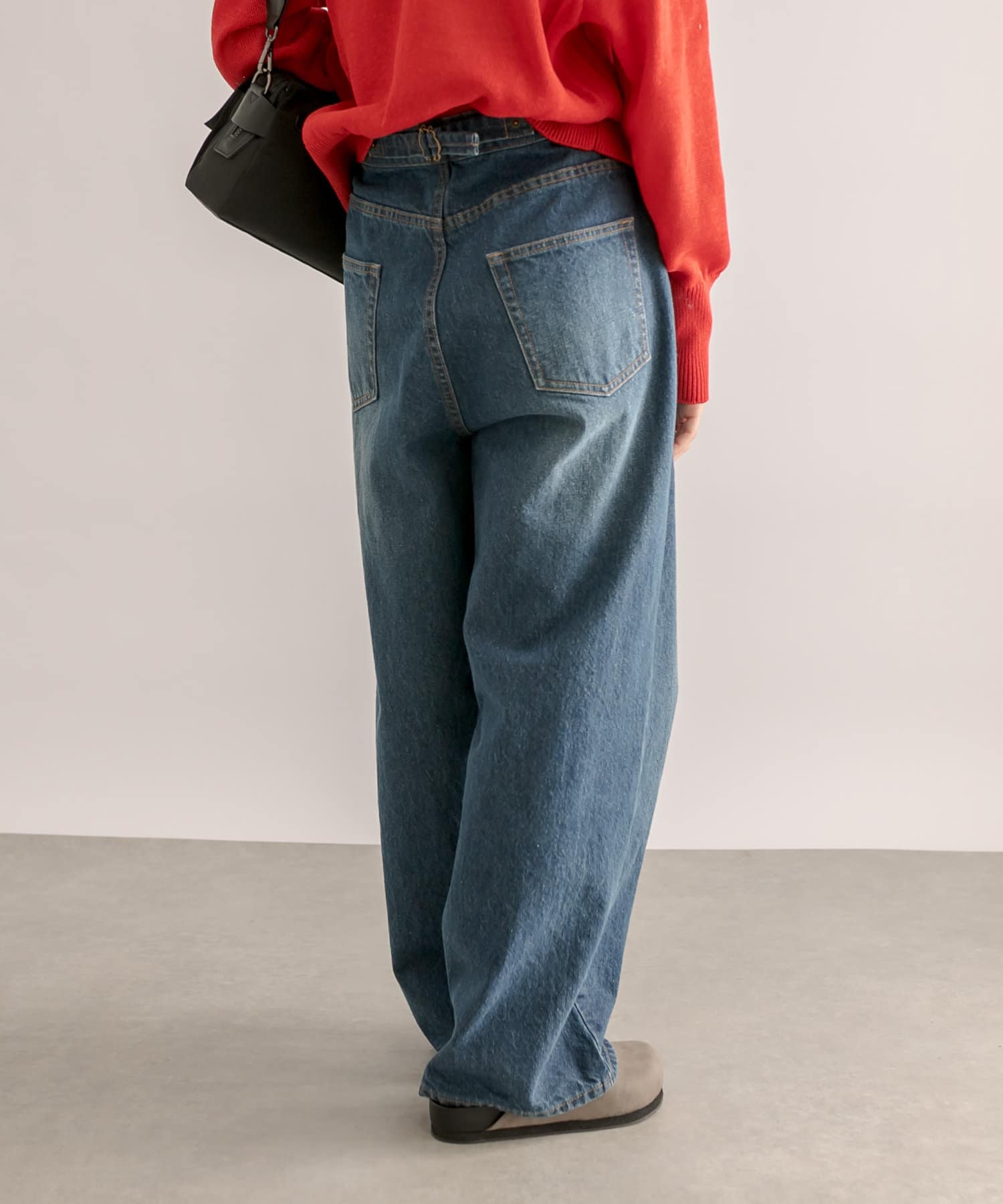 ルーズなシルエットがハンサムな印象のデニムパンツ。