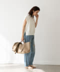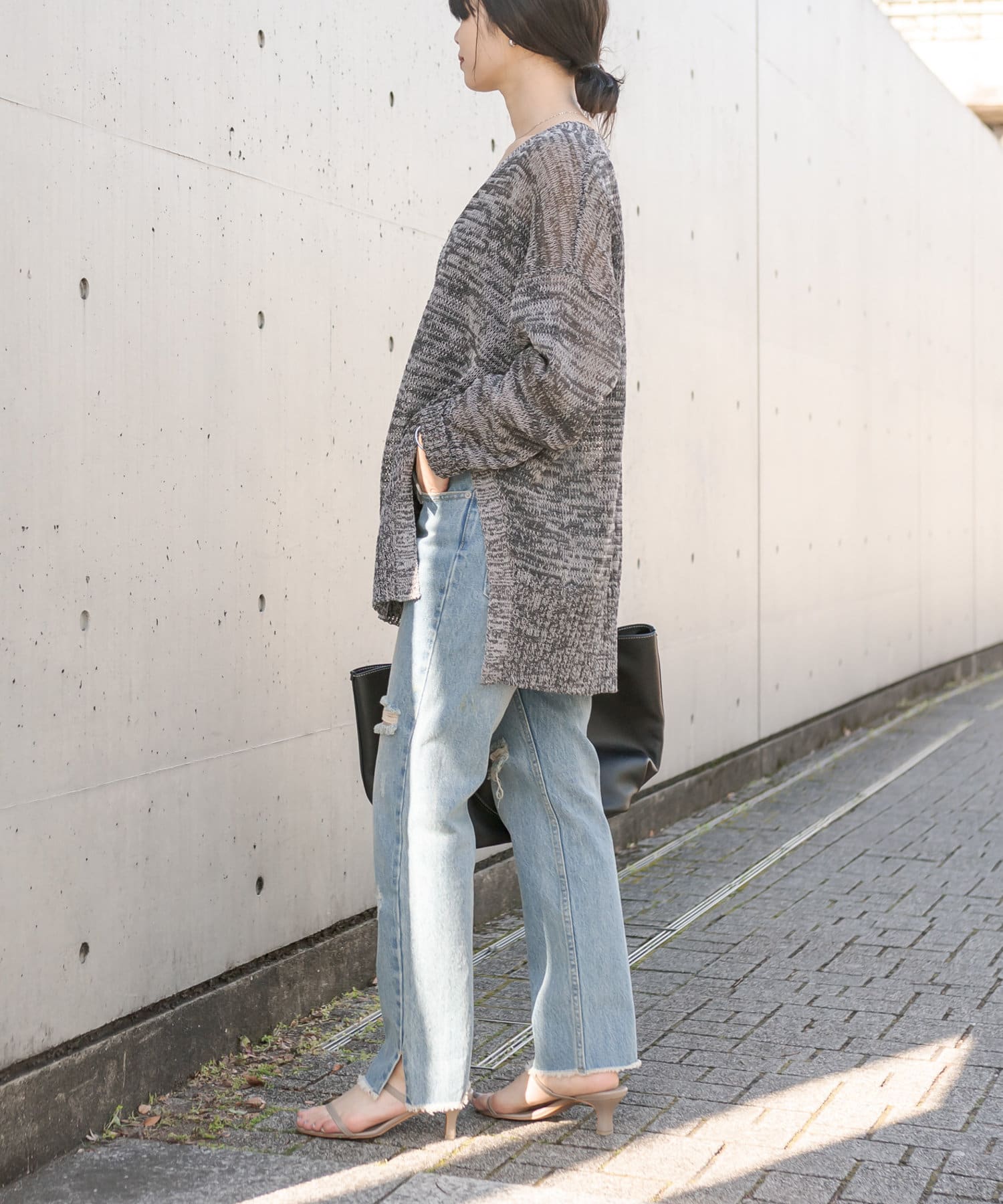 裾スリットがサンダル、スニーカーを履いた時に裾がたまらずに比較的すっきりとした印象で履いていただけます。