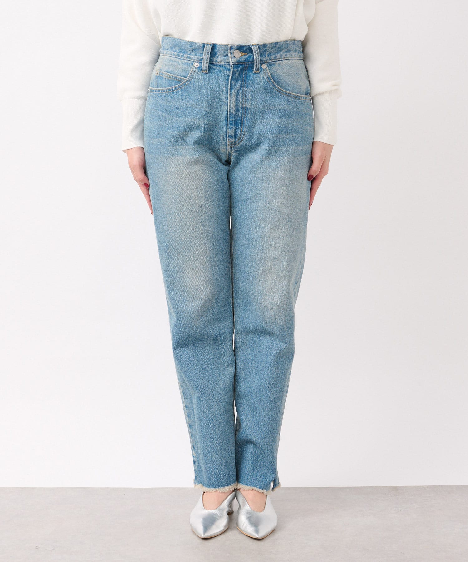 シンプルなストレートシルエットのデニム。