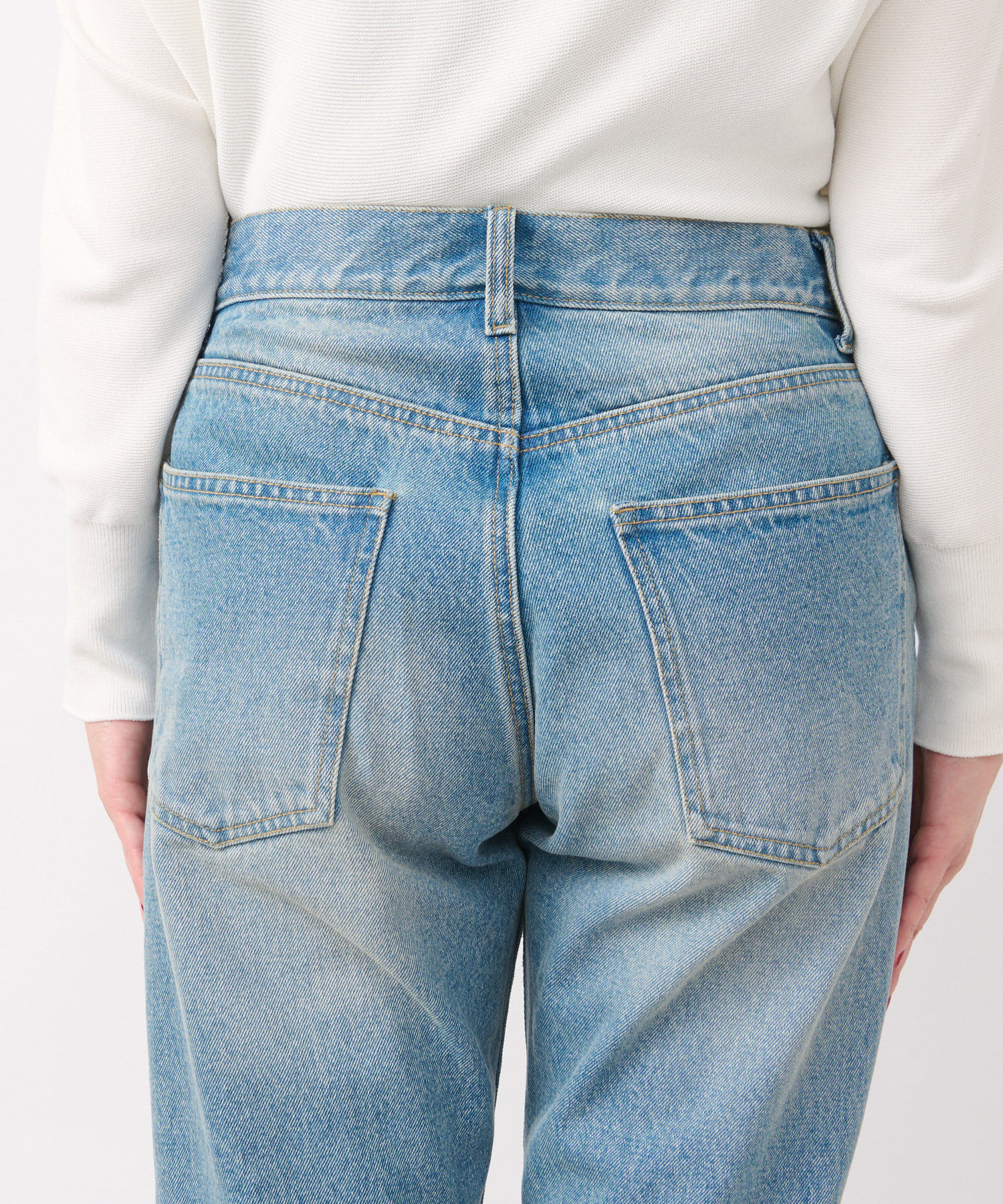 窮屈にならない程度に、身体に程良く沿うシルエット。よりベーシックに履いていただけるデザインです。
