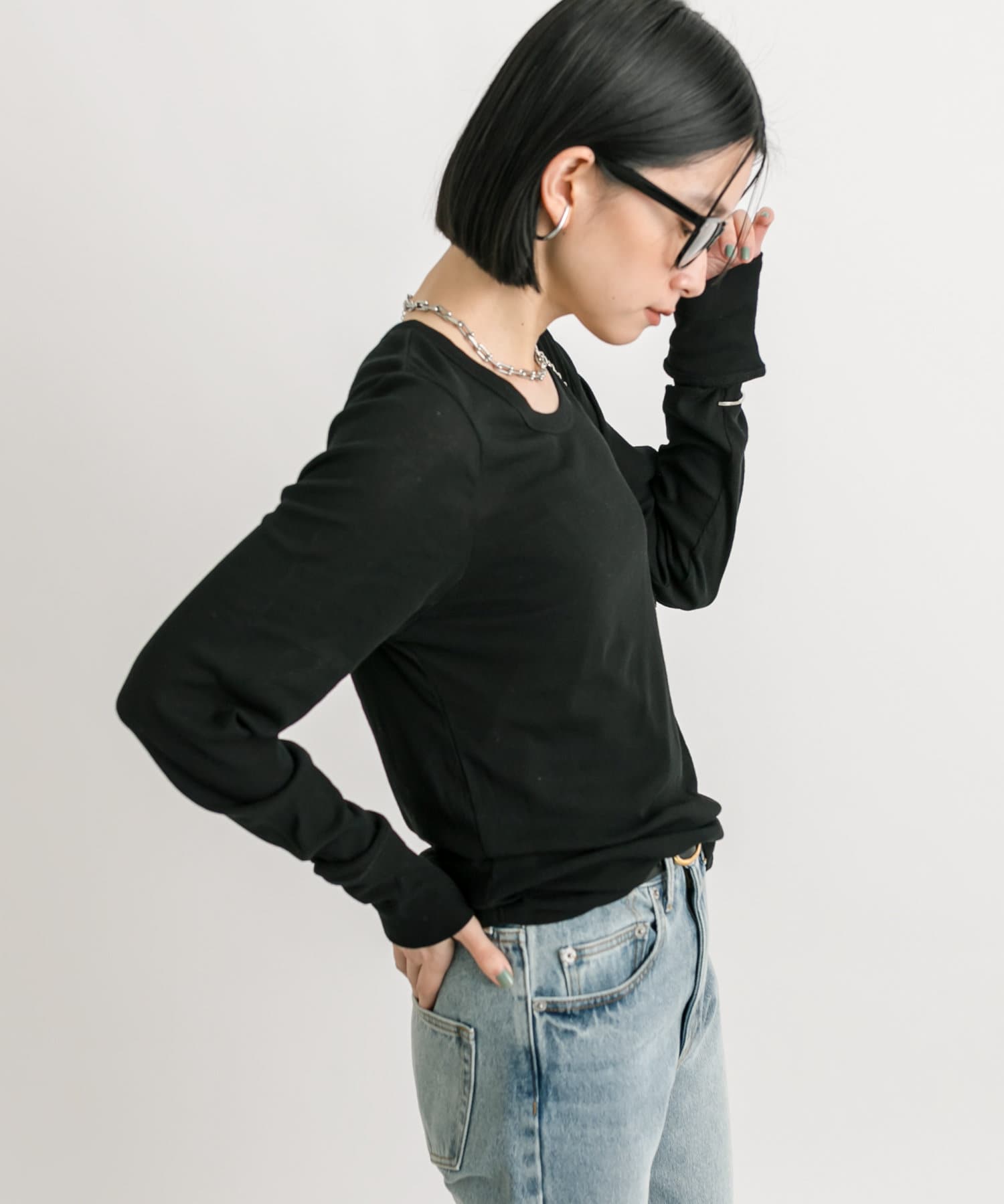 少し深めのUネックで、首回りもすっきりとした印象で着用いただけます。