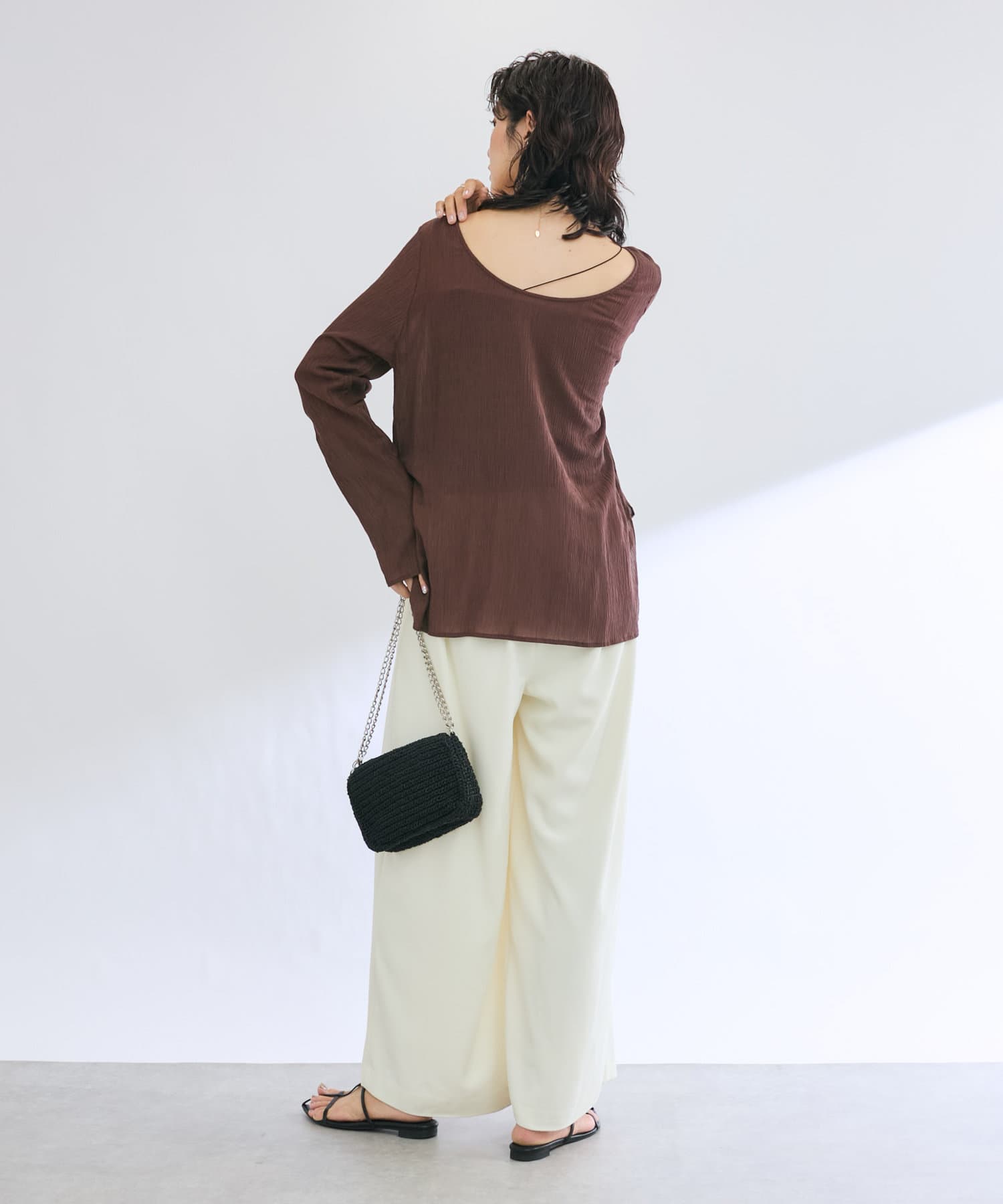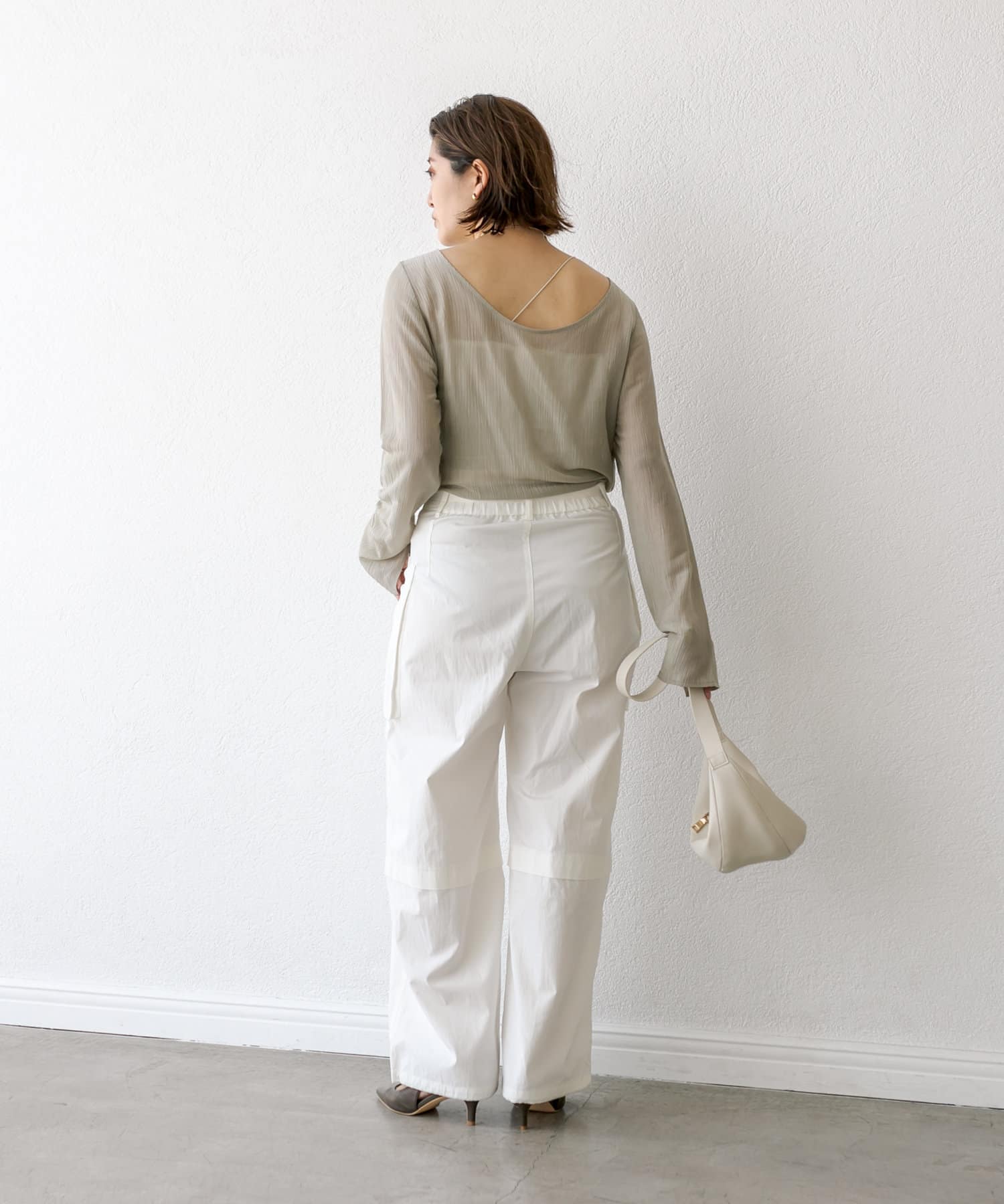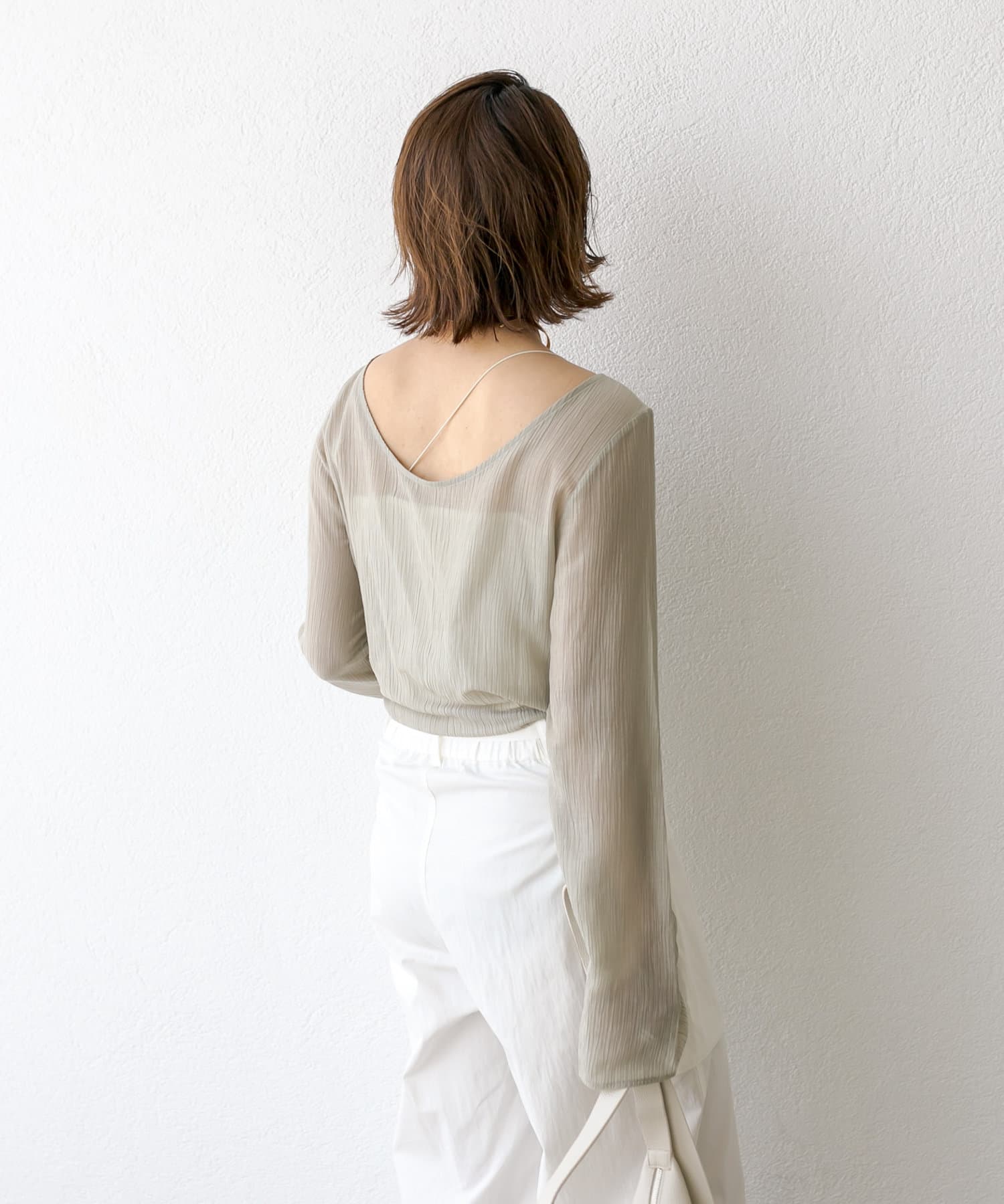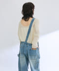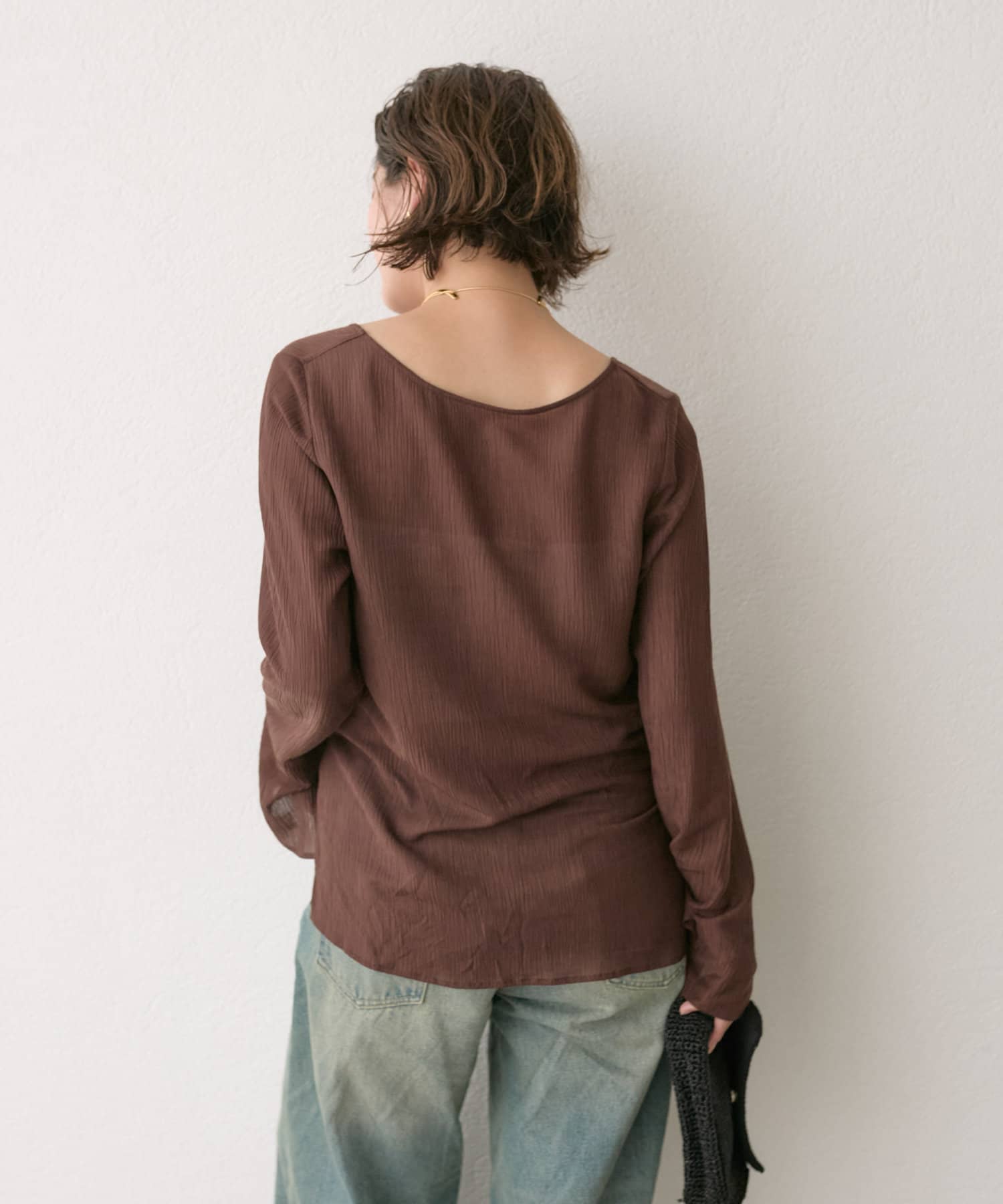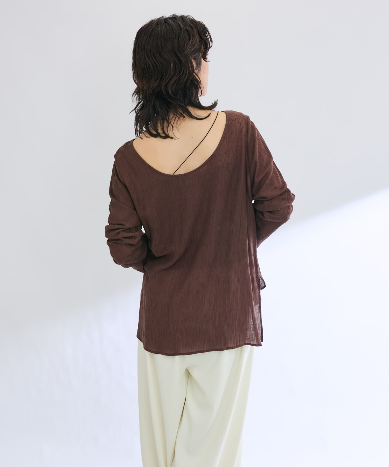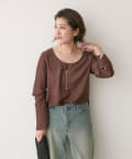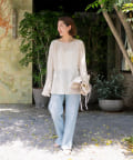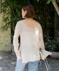 前後2WAYの仕様になっており、深めのUネックが女性らしい雰囲気に。さり気無い肌見せが叶うトップスです。