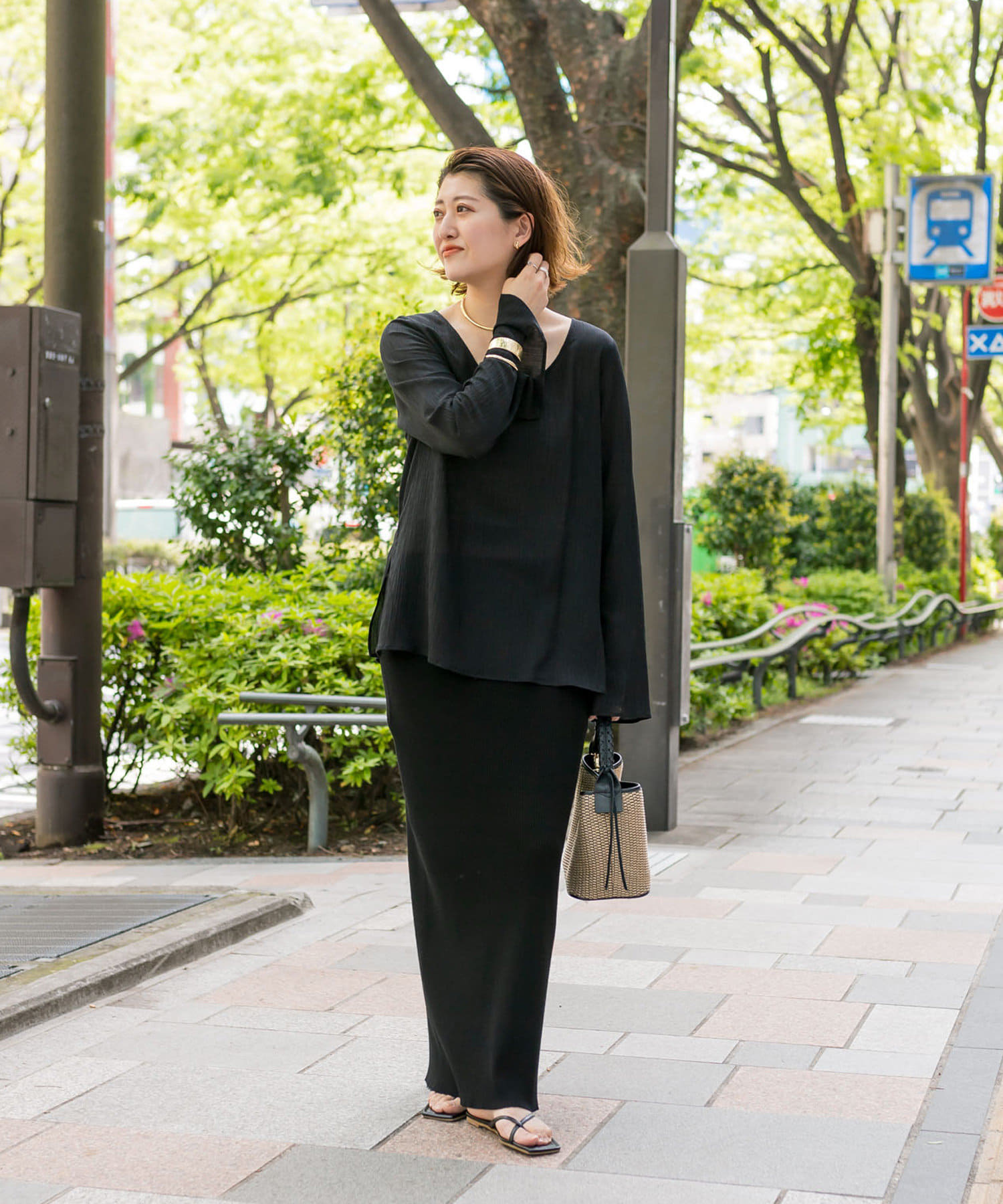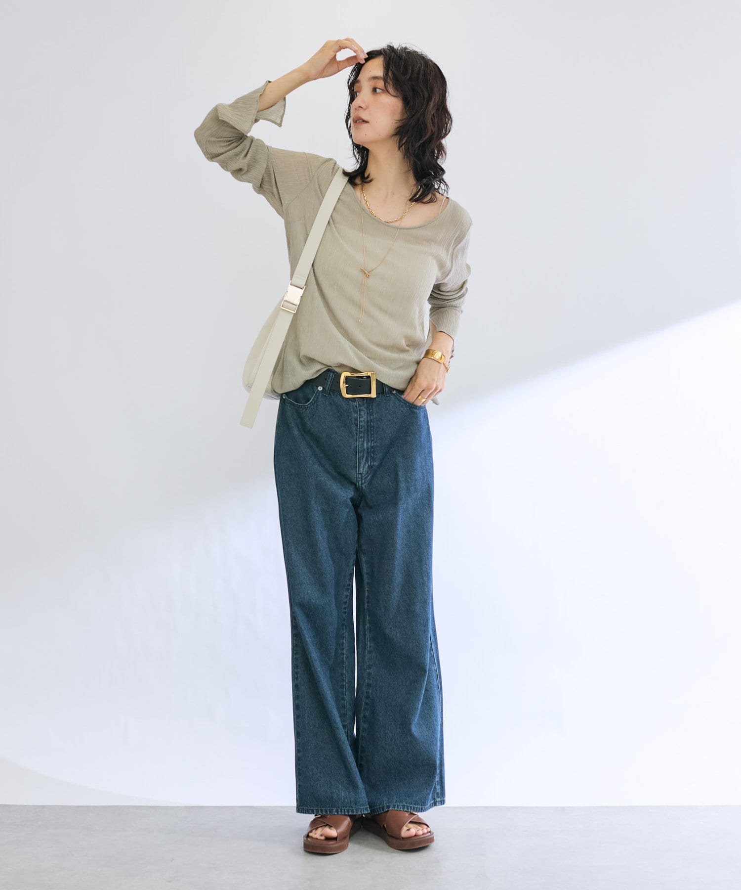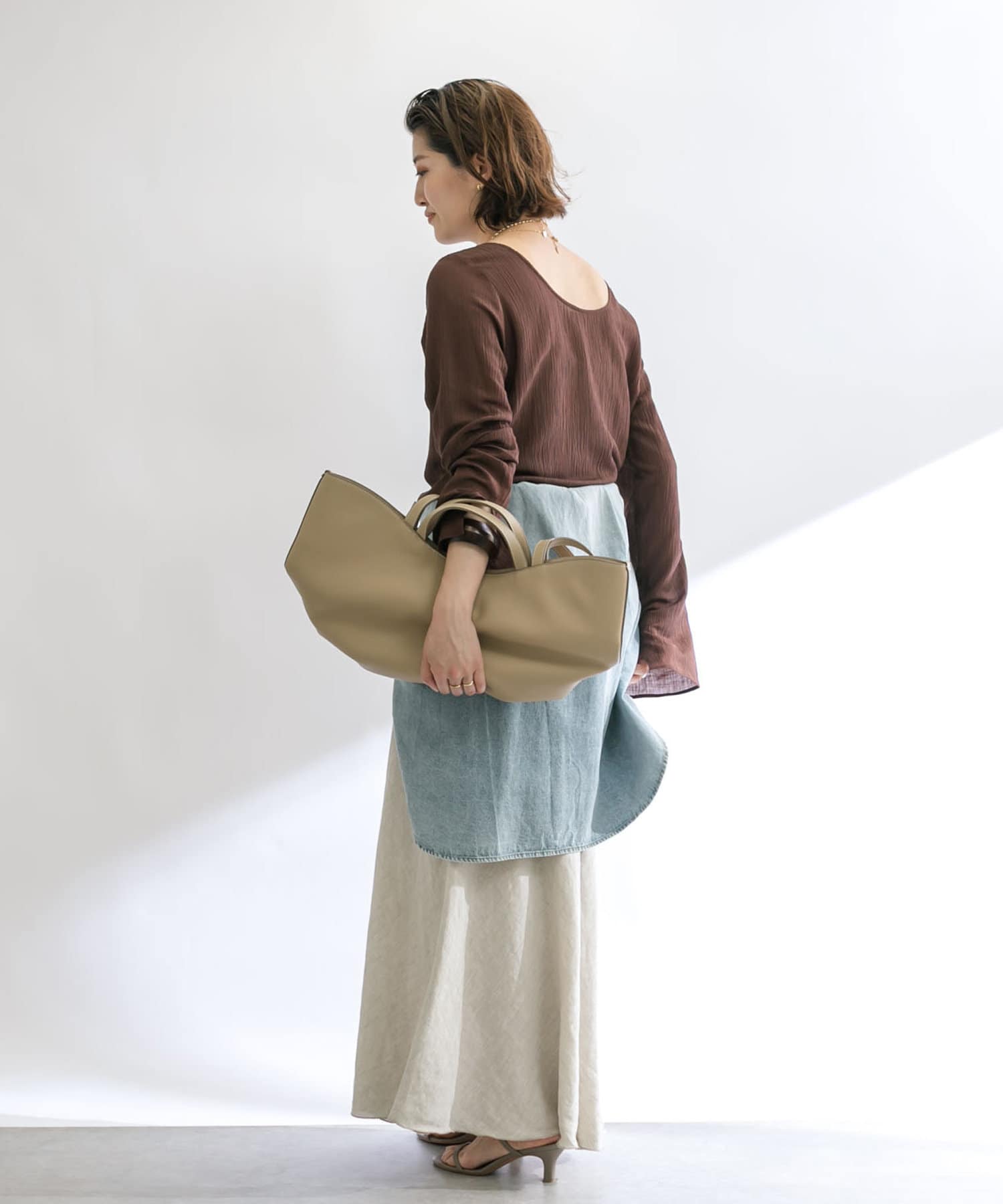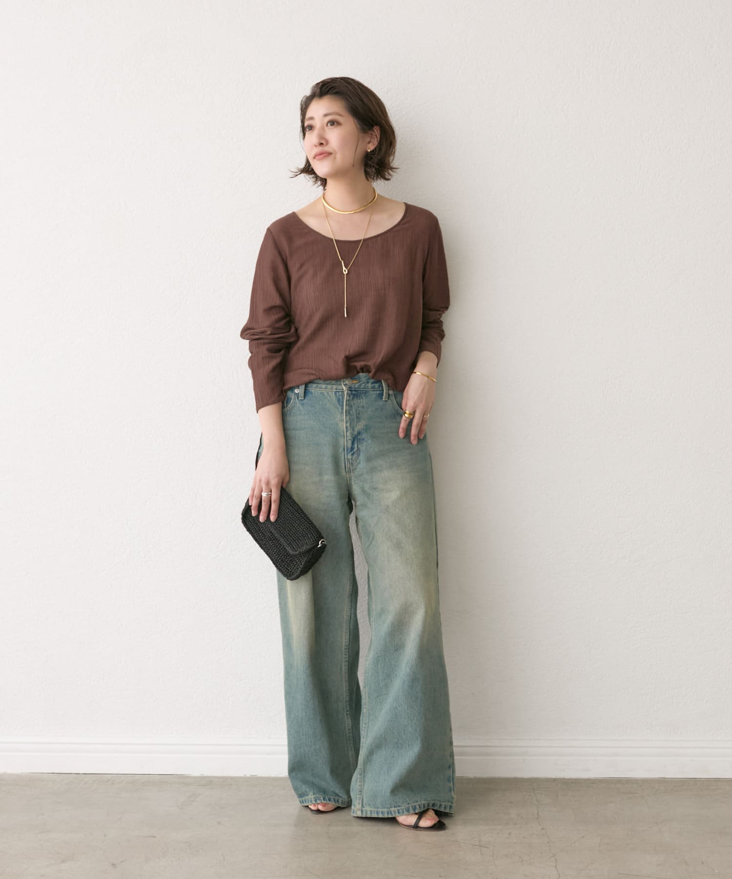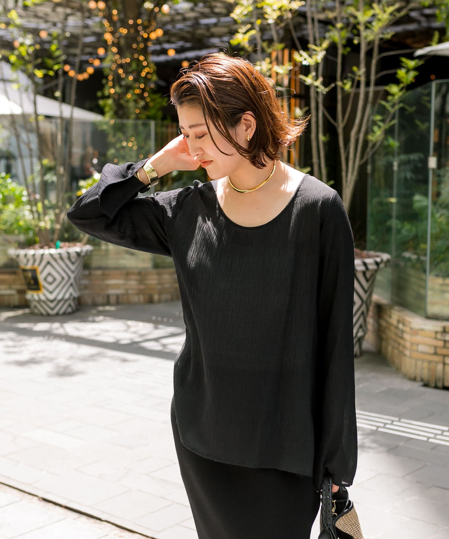前後2WAYの仕様になっており、深めのUネックが女性らしい雰囲気に。さり気無い肌見せが叶うトップスです。