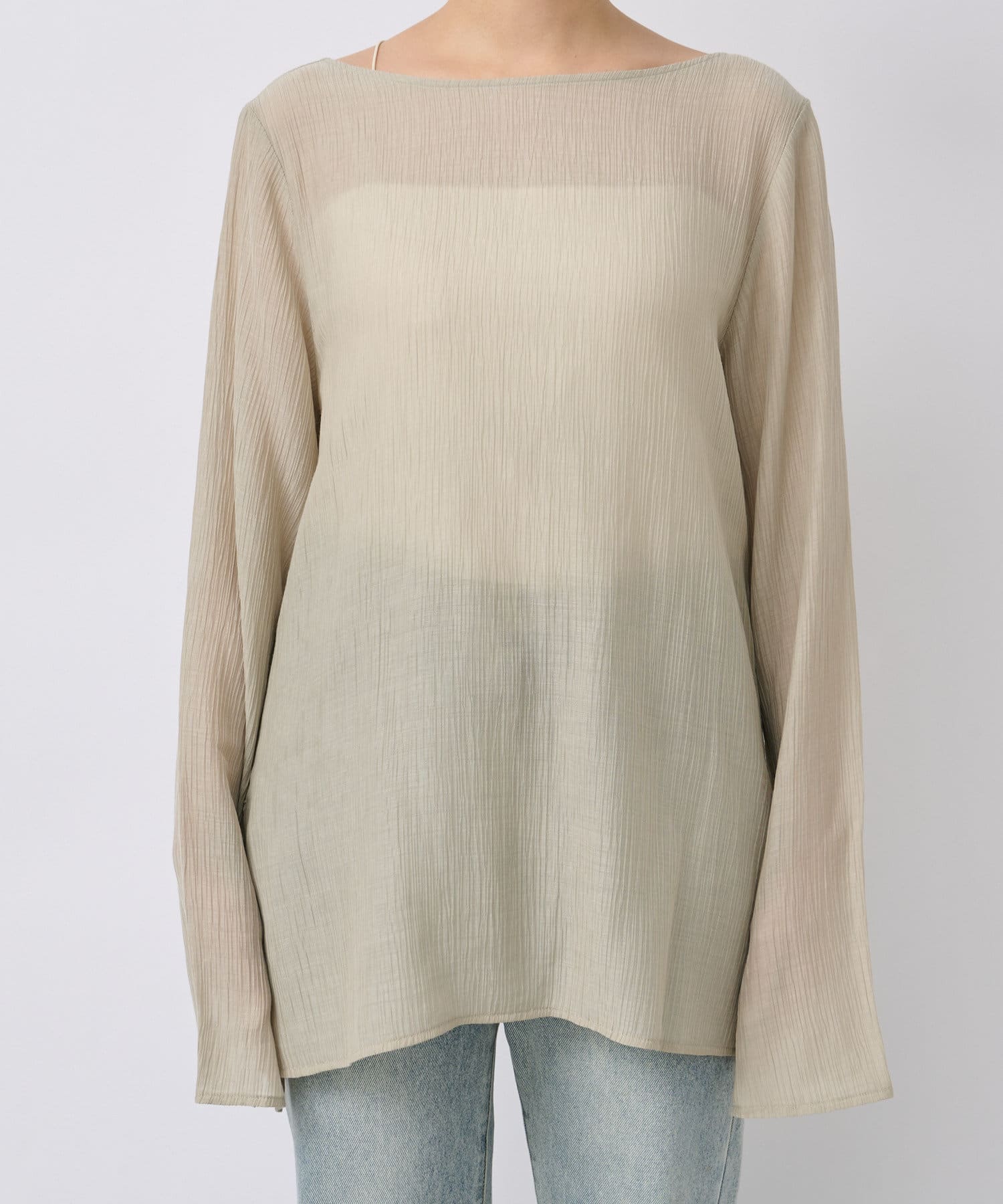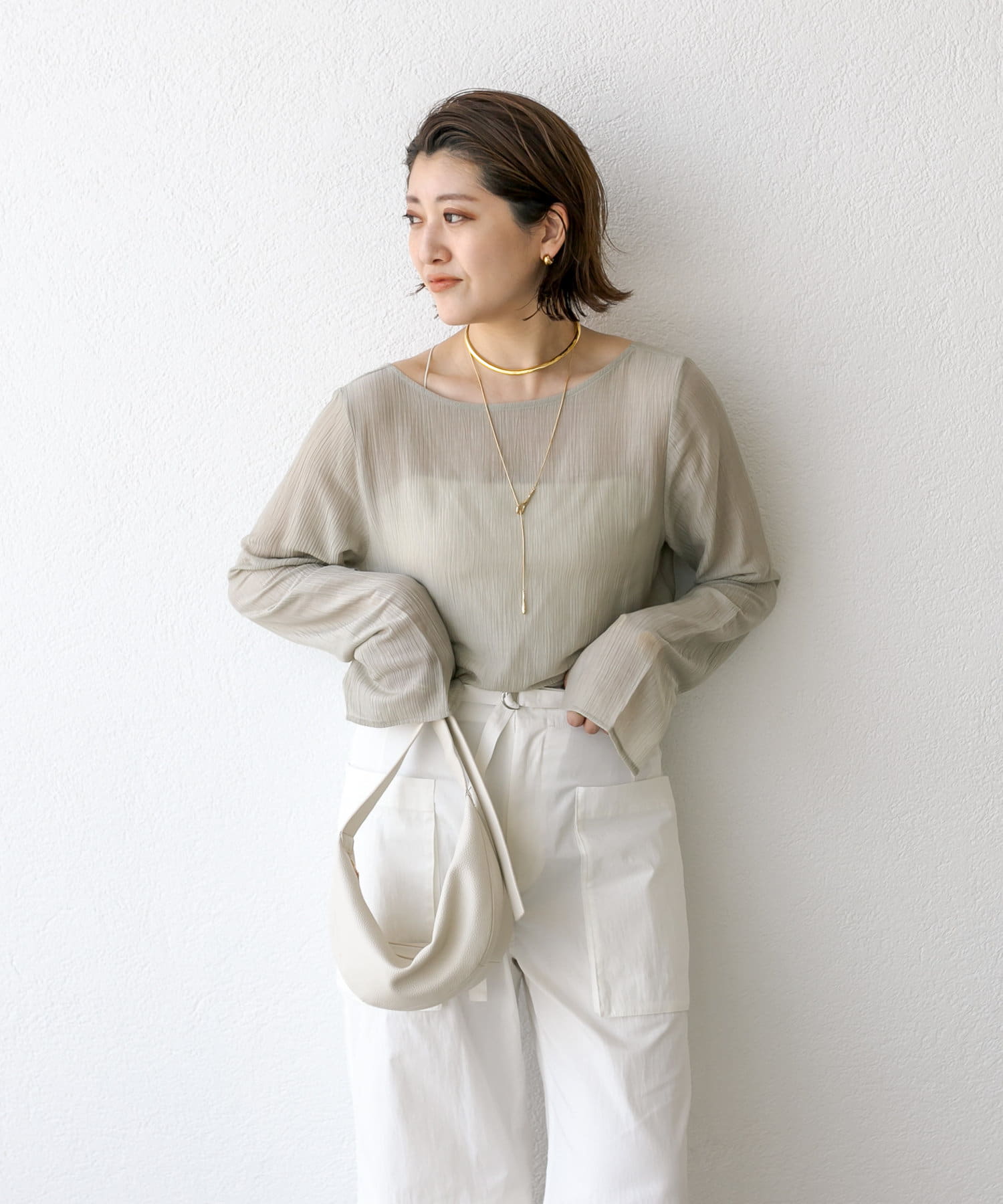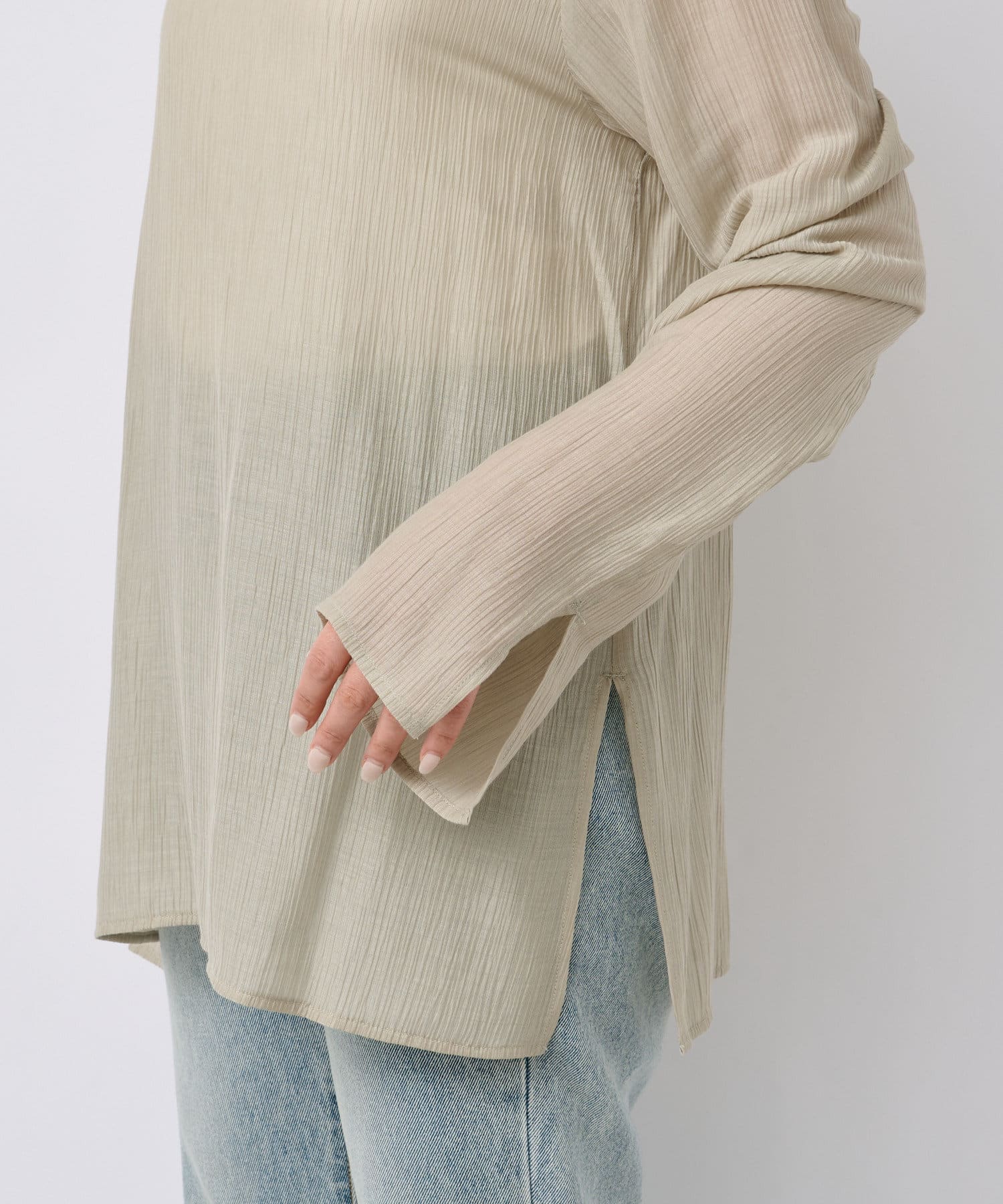 さらっとした肌触り抜群の楊柳素材を使用。シワが目立ちにくい素材感のためコンパクトにまとめてご旅行にもおすすめの一枚です。