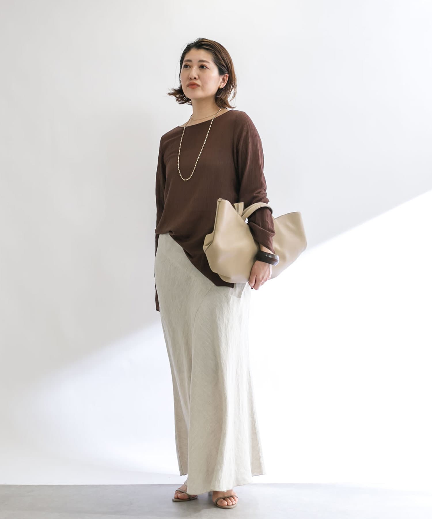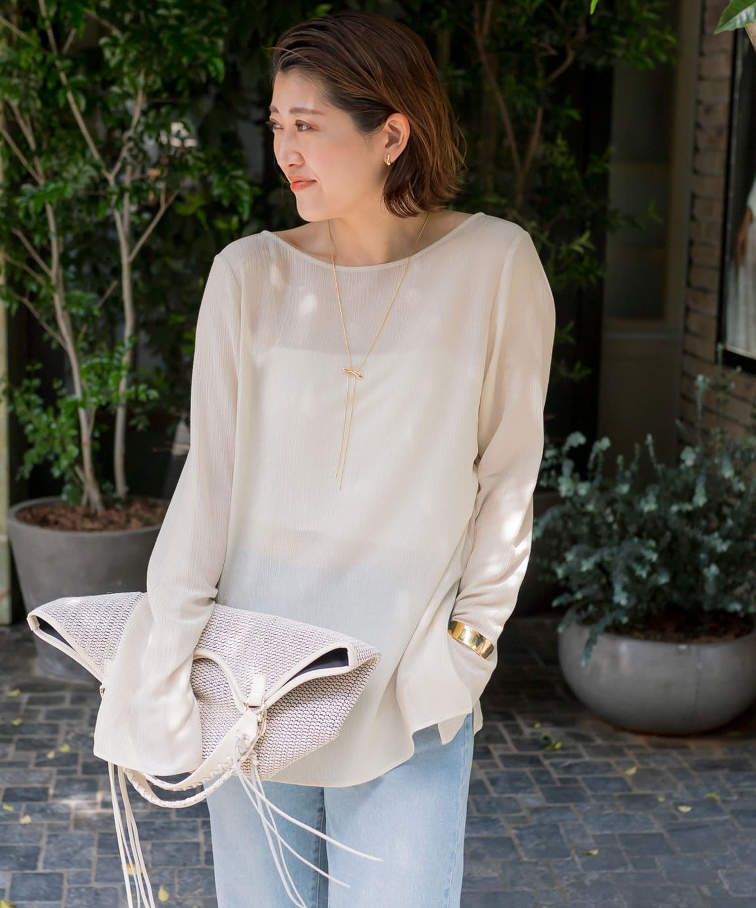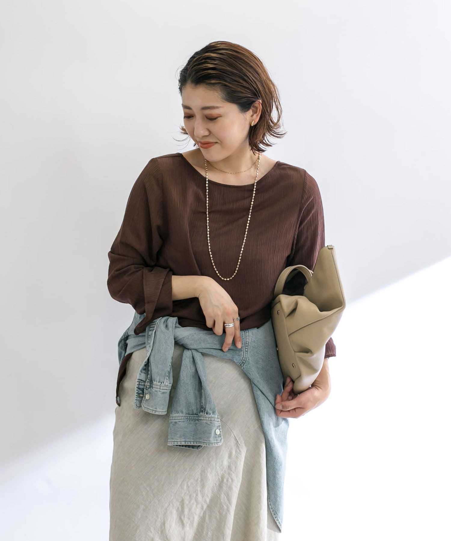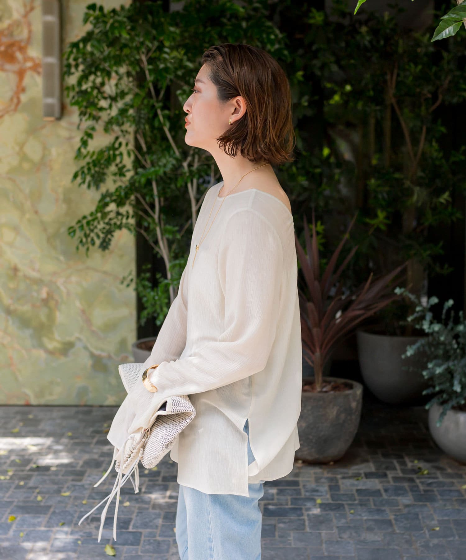さらっとした肌触り抜群の楊柳素材を使用。シワが目立ちにくい素材感のためコンパクトにまとめてご旅行にもおすすめの一枚です。