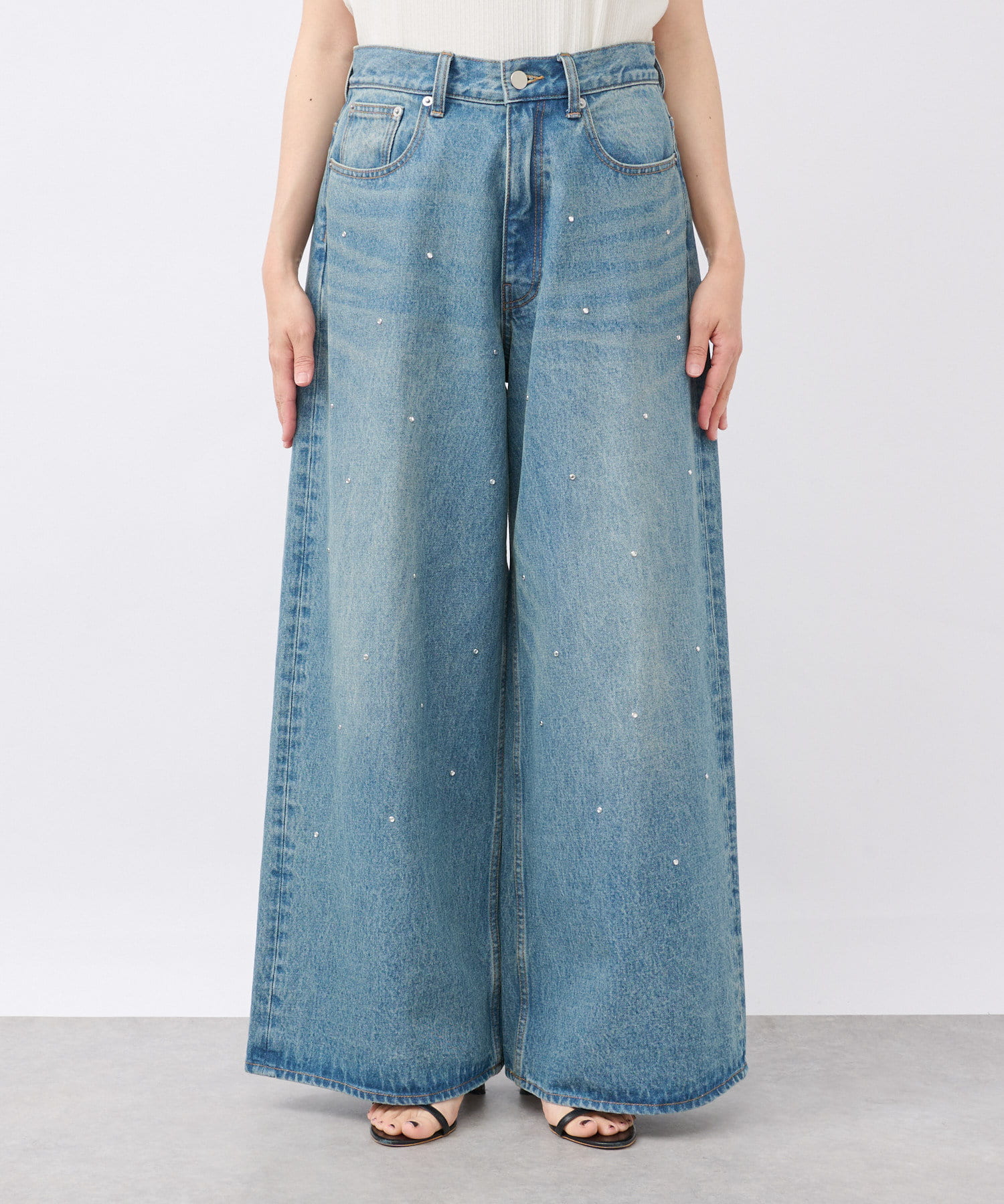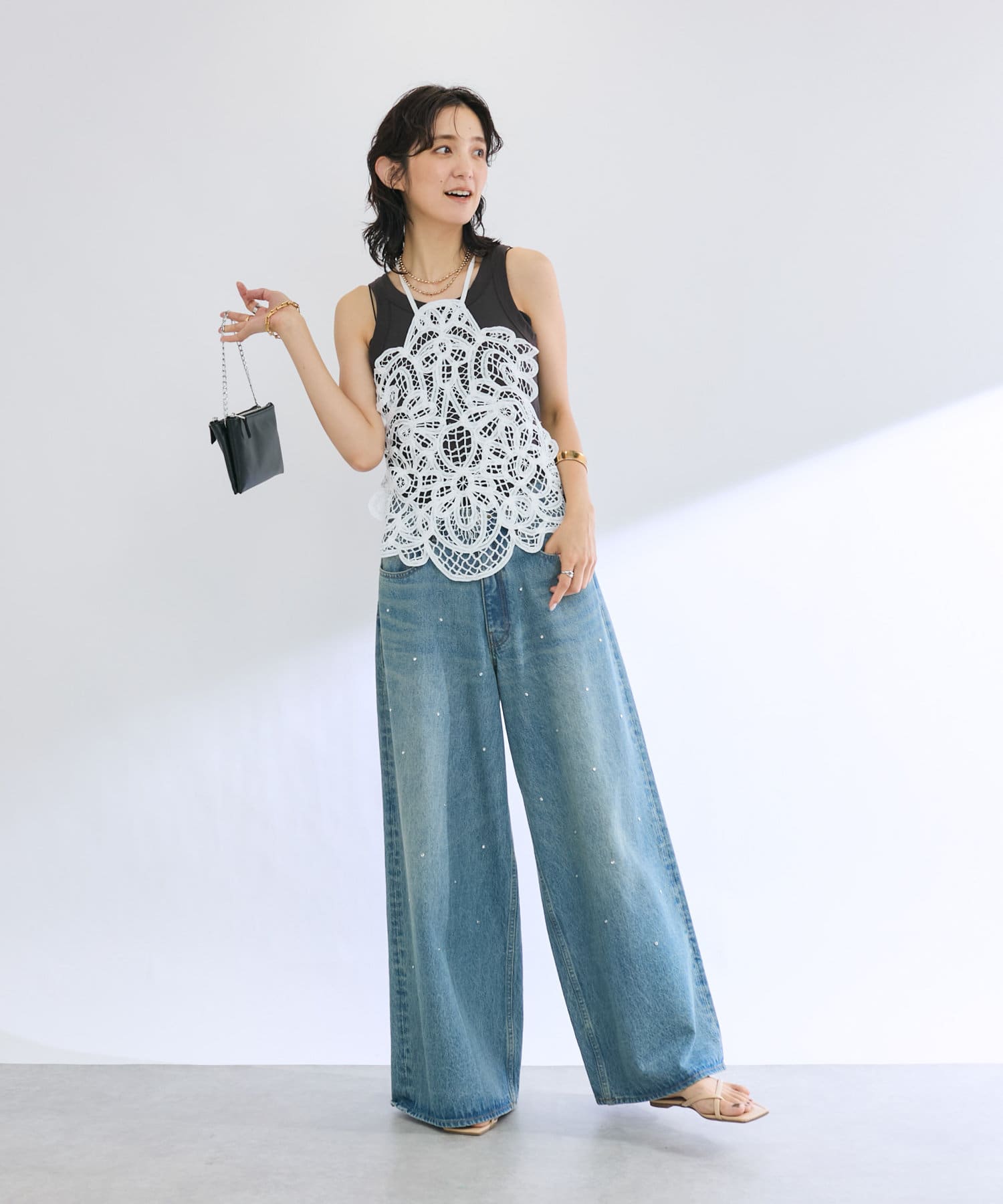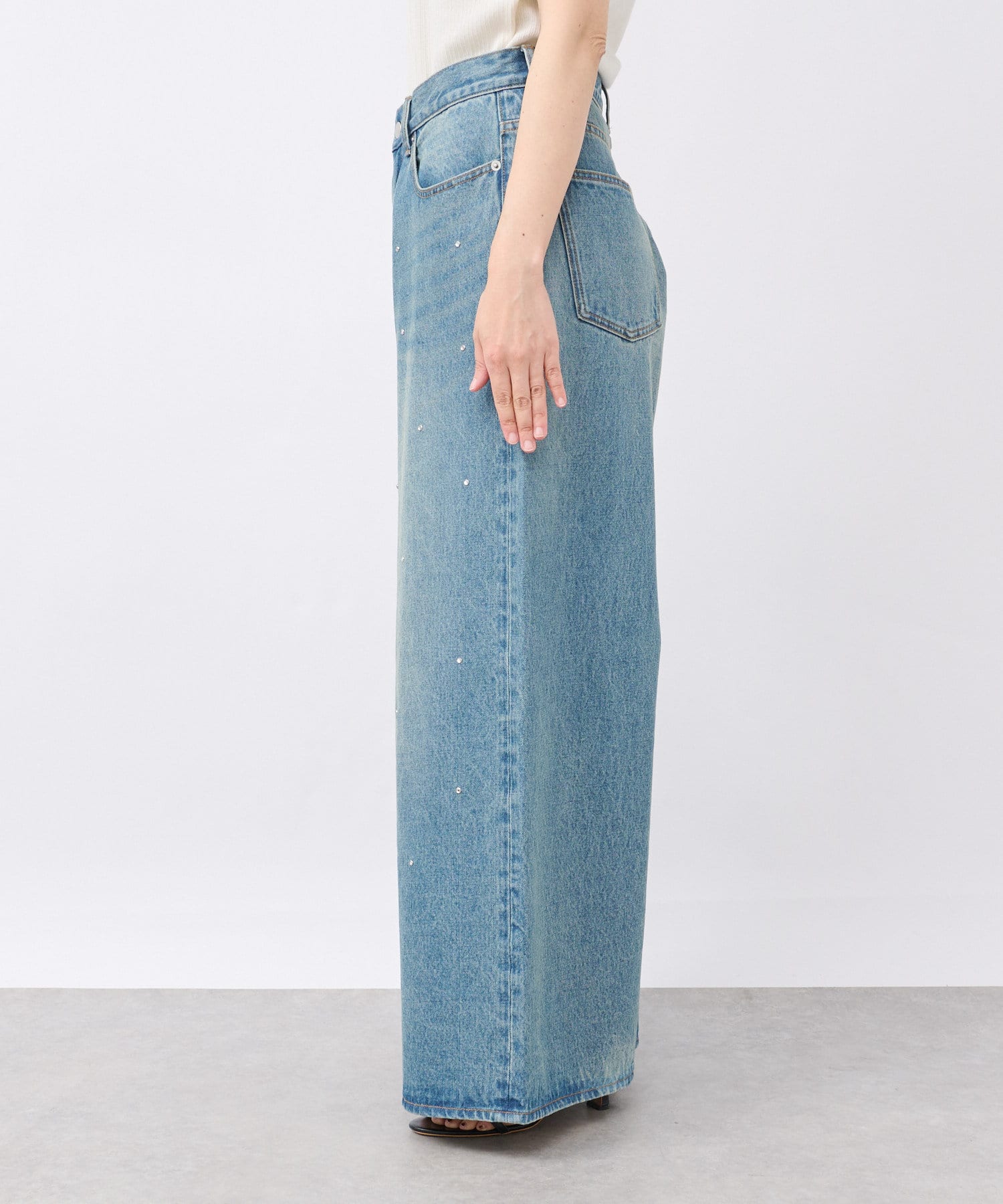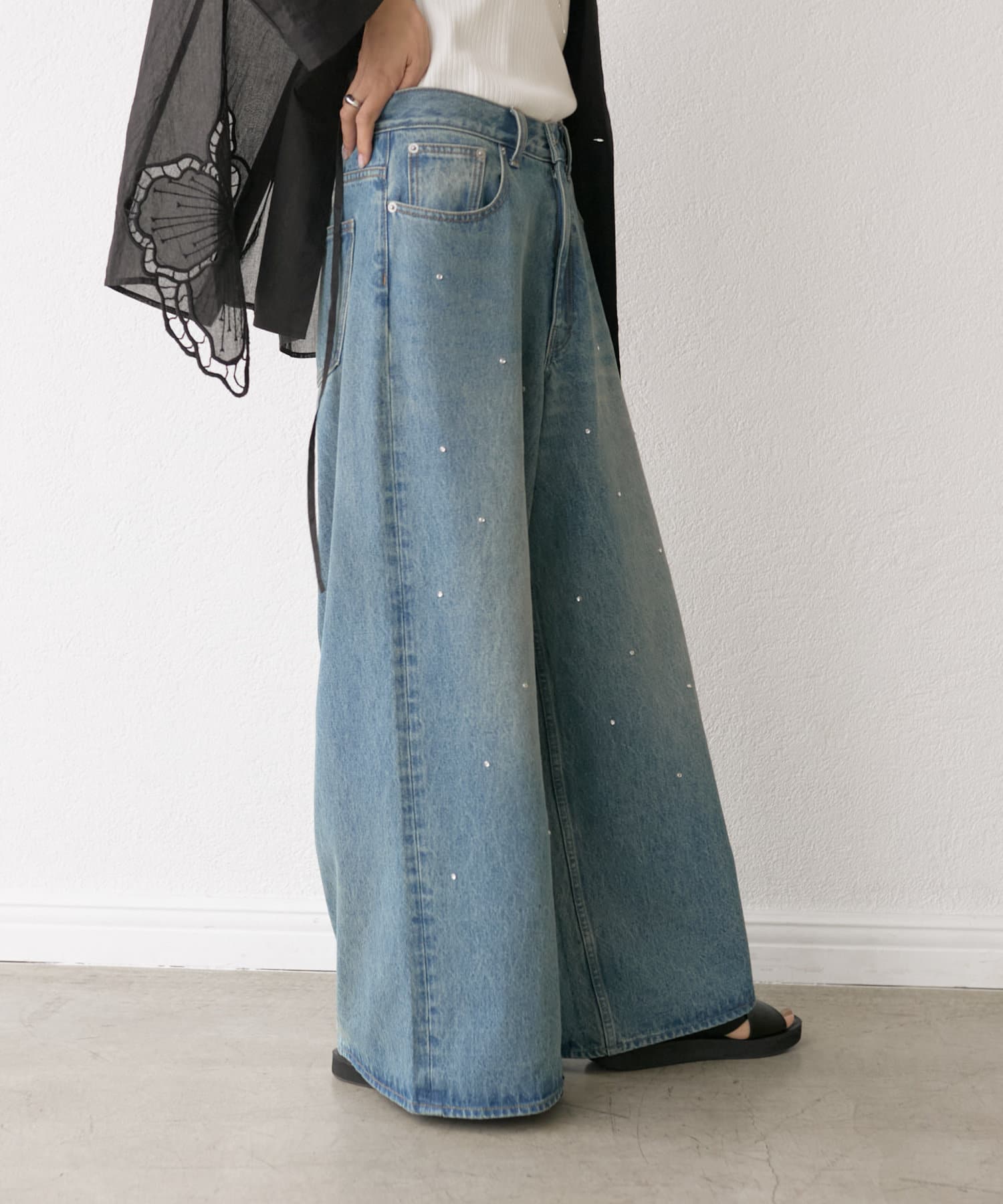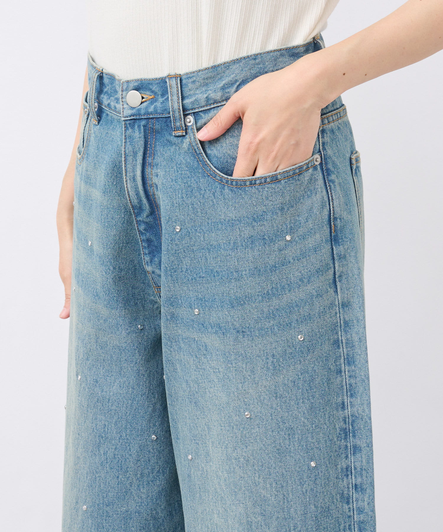 • さりげないビジュー使いで、大人も履きやすいワイドデニム