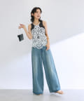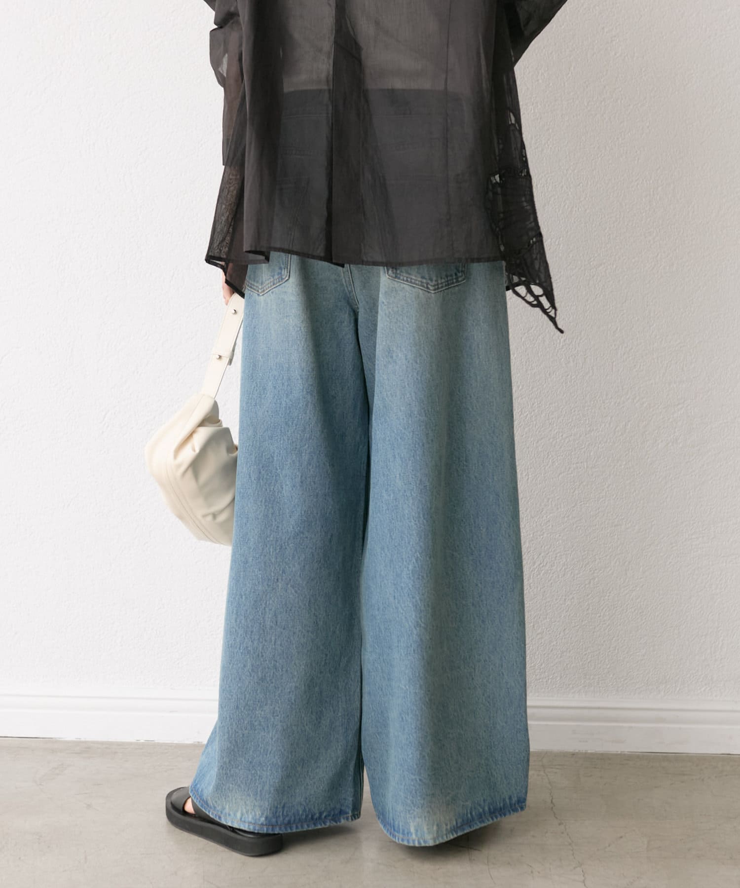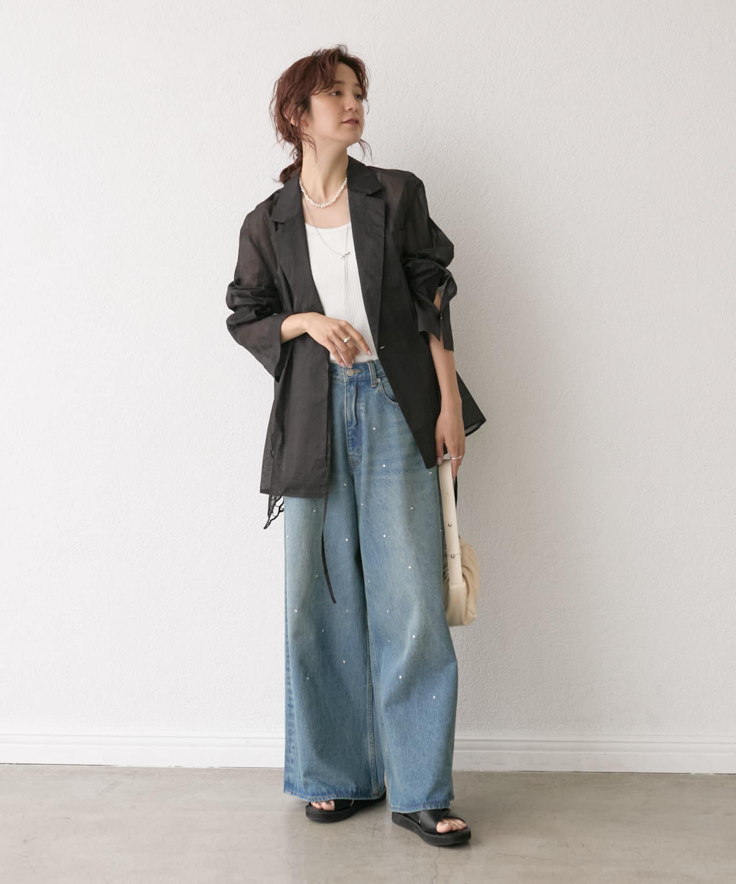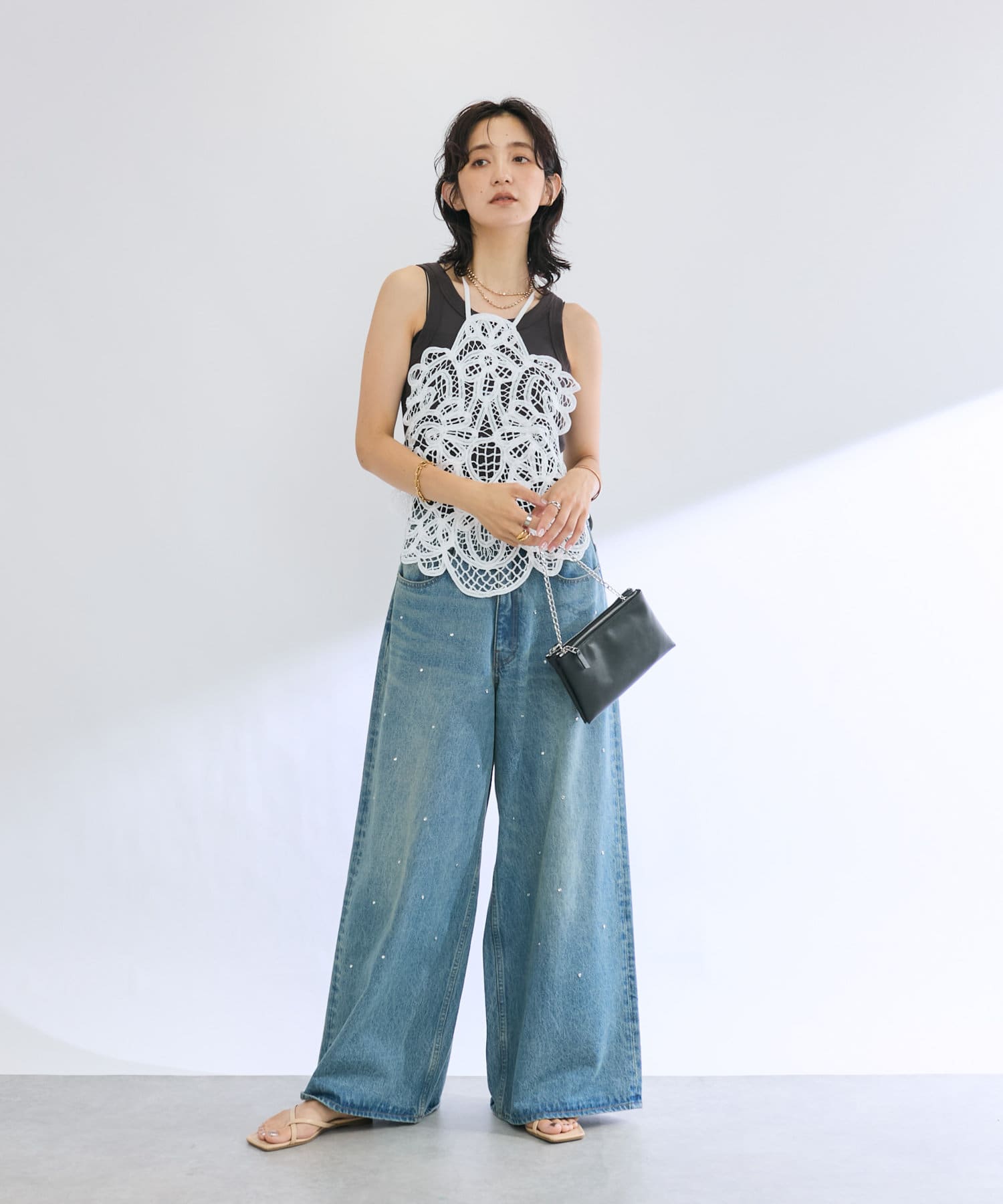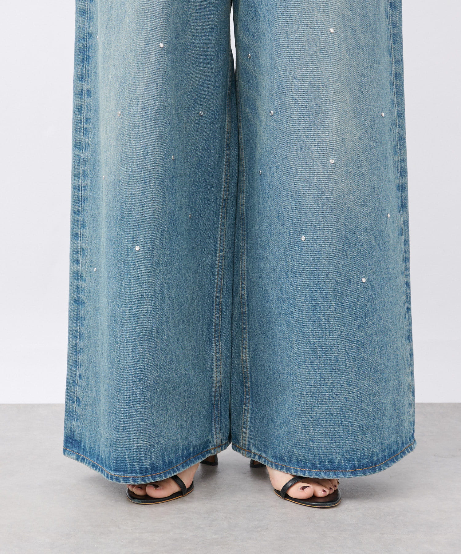 • さりげないビジュー使いで、大人も履きやすいワイドデニム