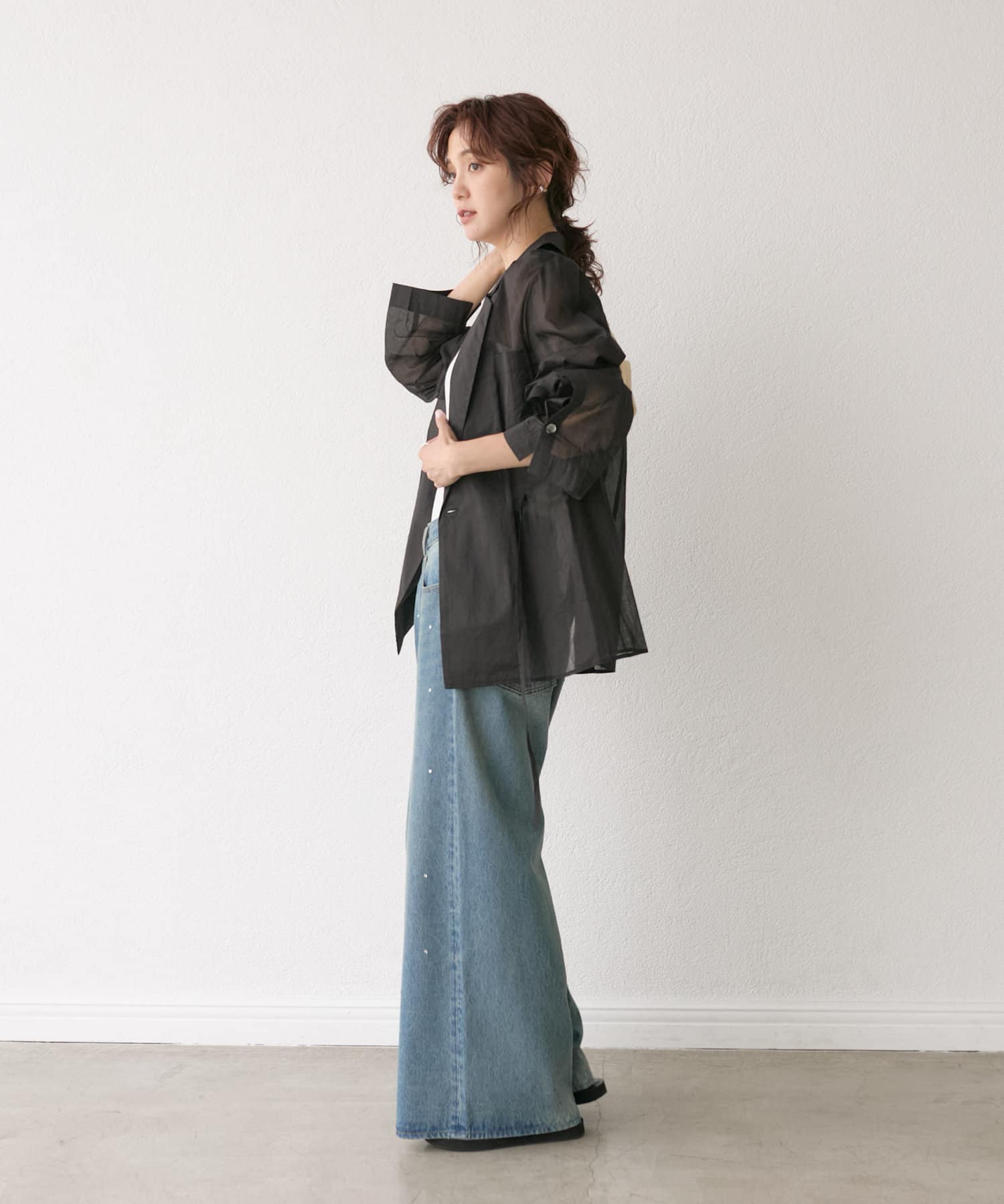 • ワイドなシルエットながらもヒップはすっきり見えるシルエット