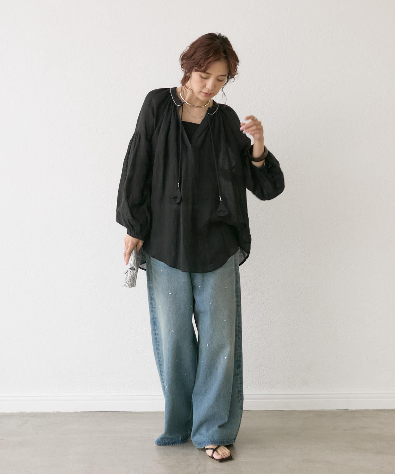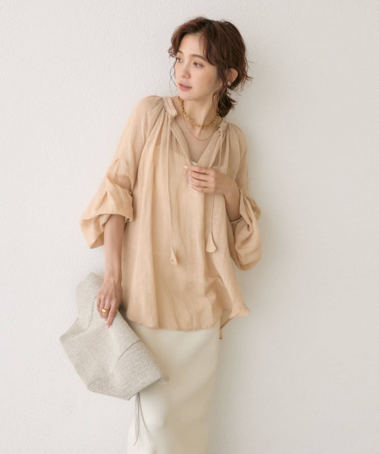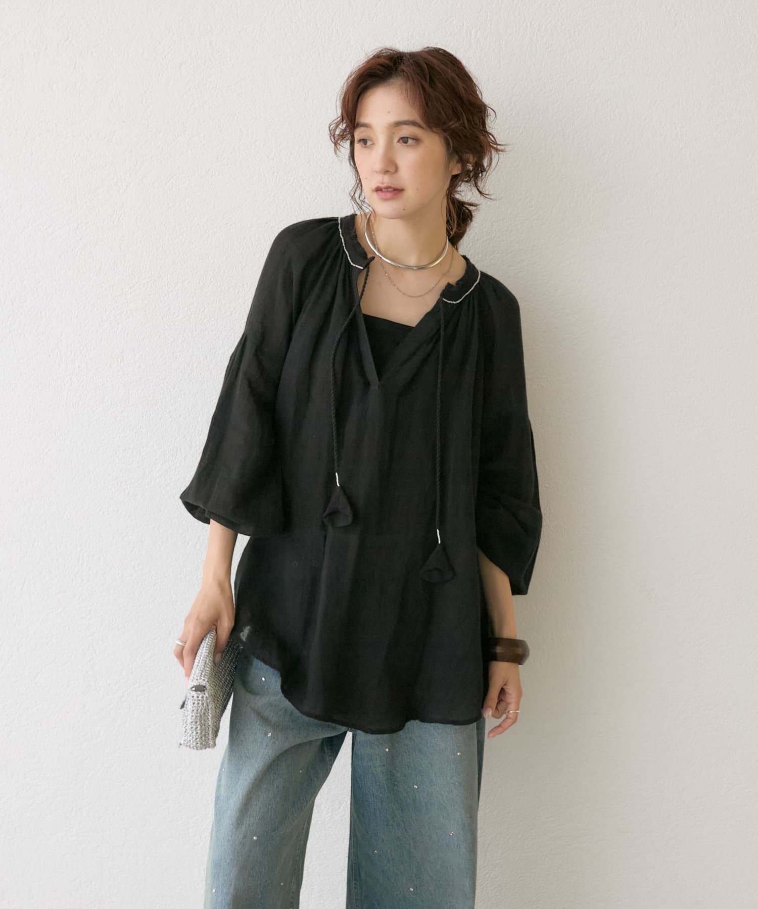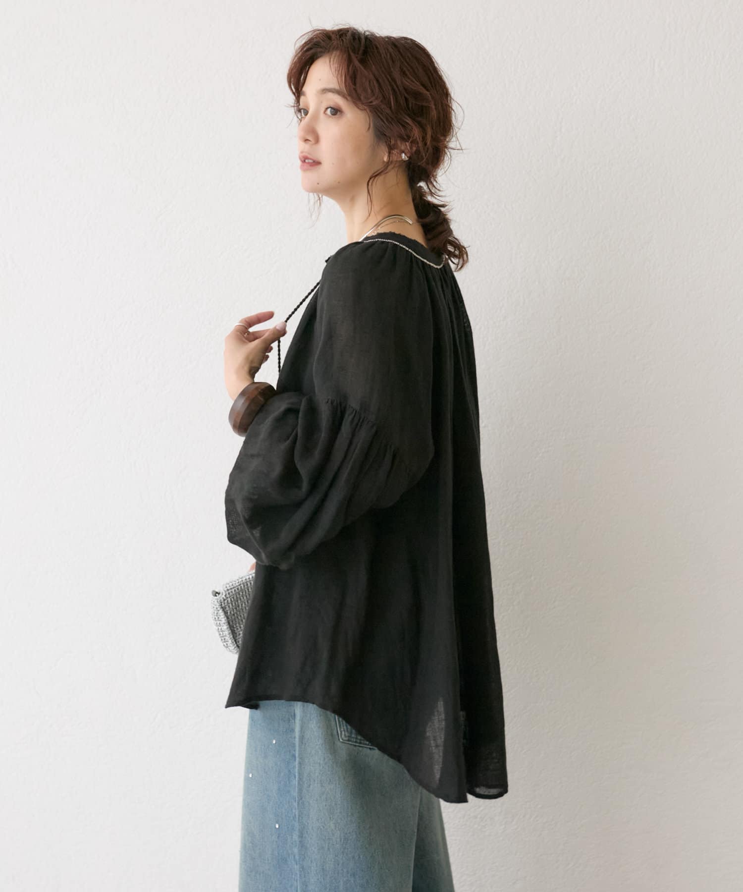 • ざっくりと粗野な風合いが印象的なコットンリネン素材を使用したブラウス
