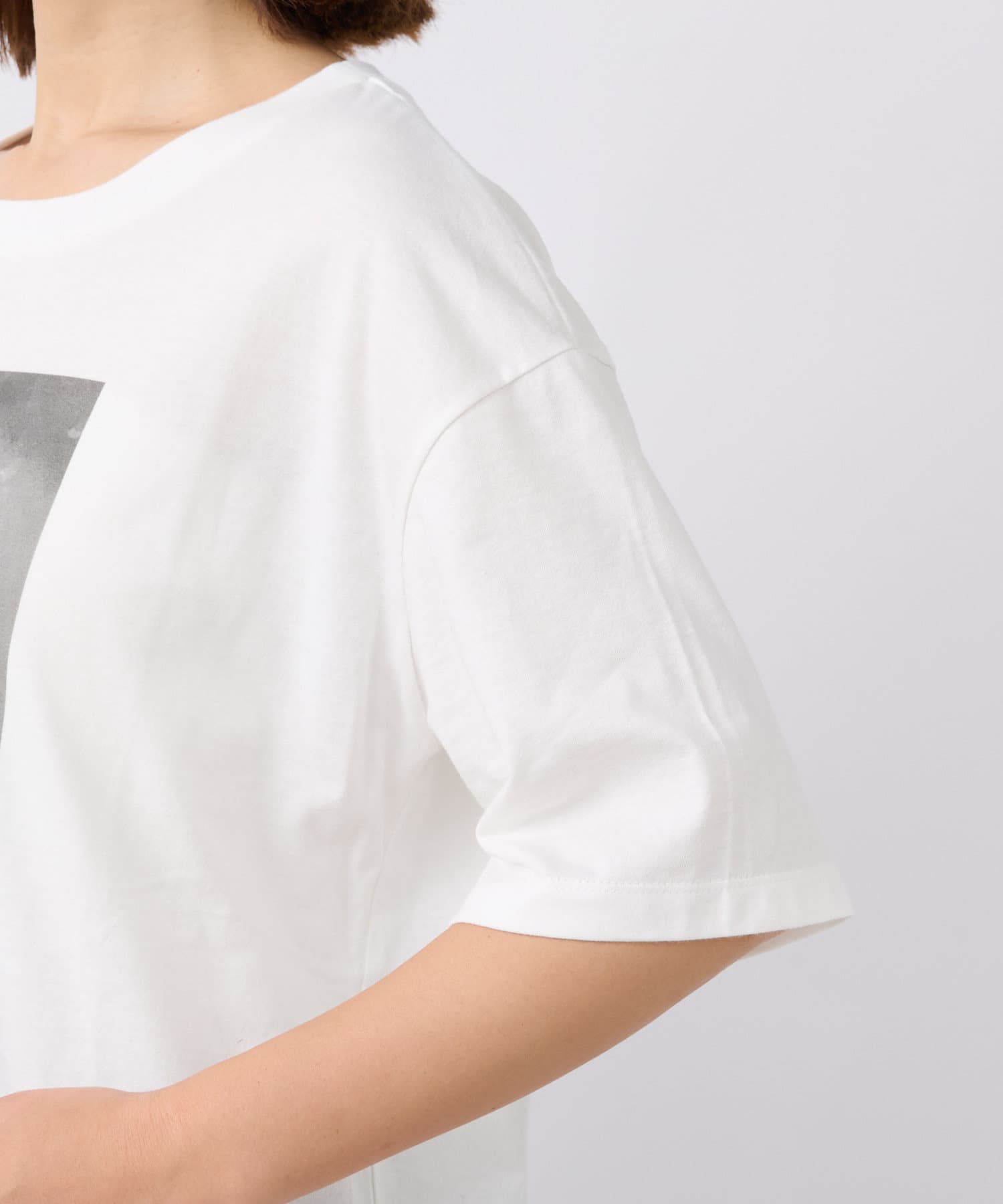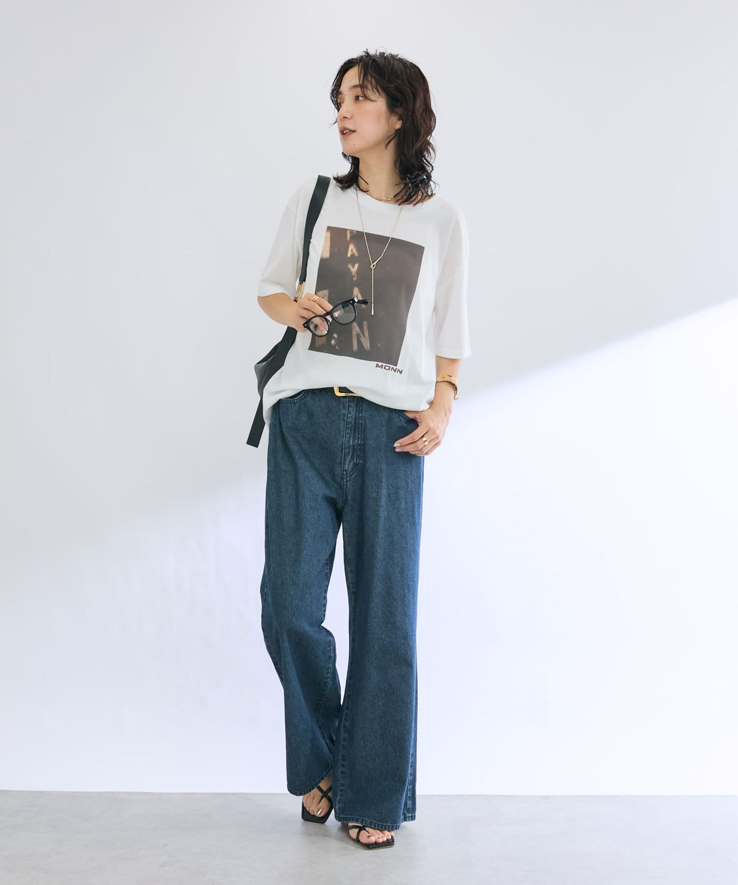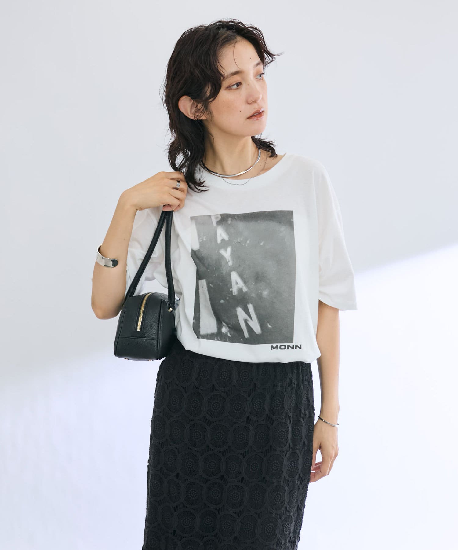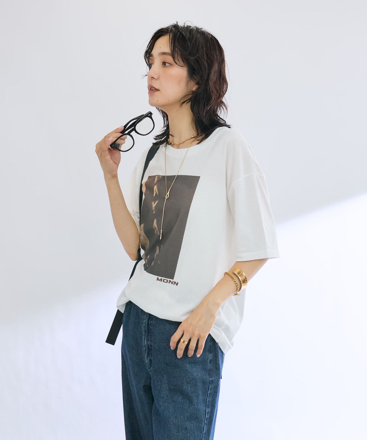 コーディネートの邪魔をしないシンプルなフォトTシャツ。