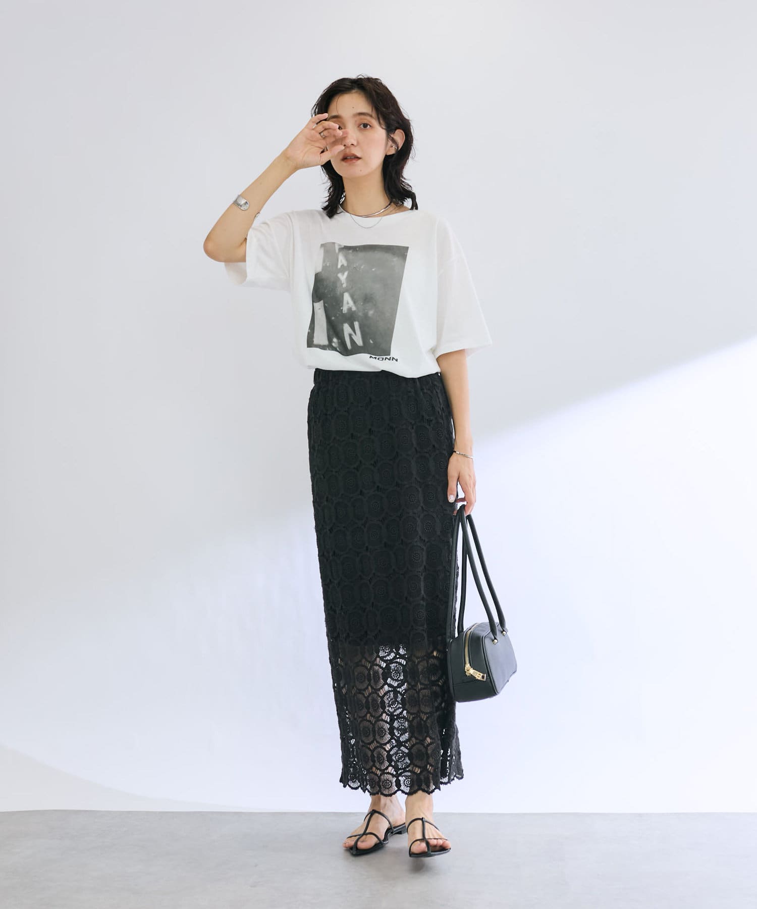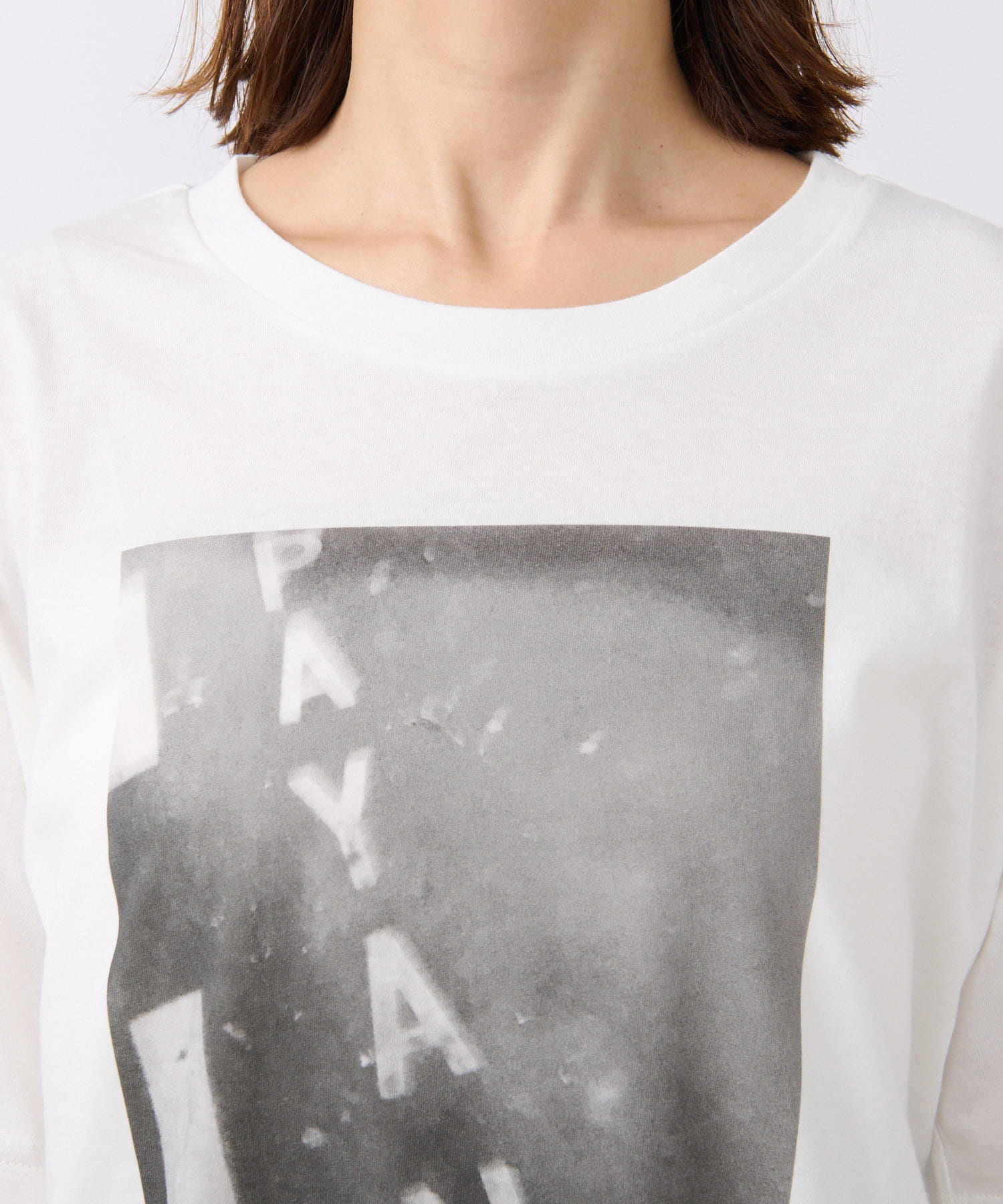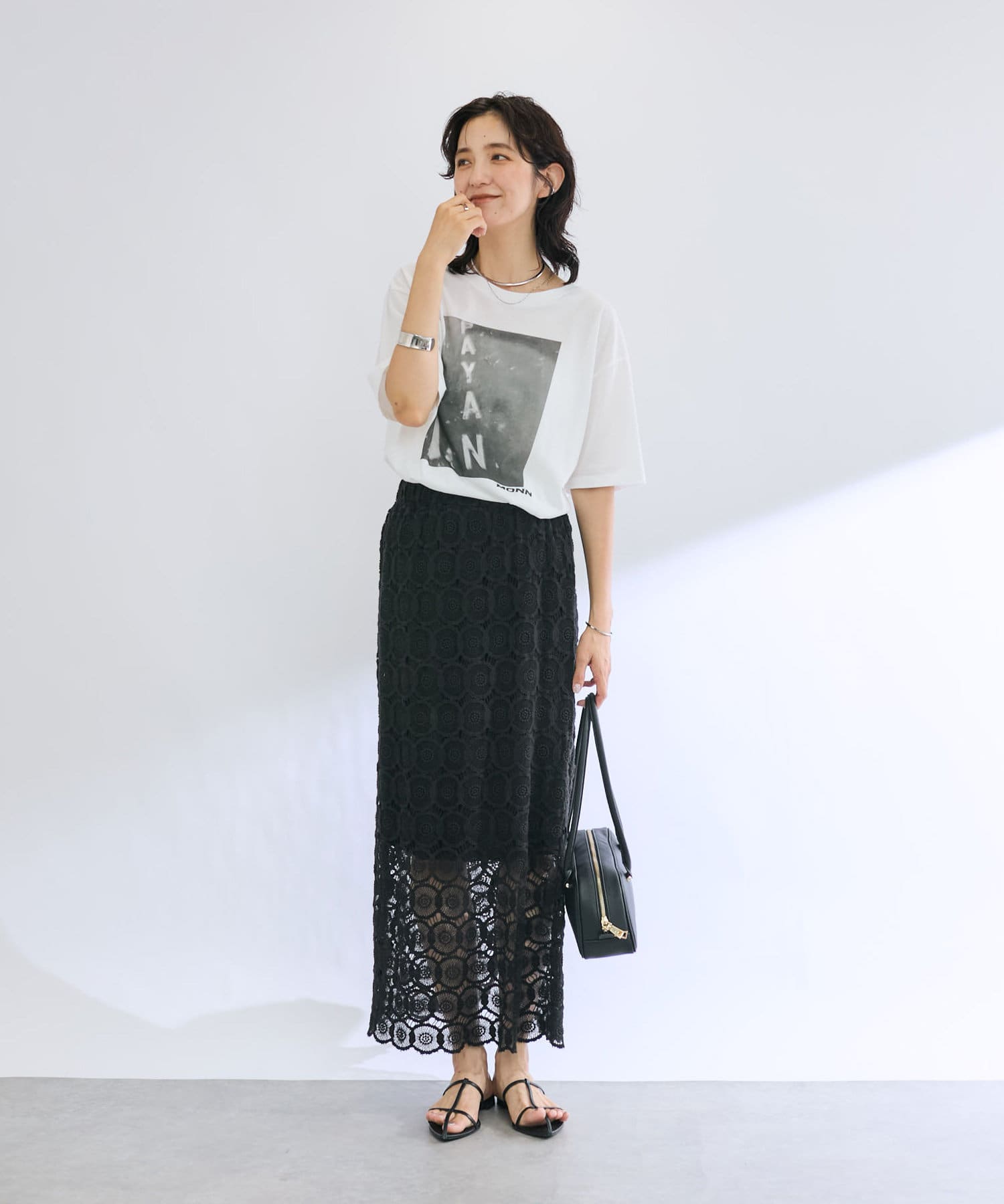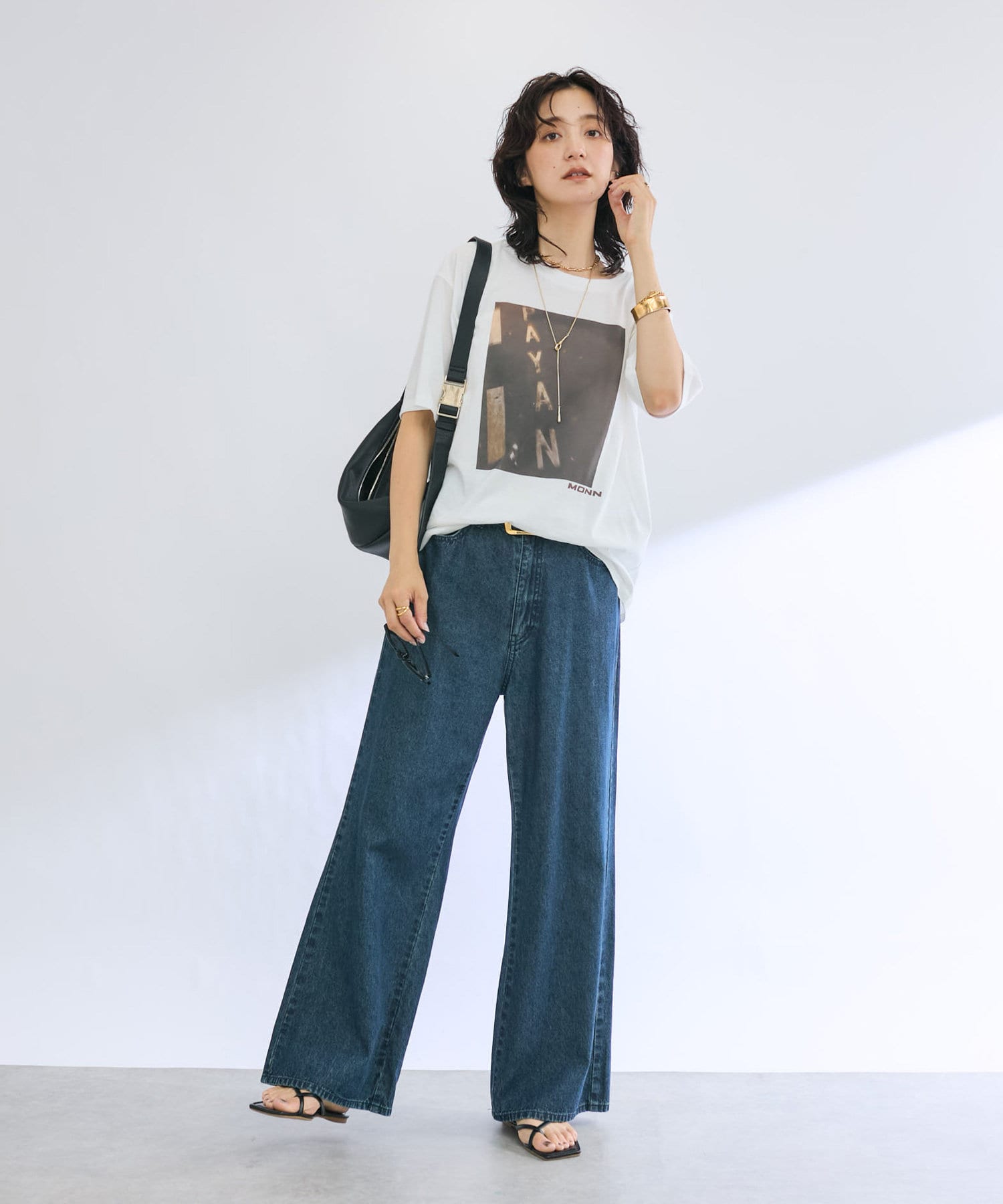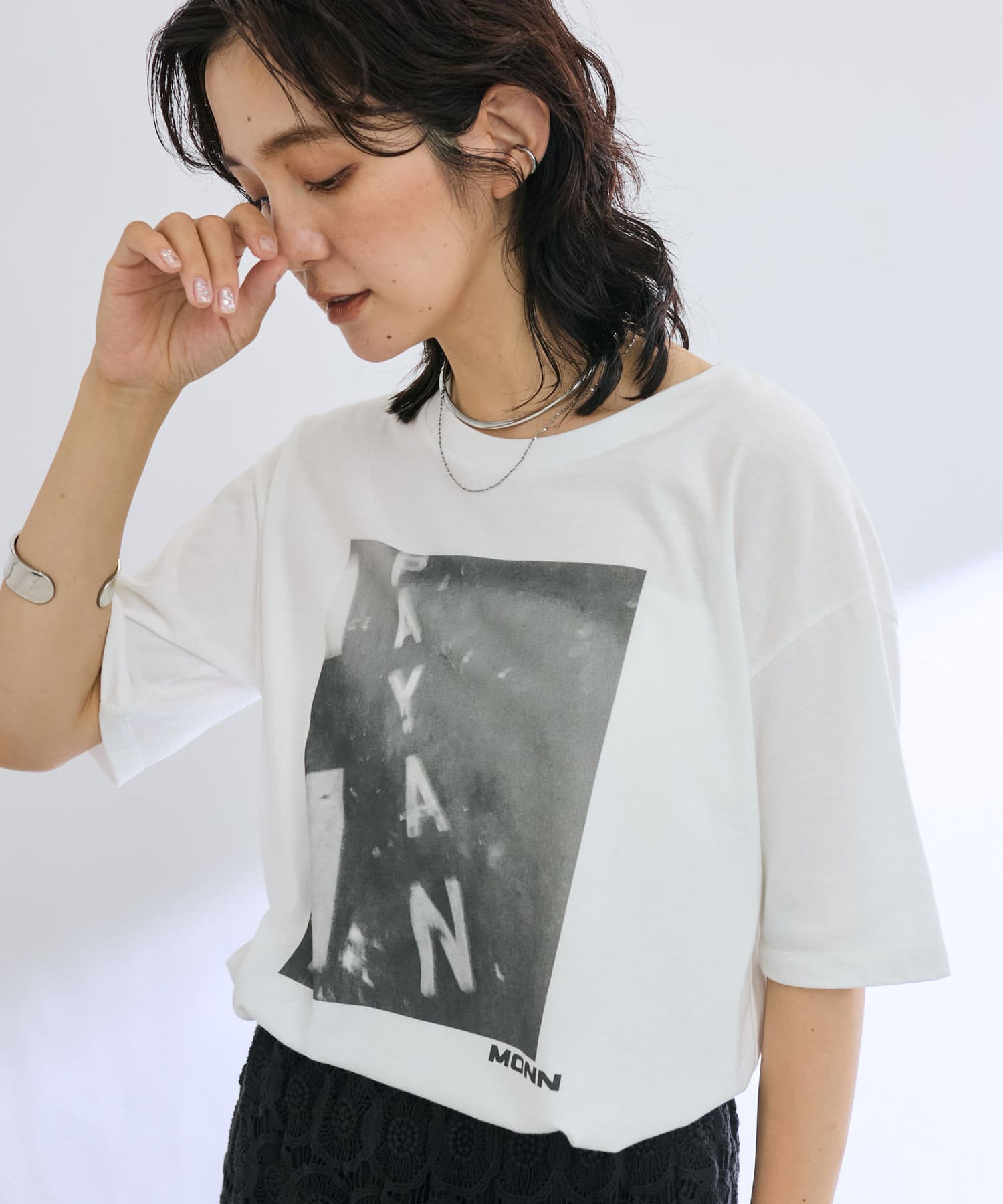 コーディネートの邪魔をしないシンプルなフォトTシャツ。