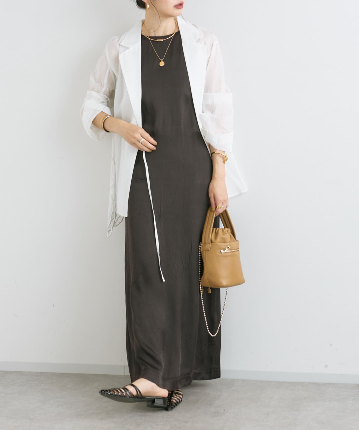 他に見ないモードな雰囲気も魅力。前あきのリボン使いや、袖のスリットもポイントです。