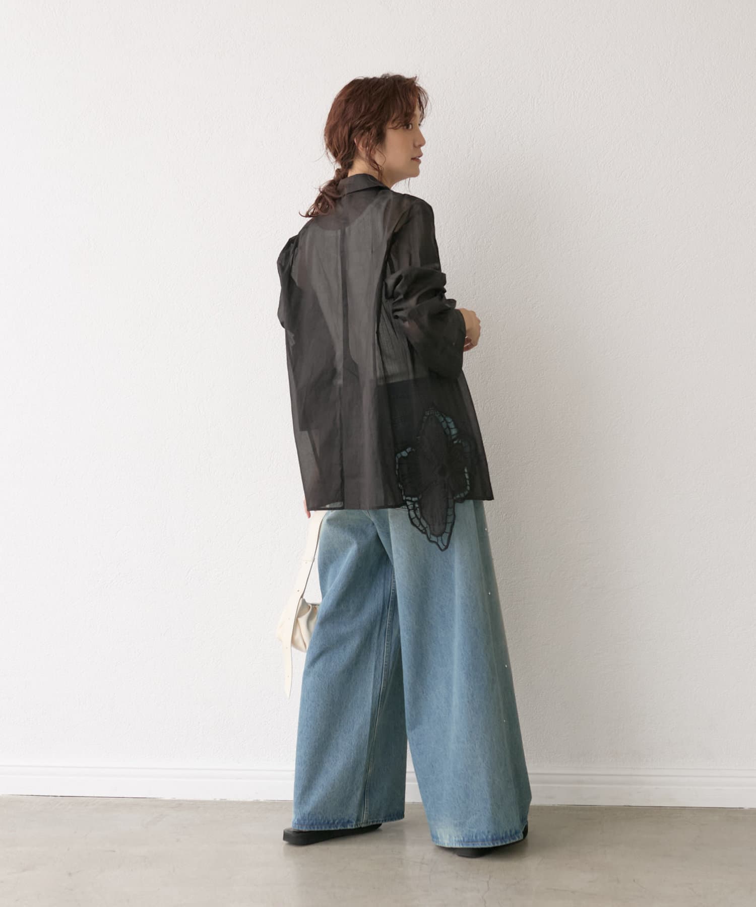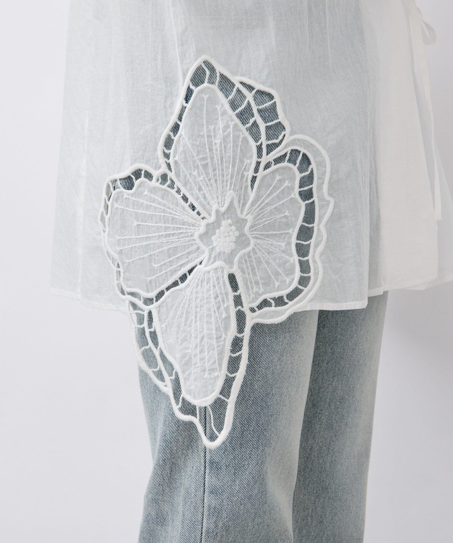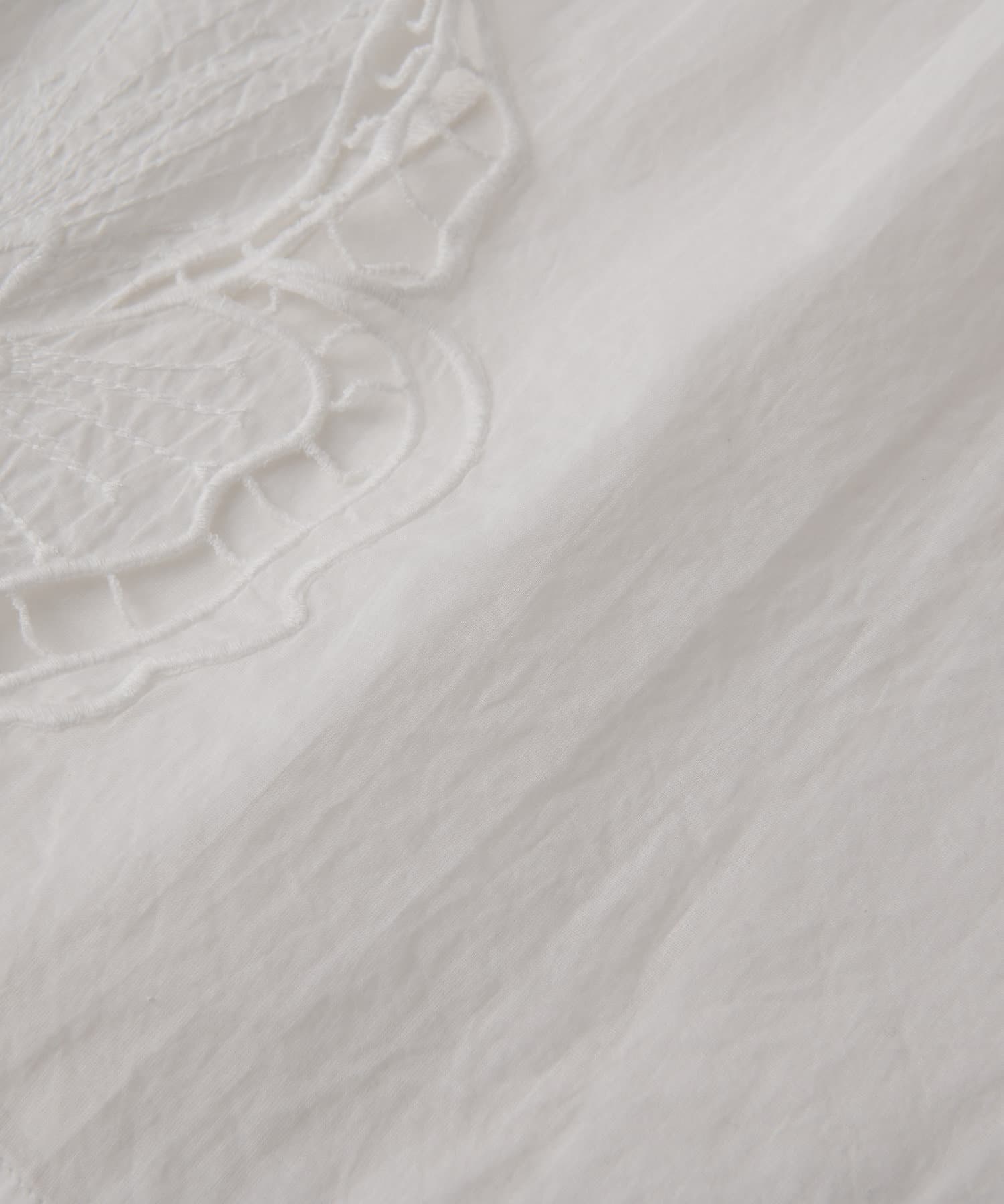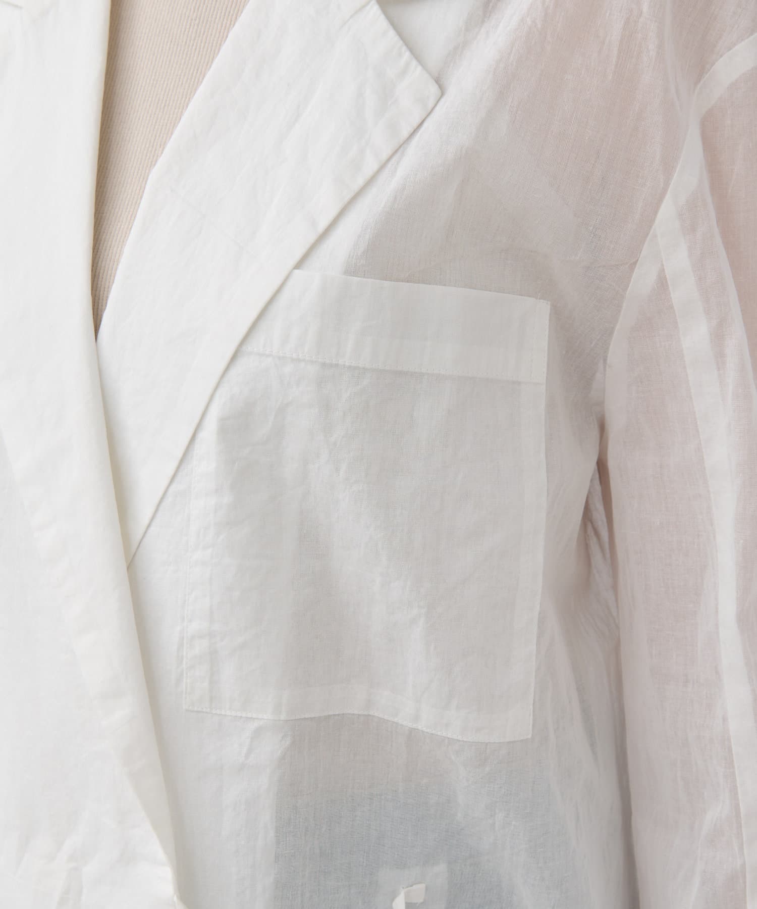 ペーパーライクな張り感のあるコットンオーガンジー素材を使用し、左裾にオリジナルのカットワーク刺繍を施したジャケットになります。