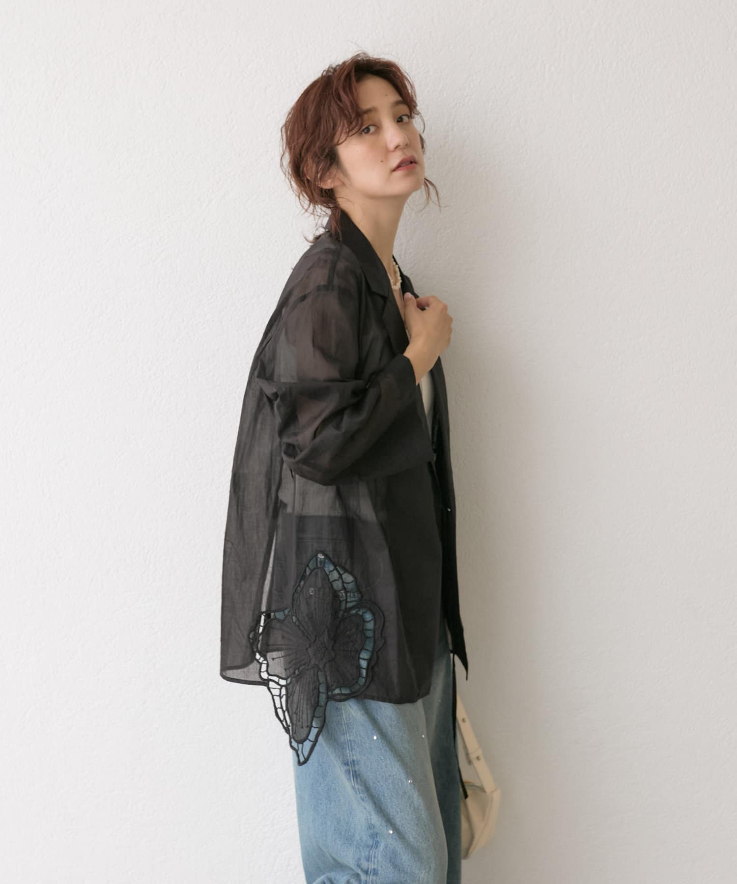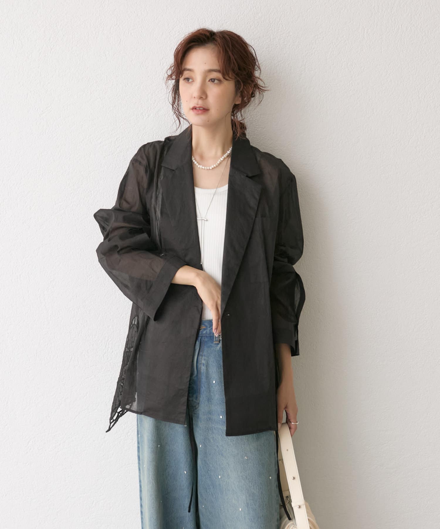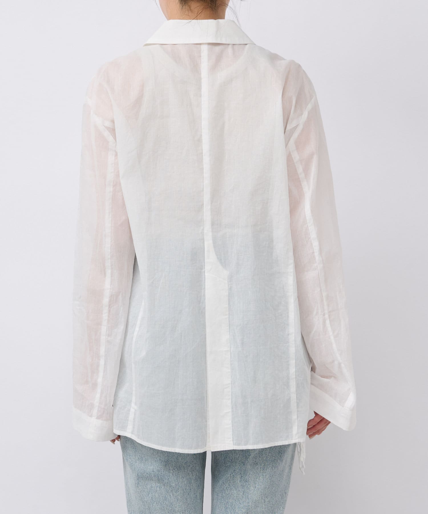 シャツ感覚で着て頂けるシアー感のある素材が魅力の一枚です。