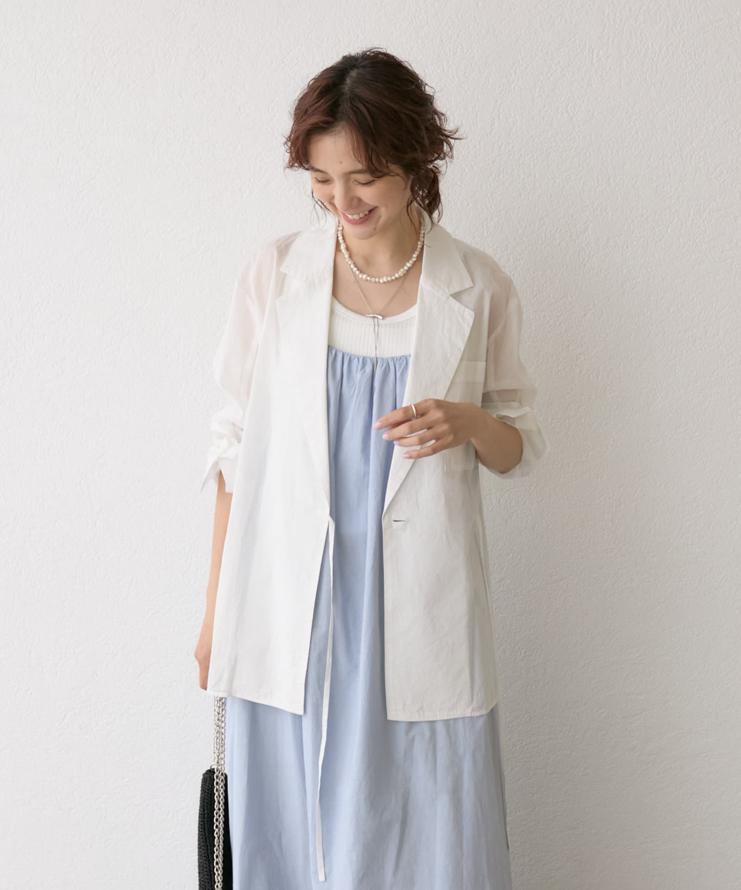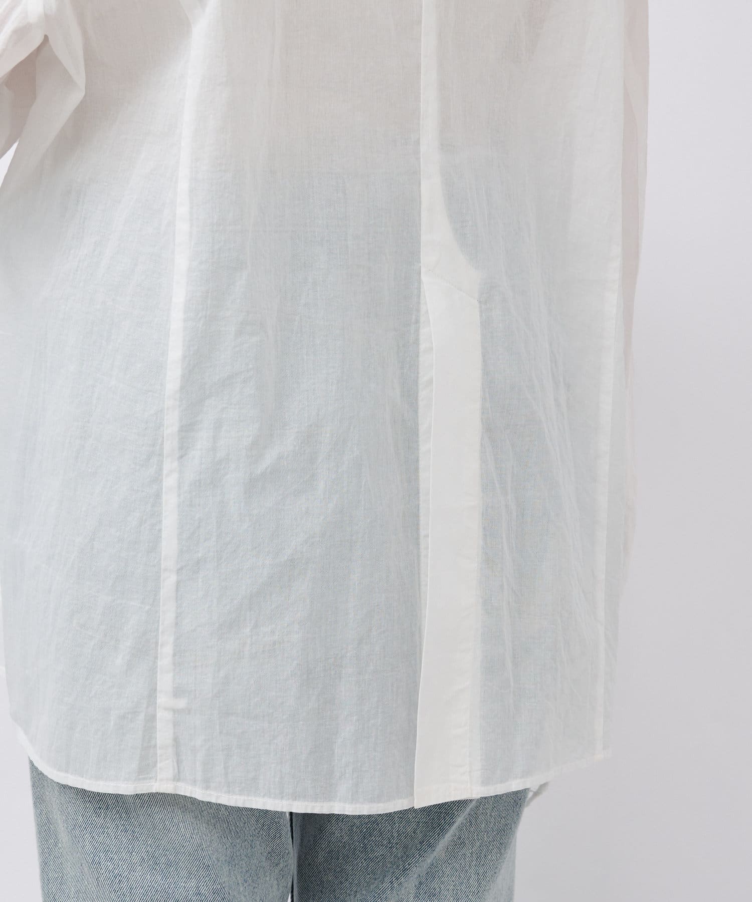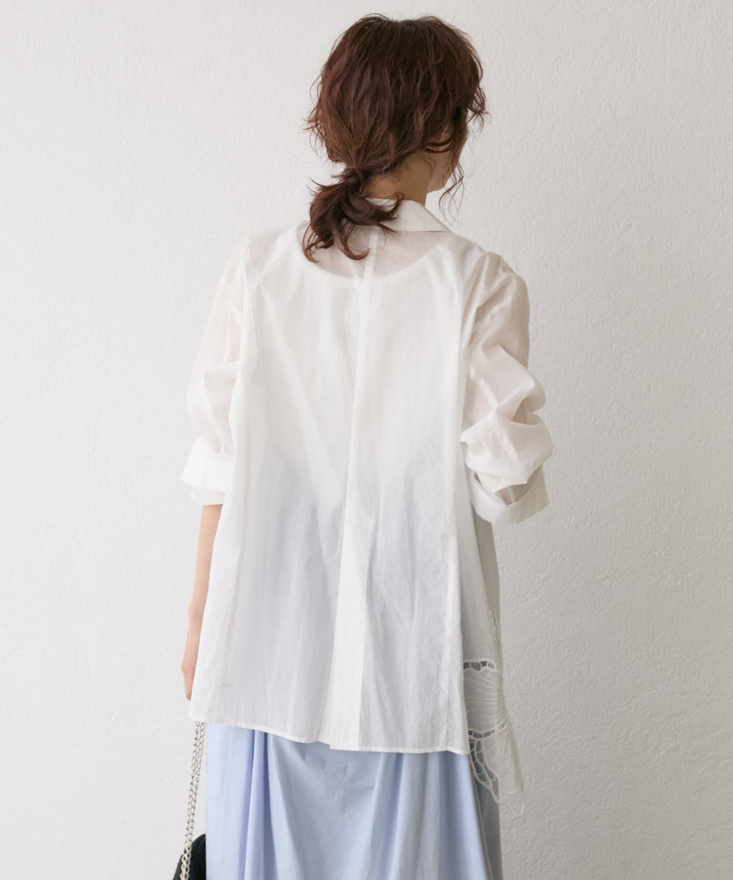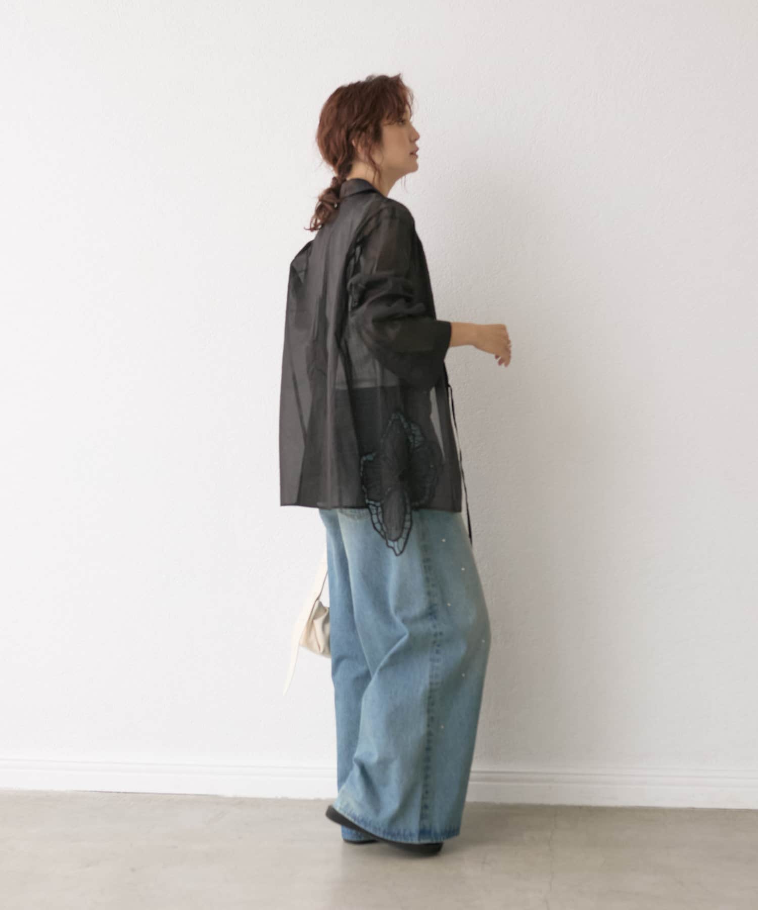 シャツ感覚で着て頂けるシアー感のある素材が魅力の一枚です。