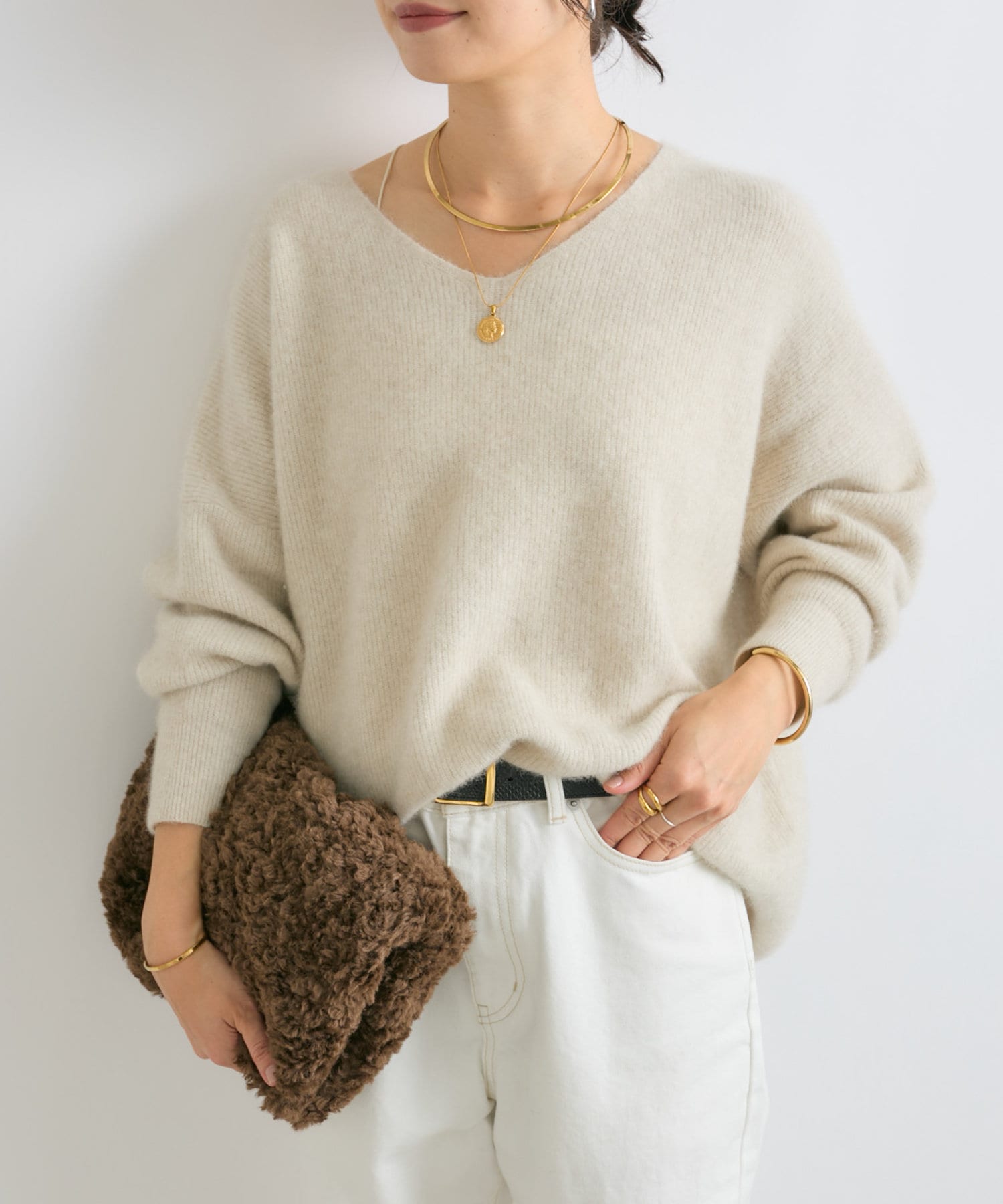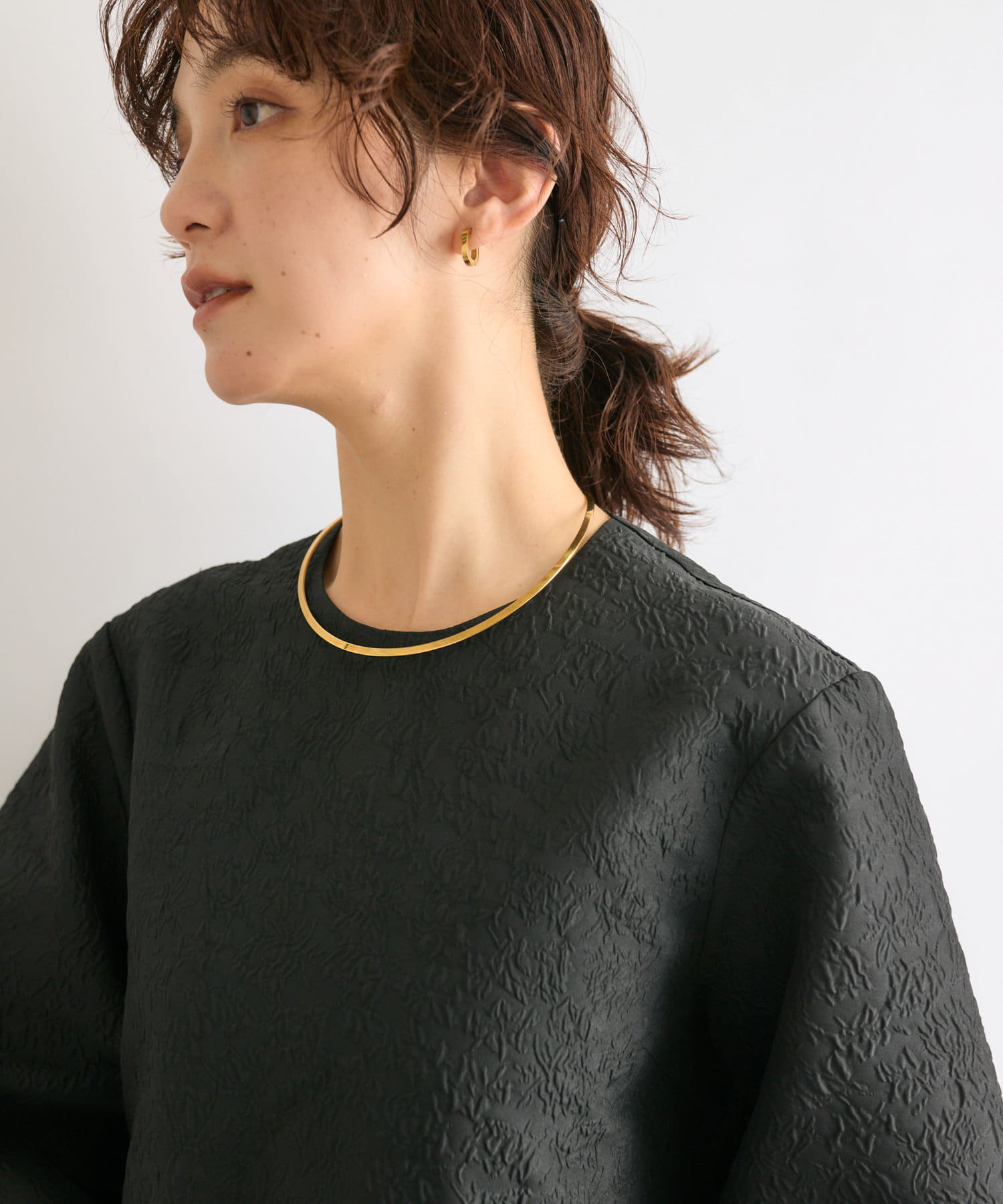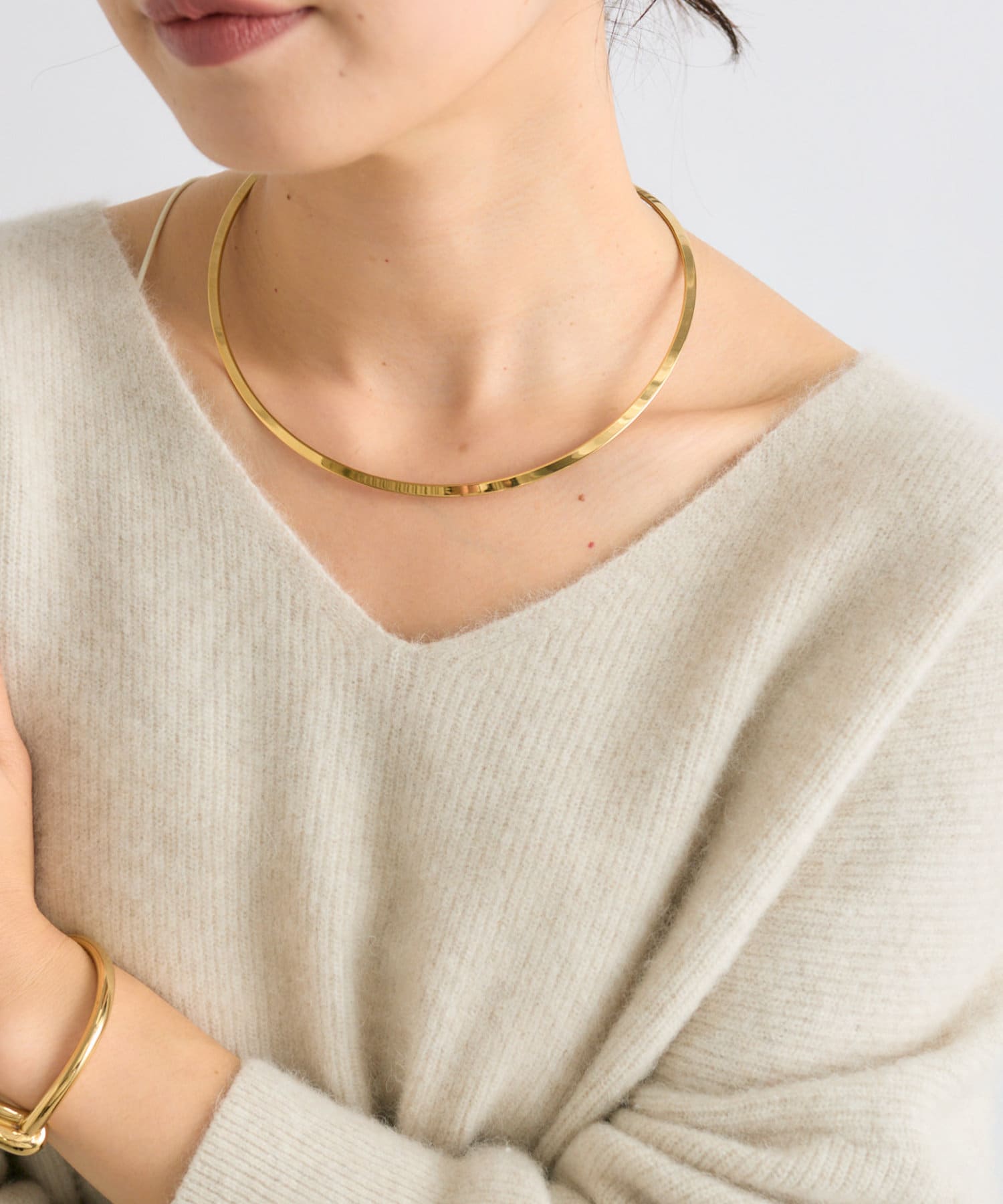 大きめの首回りでクルーネックのトップスと合わせても埋もれません。