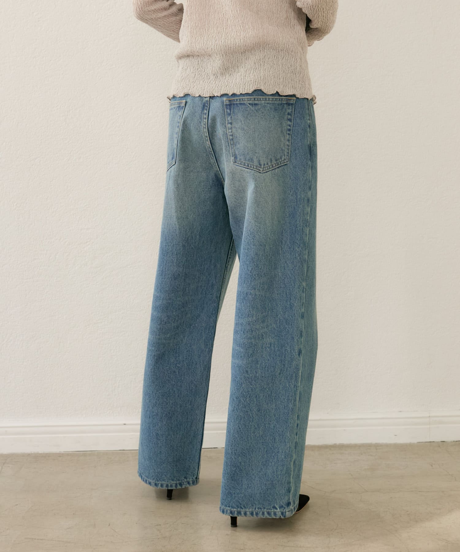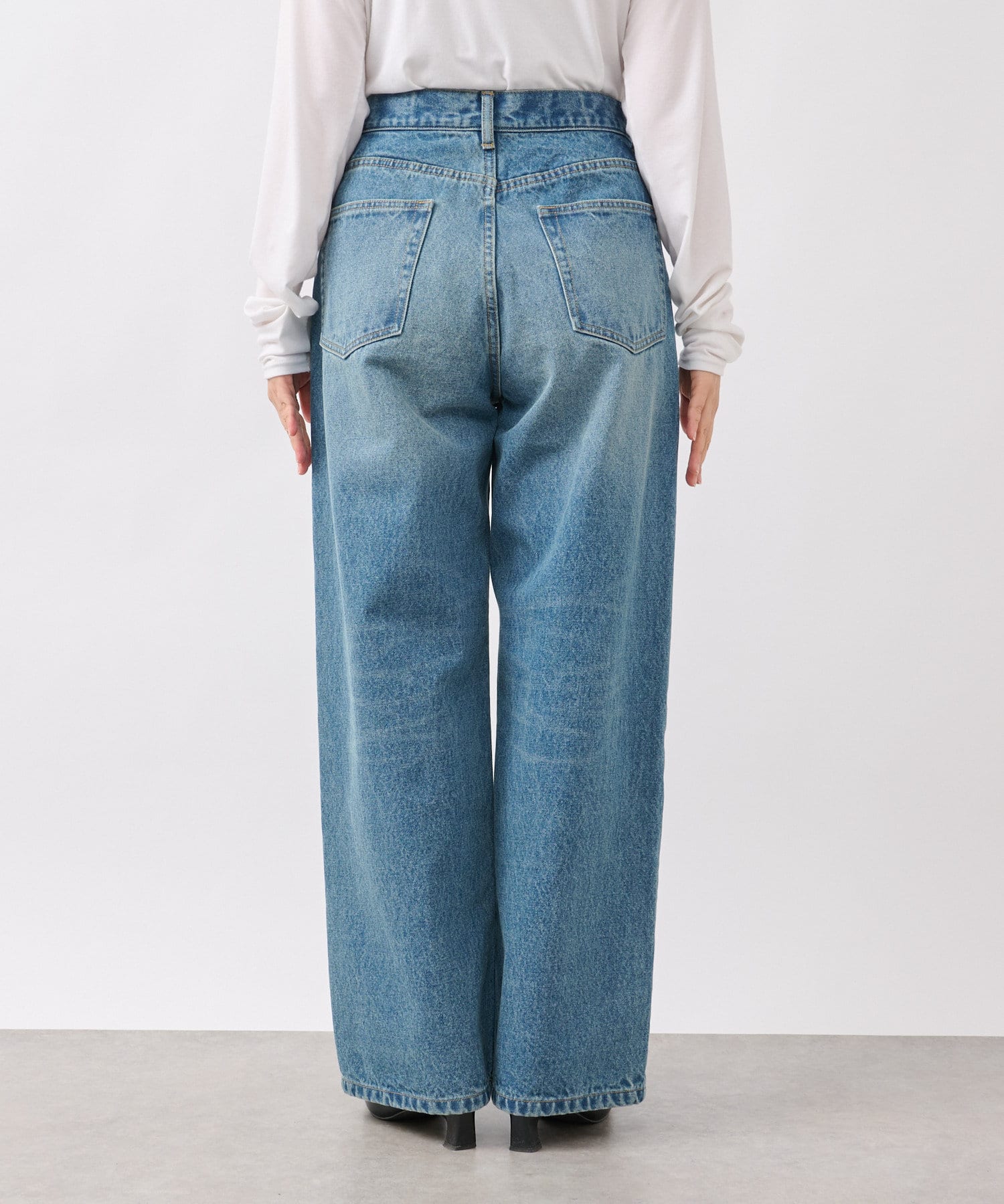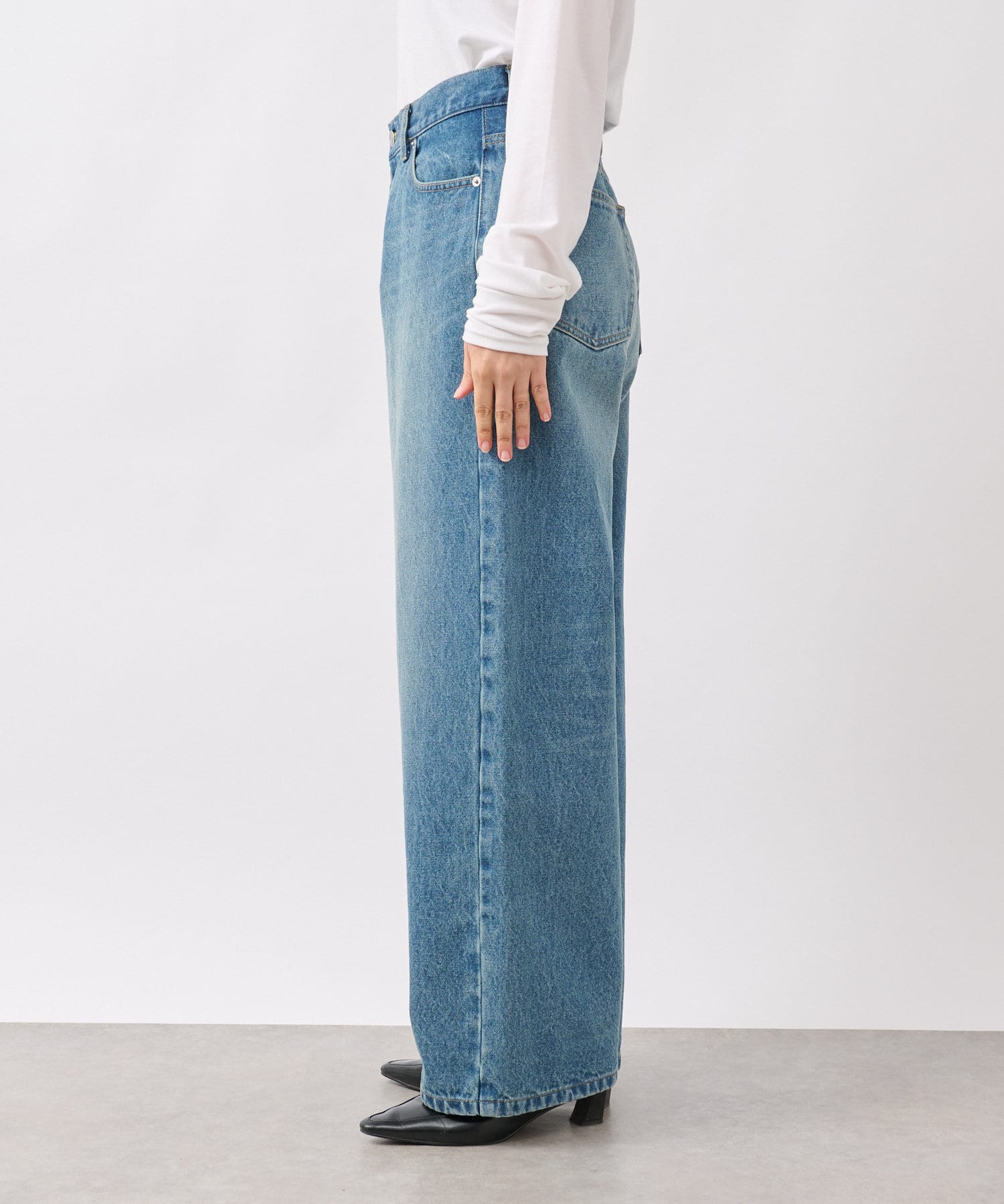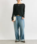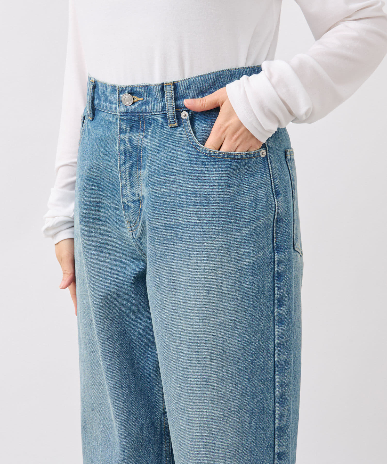 LOOSE DENIMと比較してややウエスト位置を高めにすることで、腰位置も高く見せてくれるデザイン。
