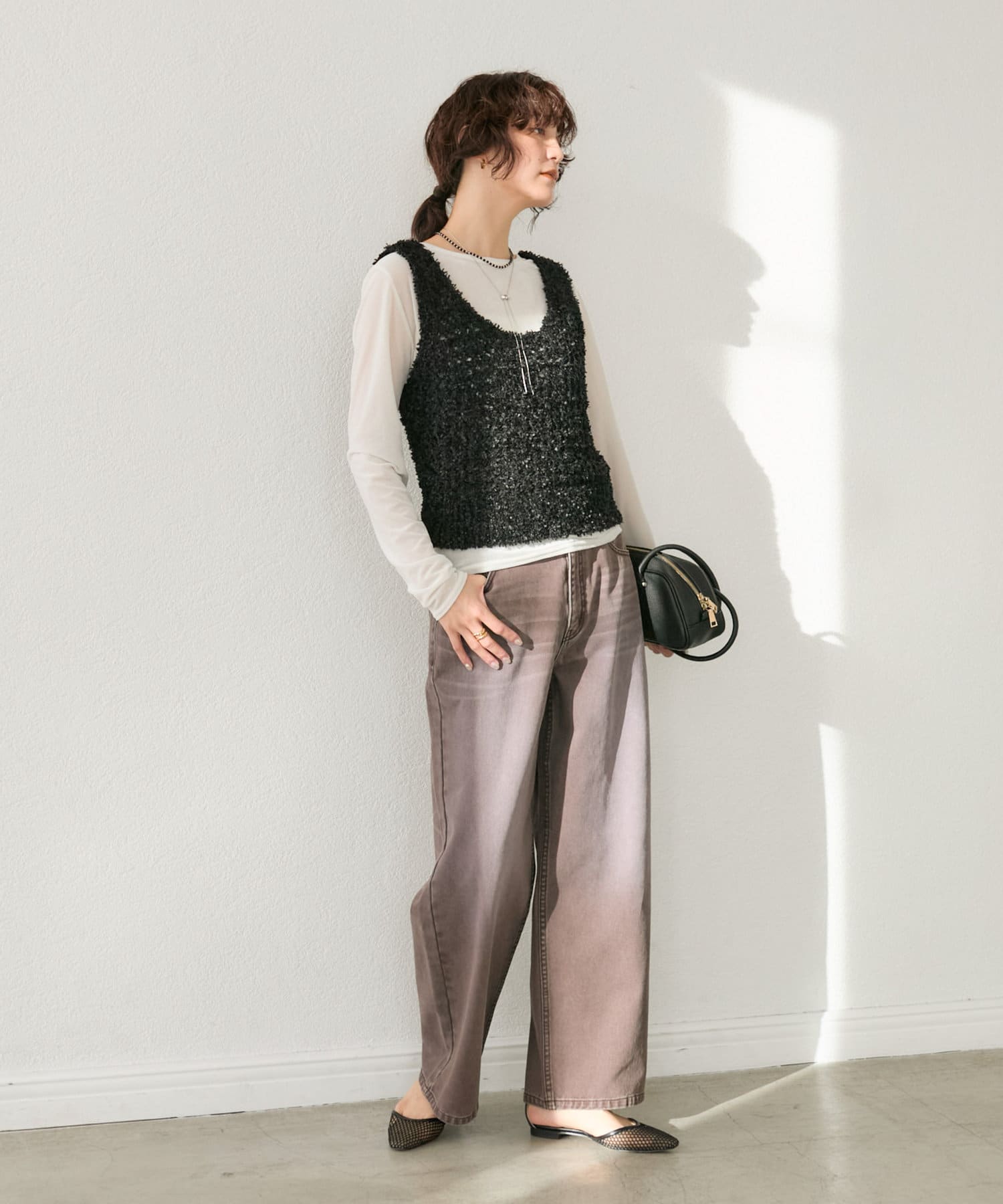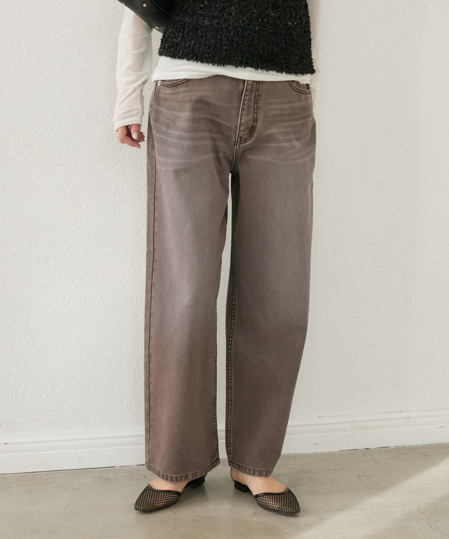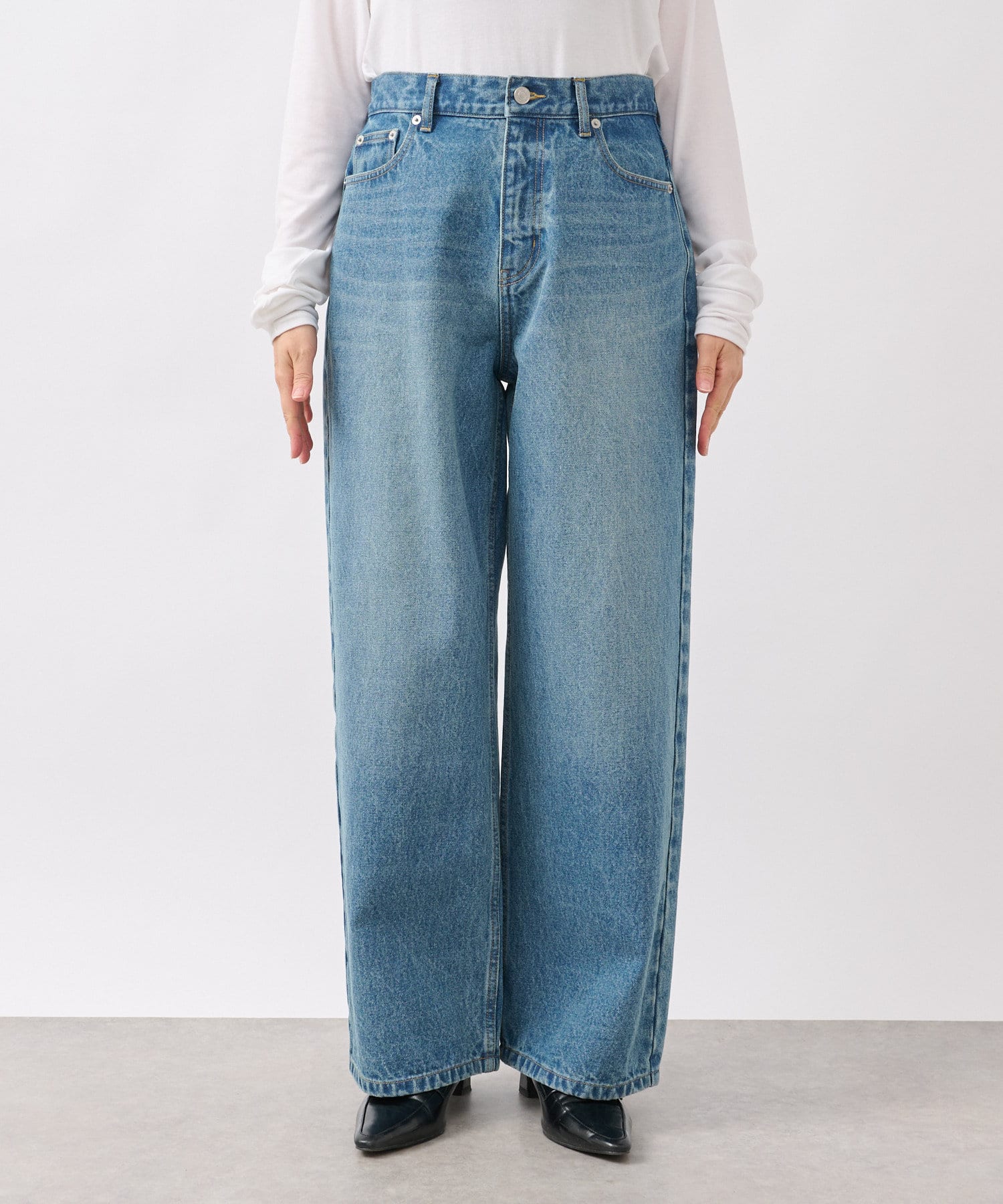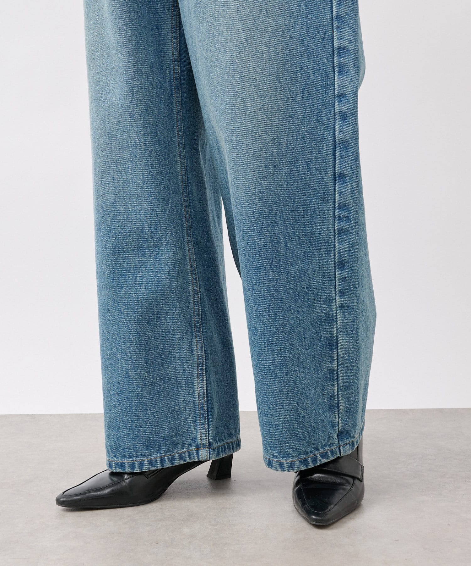 LOOSE DENIMと比較してややウエスト位置を高めにすることで、腰位置も高く見せてくれるデザイン。
