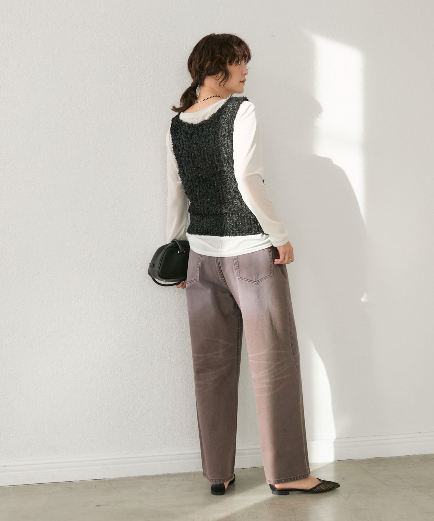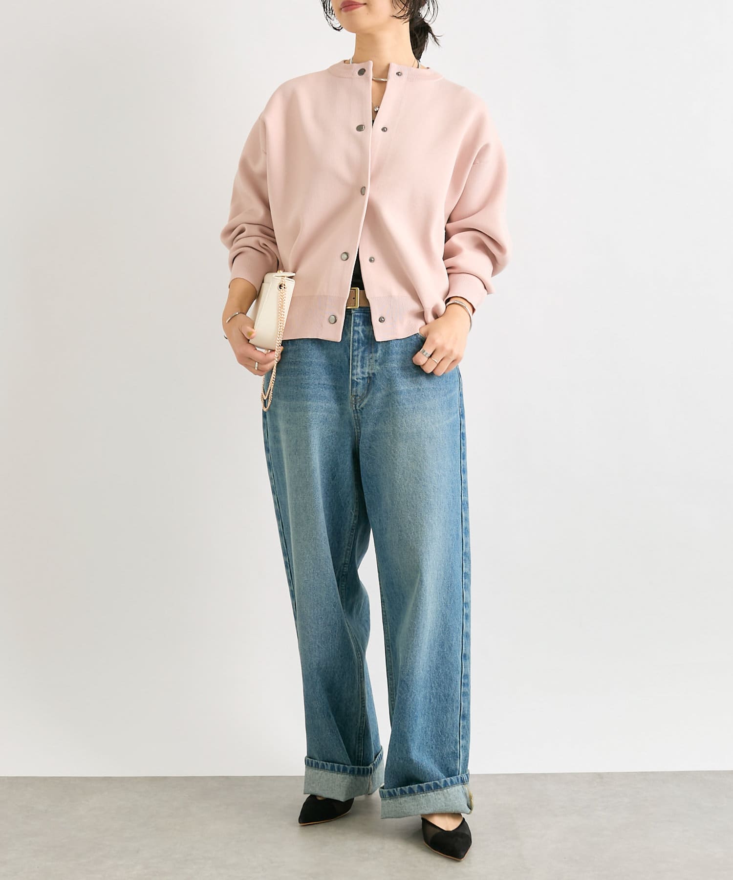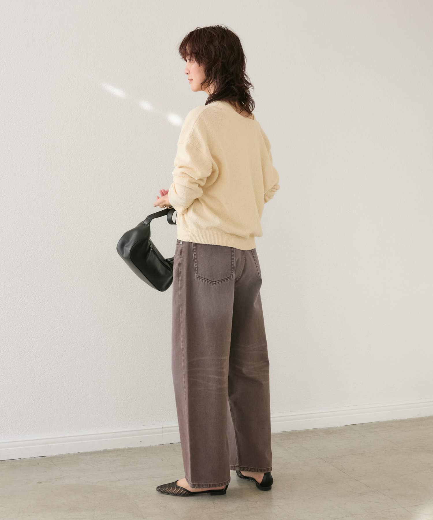 ヒップ、筒周りともに程よいゆとりは持たせながらも、すっきりと履いていただけるサイズ感になっております。