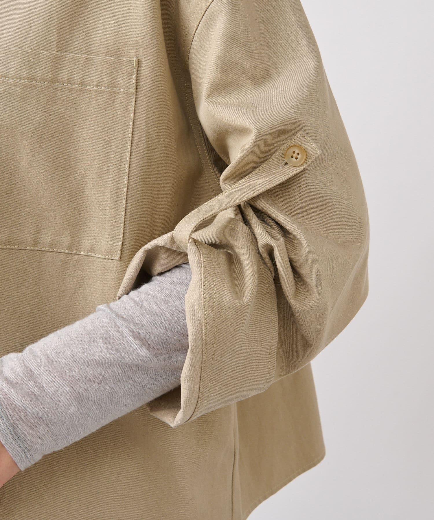 袖にロールアップボタンを付けているので、ボタンを使用してロールアップしていただくのもおすすめです。