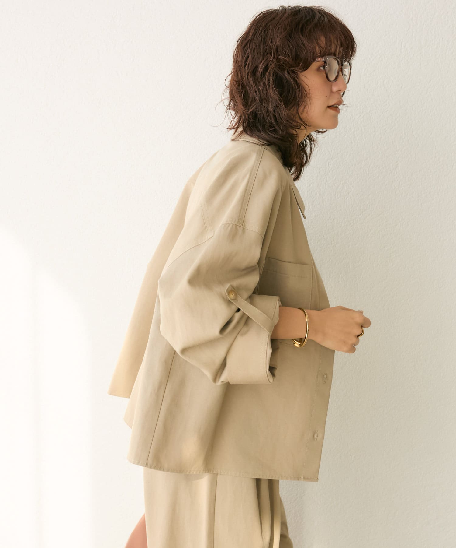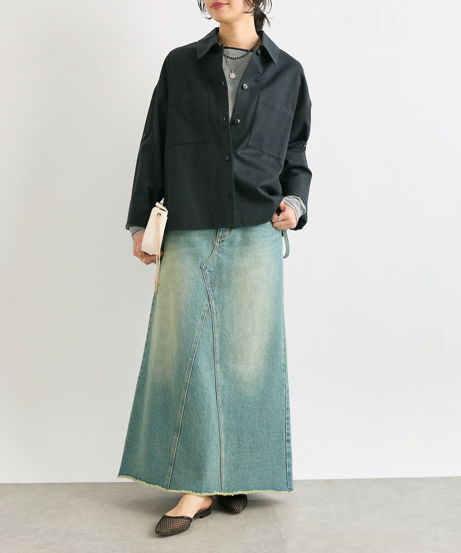 ボタンを留めて着たり、ボタンを開けて着たり、腰に巻いたりと様々なアレンジを楽しんでいただけるアイテムです。