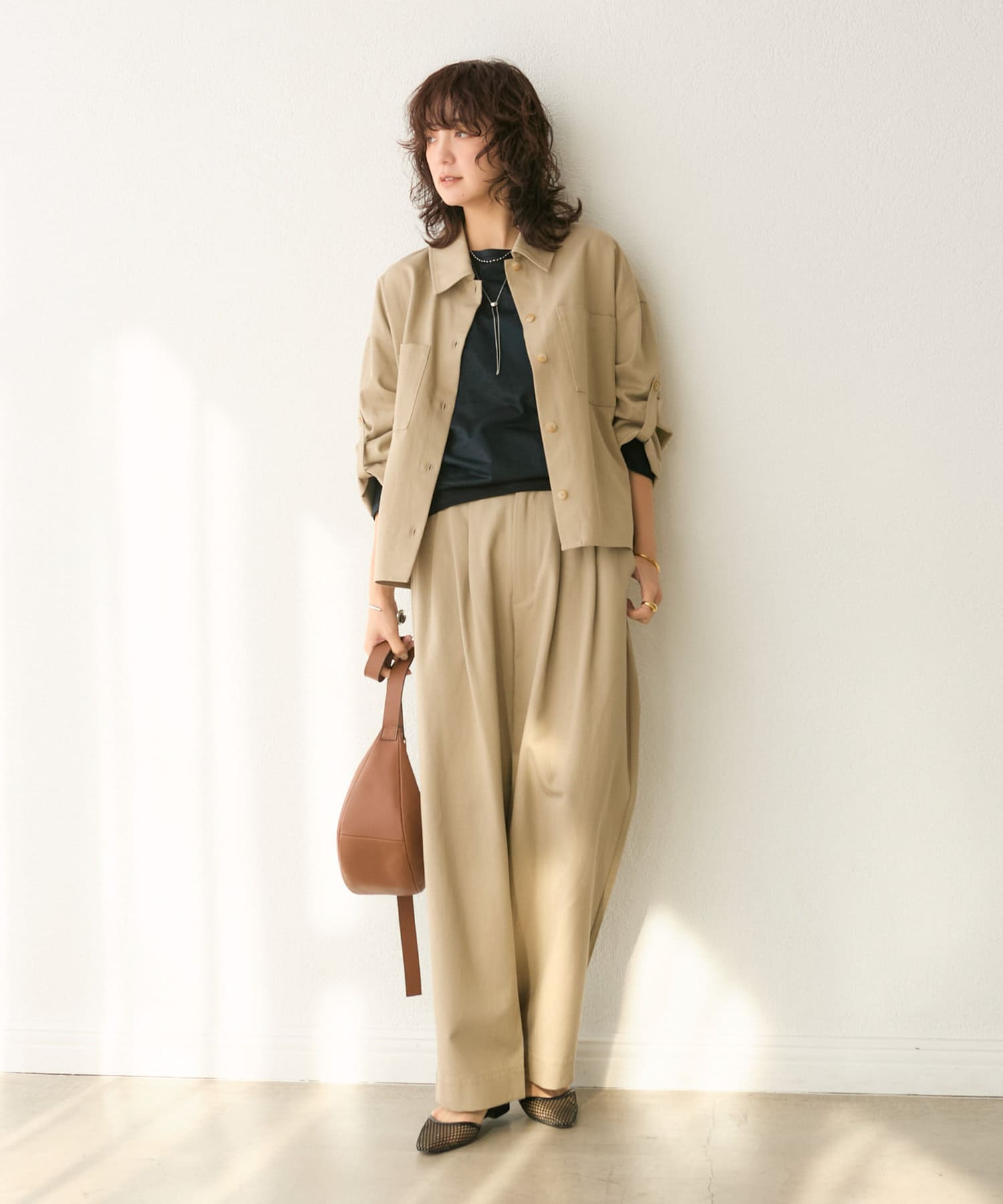 同素材のチノワイドパンツ(RDZ5051102A0001)とセットアップで着用できるシャツ。
