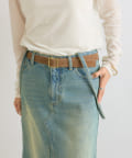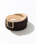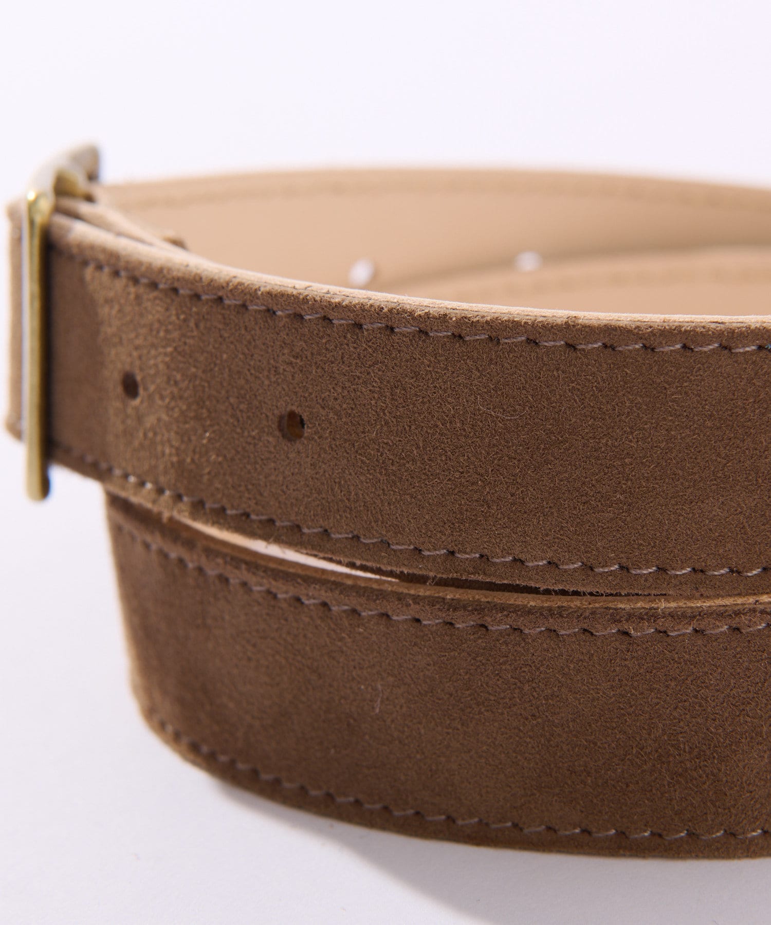 スエードのニュアンスのあるカラーがさりげないアクセントになるベルト。