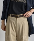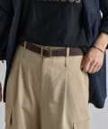 太巾でウエストにアクセントを出すことができ、スクエアデザインのバックルでカジュアルスタイルをシャープに引き締めてくれます。