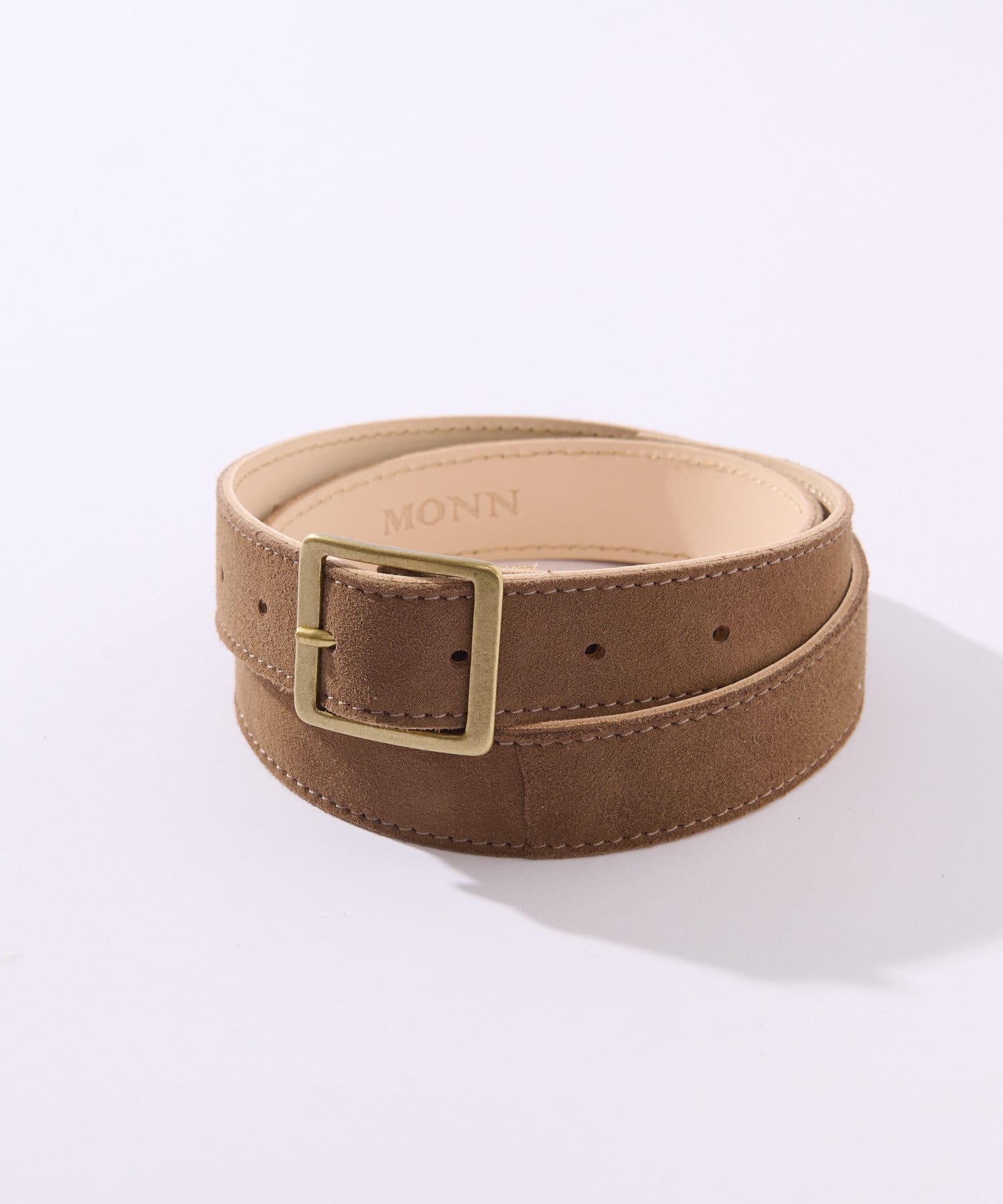 【新色追加】【MONN.:. (モン)】スクエアバックルスエードベルト